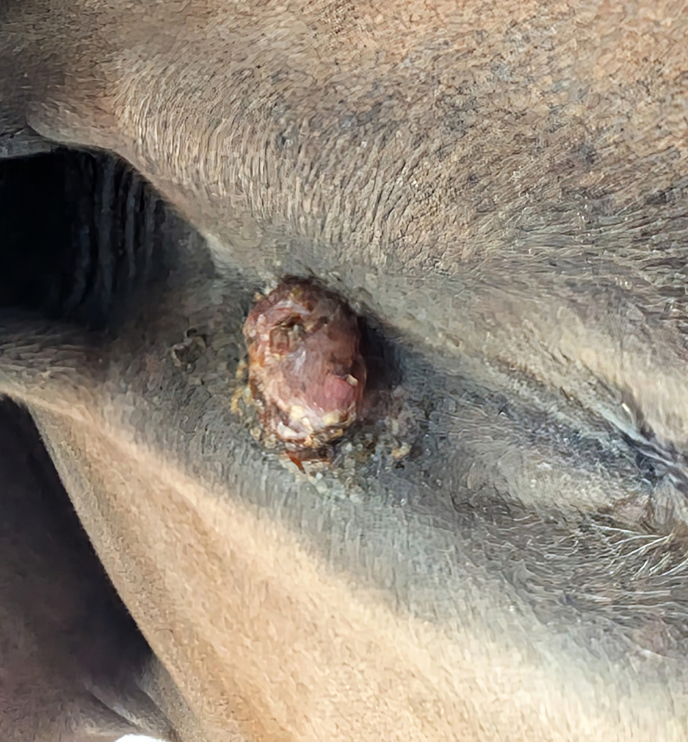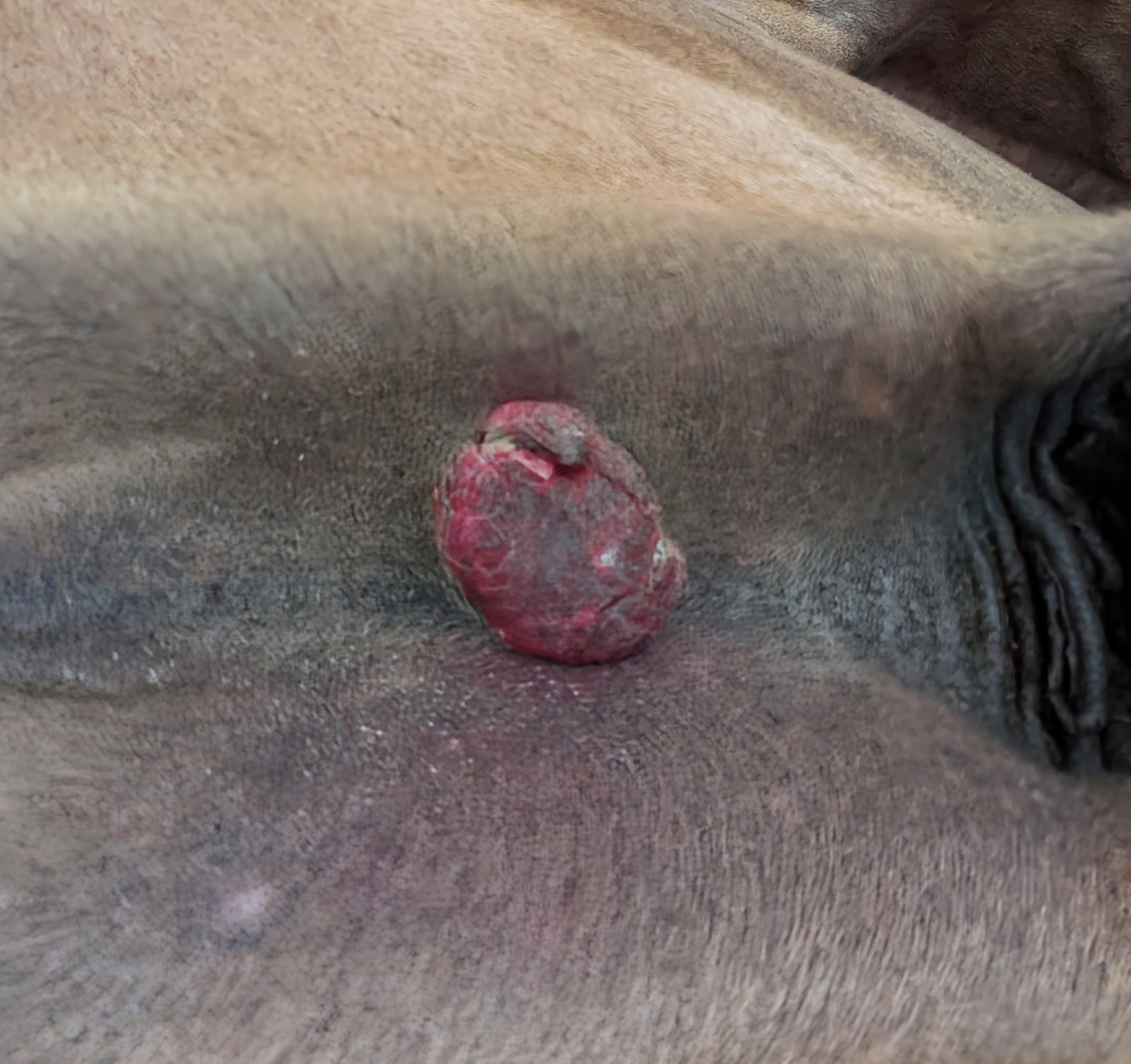 4-jähriger Fuchs-Wallach mit Sarkoid am Bauch-Stelfonta