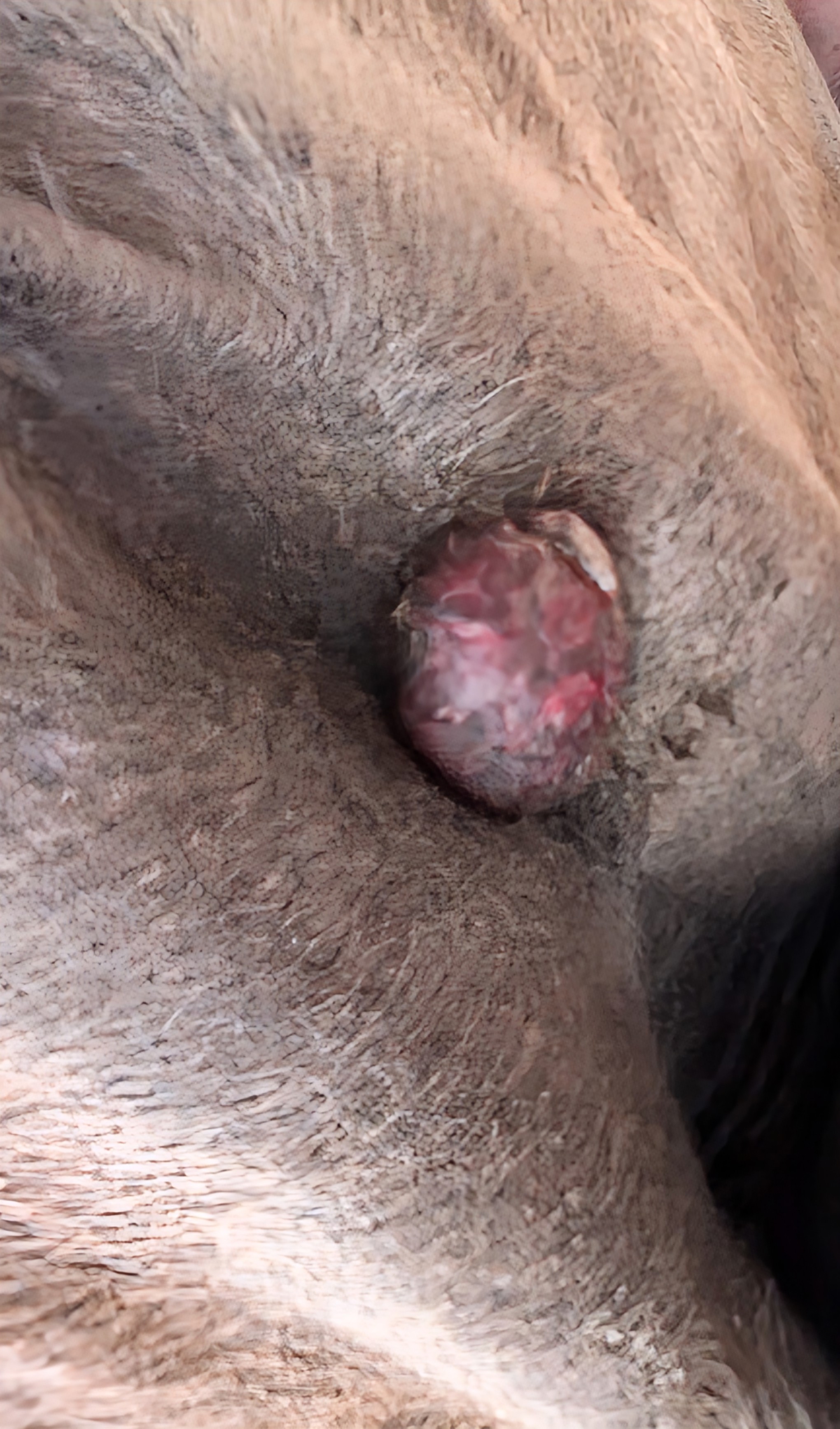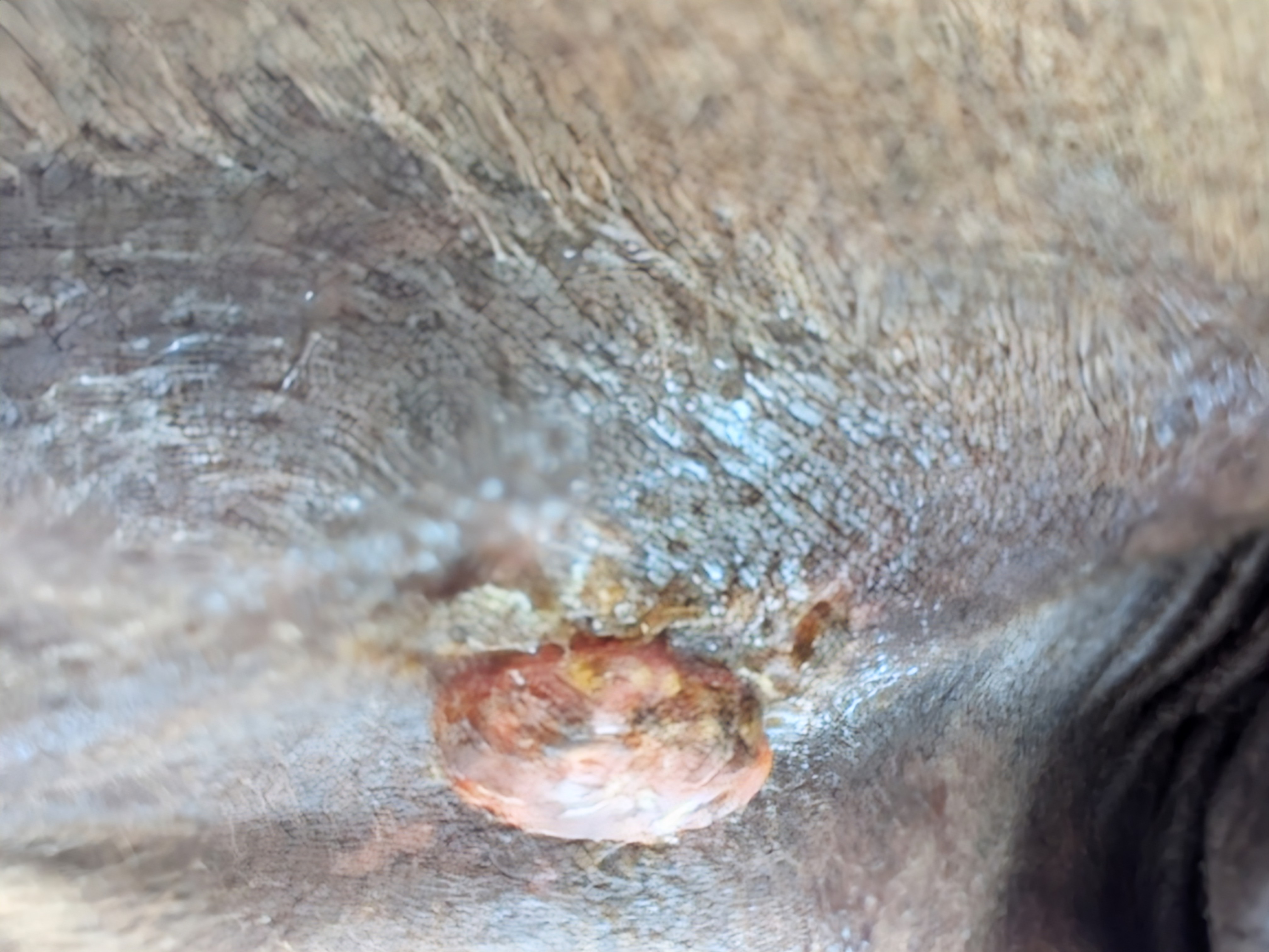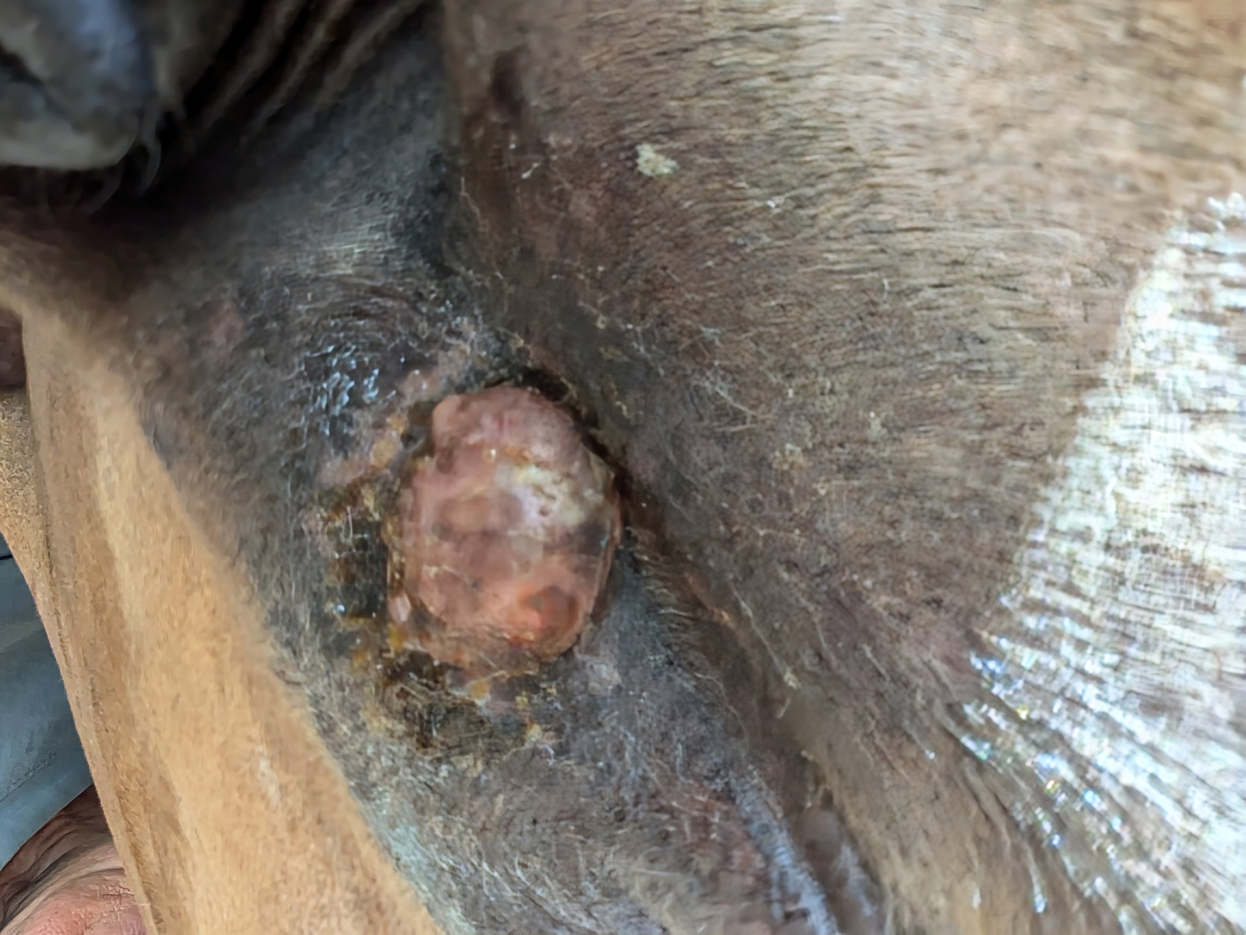 Hallo, es scheint sich was zu tun. Das Sarkoid ist flacher und etwas schält sich ab (sieht aber nicht so dick krustig aus).