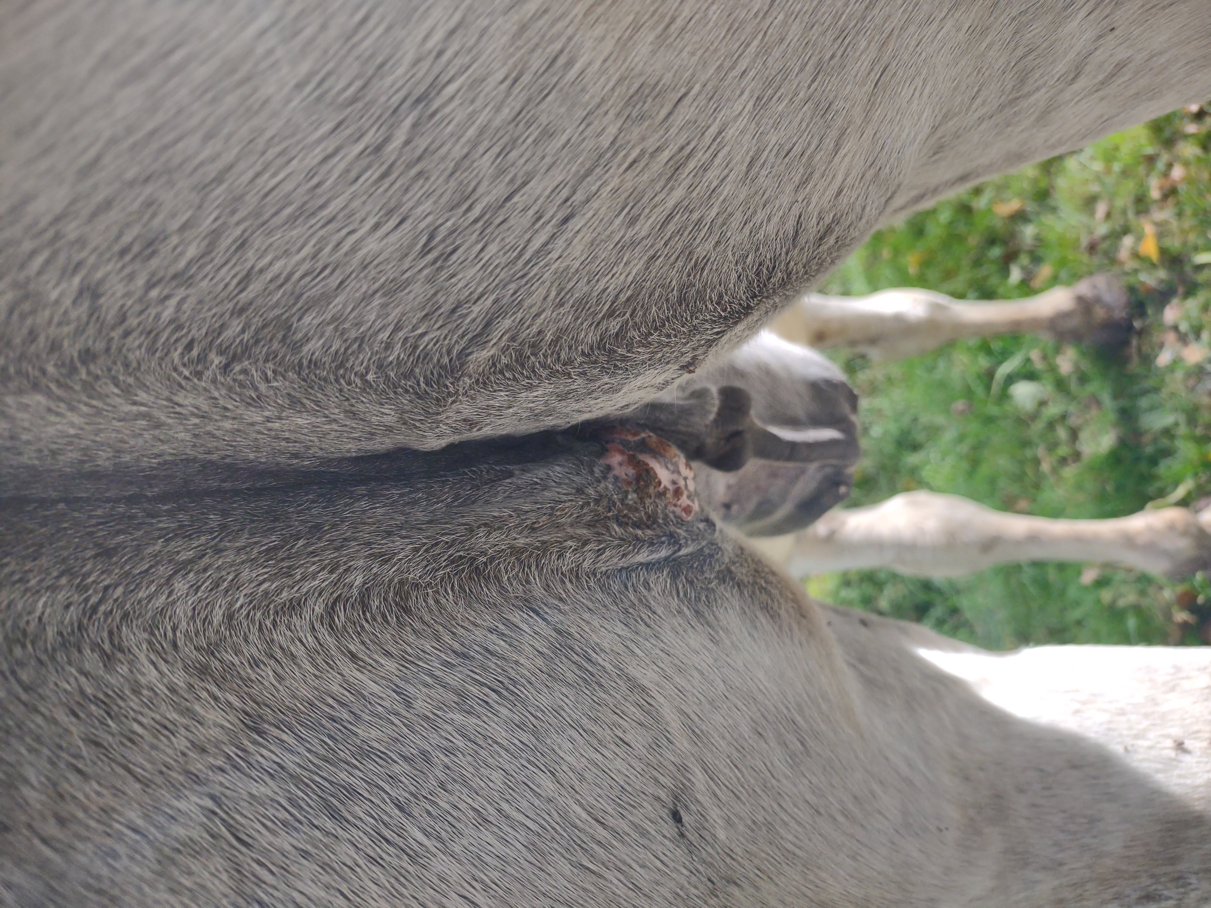 Die neuen Knubbel an der Schlauchtasche sind meines Erachtens hingeschmiert von Dir. Die Haut ist da recht empfindlich und Du schriebst, dass Du 1:1 jetzt auch bislang die Fellränder schmierst. Würde ich eher nicht machen. Die Salbe frisst sich schon dahin vor wo sie hin soll. Nicht drüber raus schmieren.
