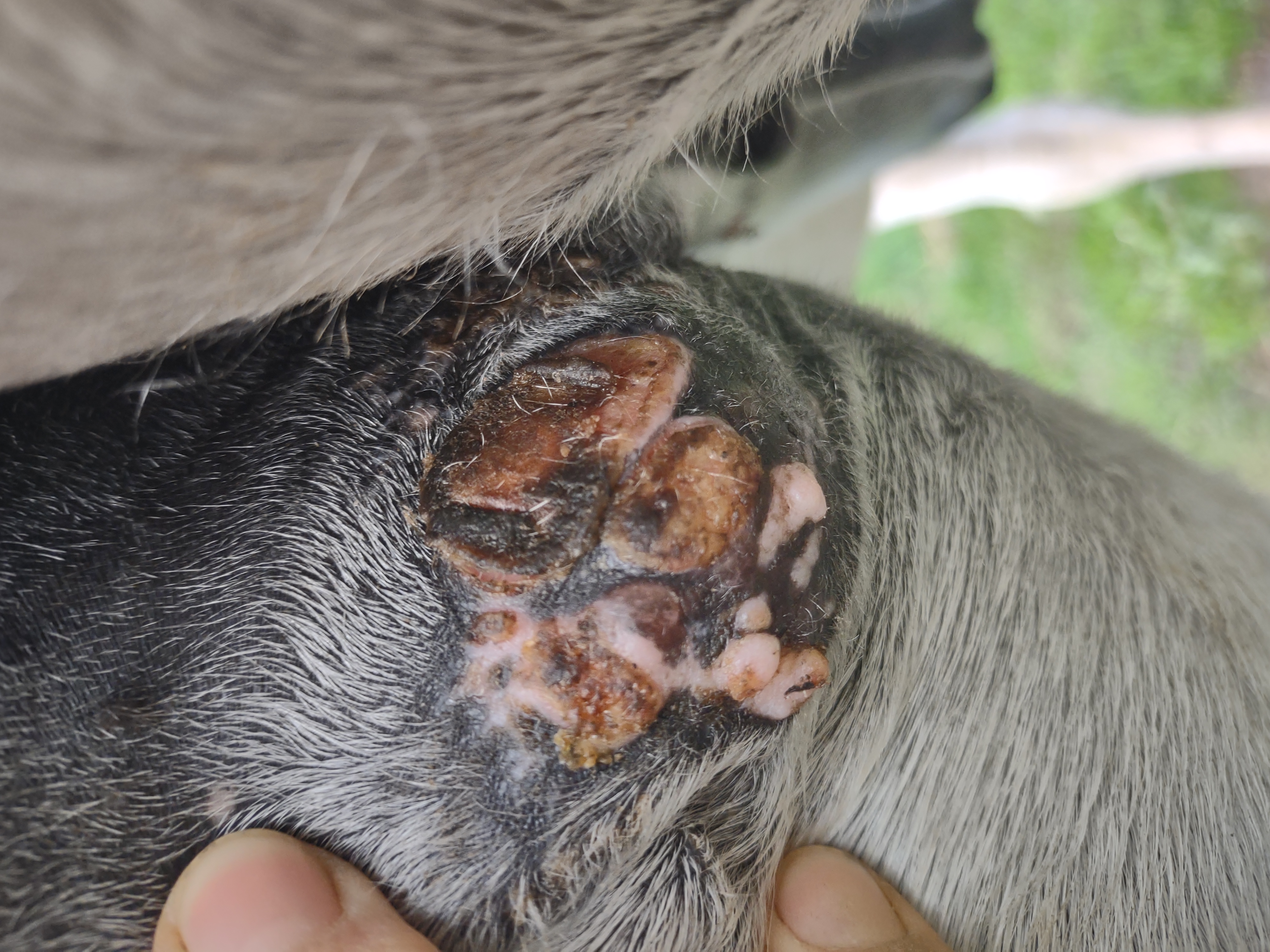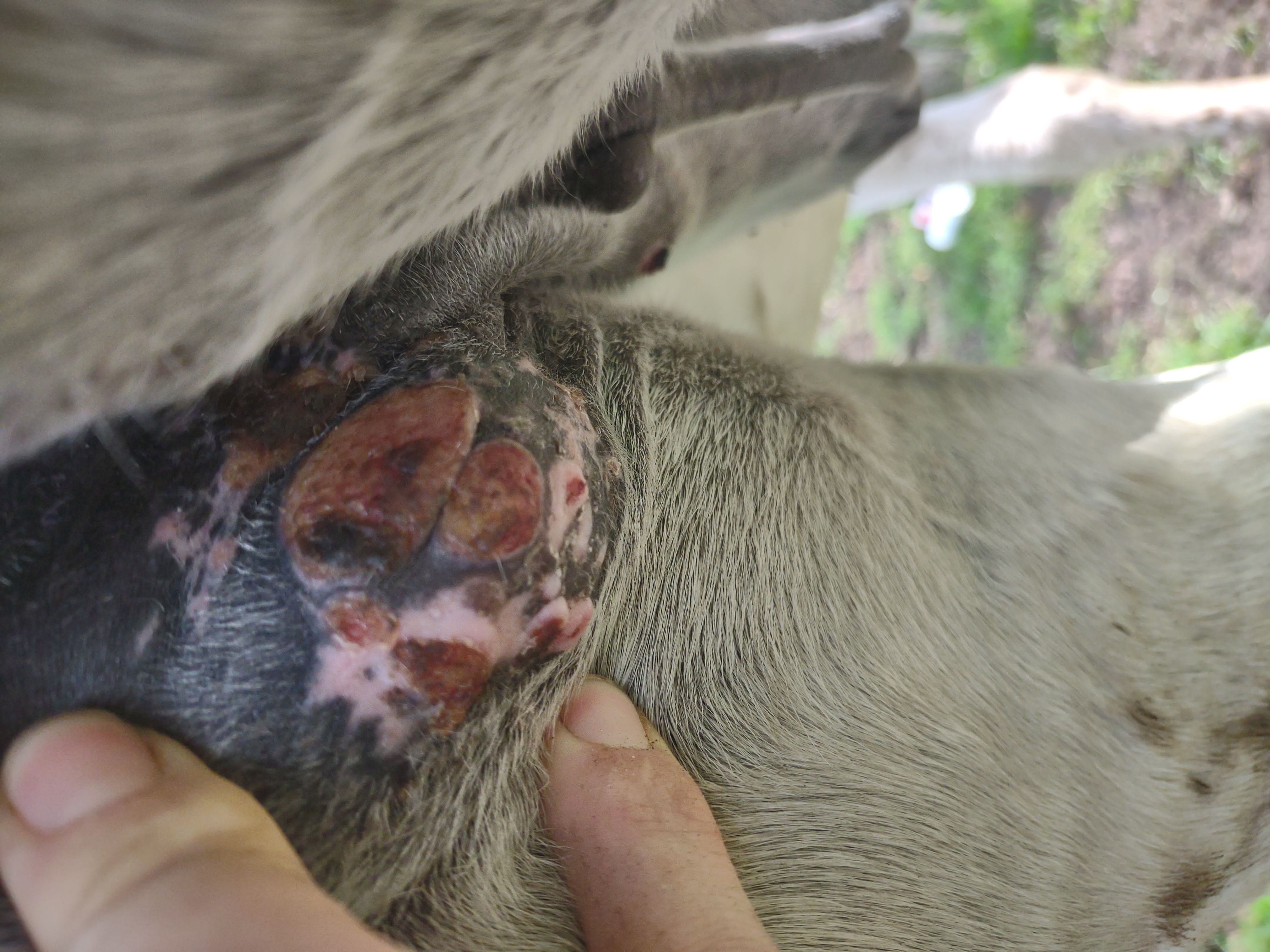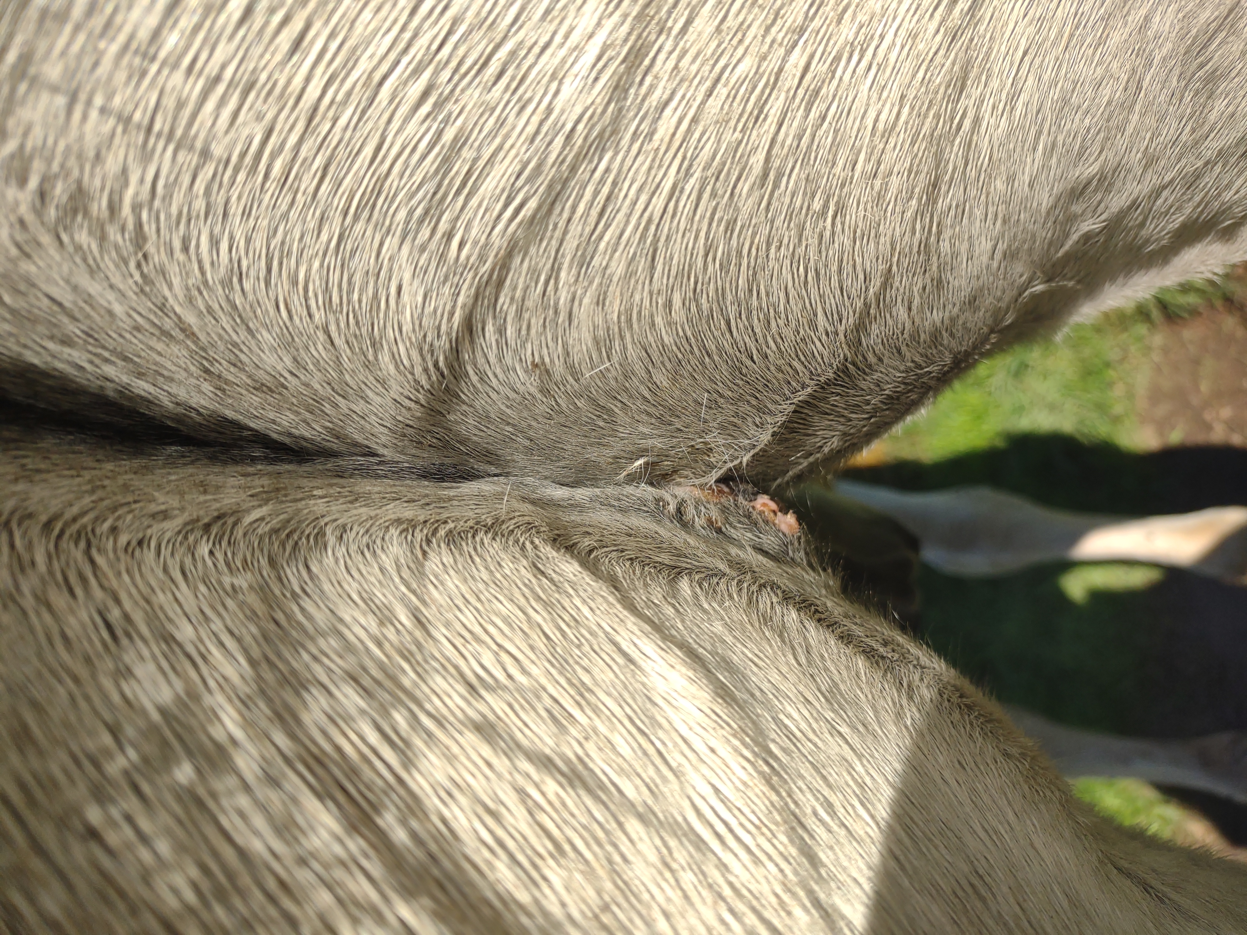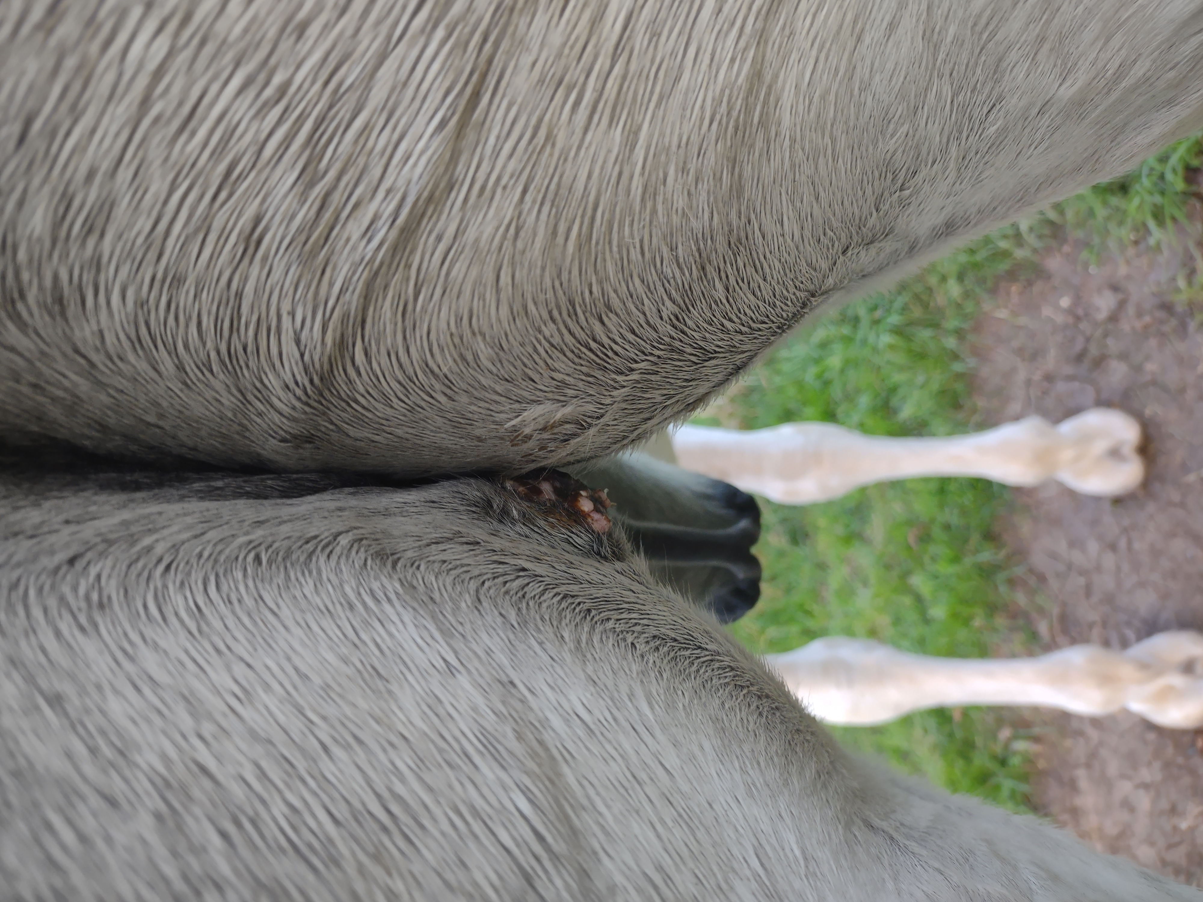 Am 28.10. war ein schöner rosa Rand mit sehr dunkler flacher Kruste innen. Wie aus dem Lehrbuch. Testweise nochmal mit 1:1 nur in der Mitte drauf. Danach kam wieder dickere Kruste, daher dann mit 1:3 weitergemacht. Bilder Oberschenkel
