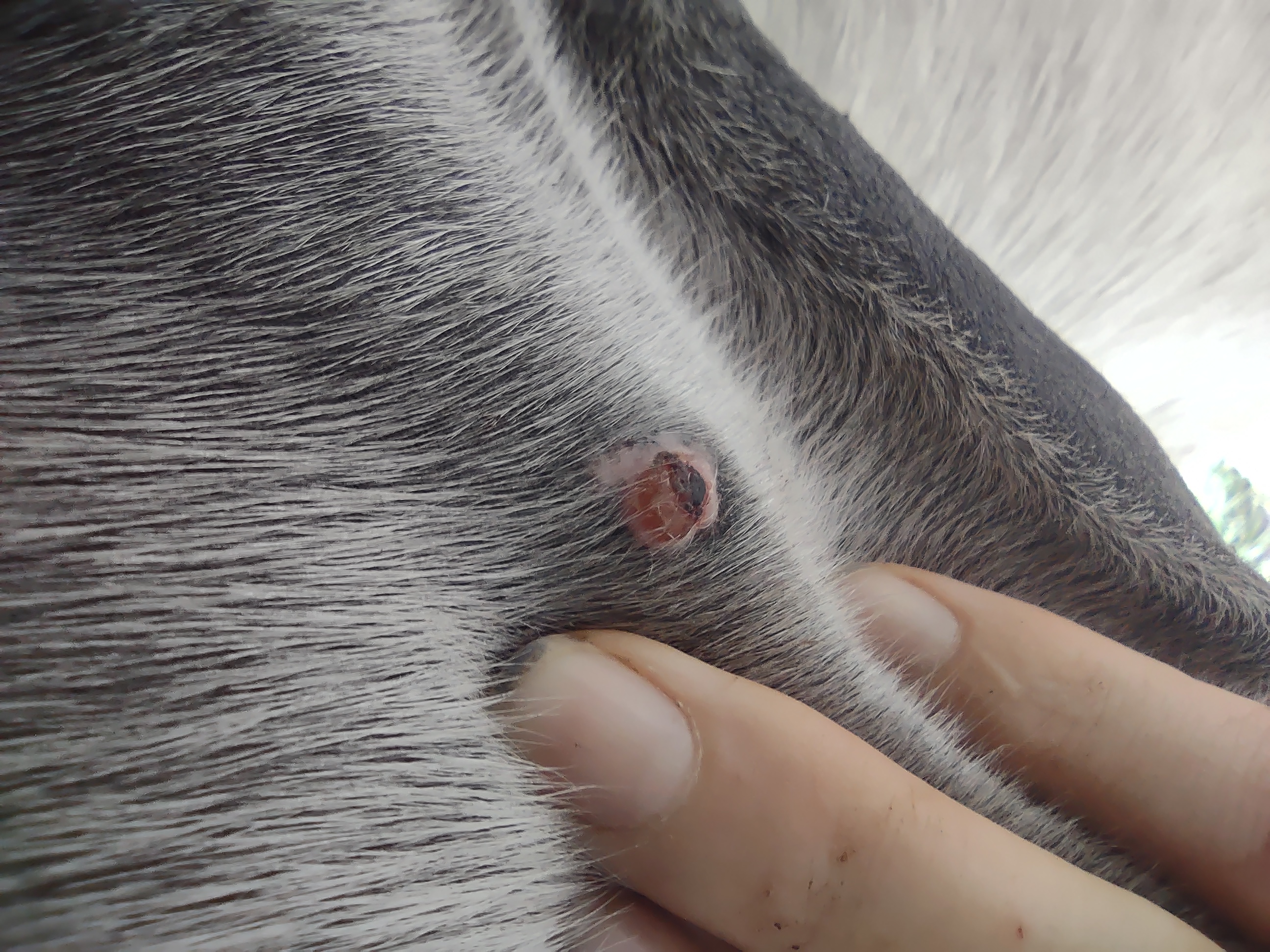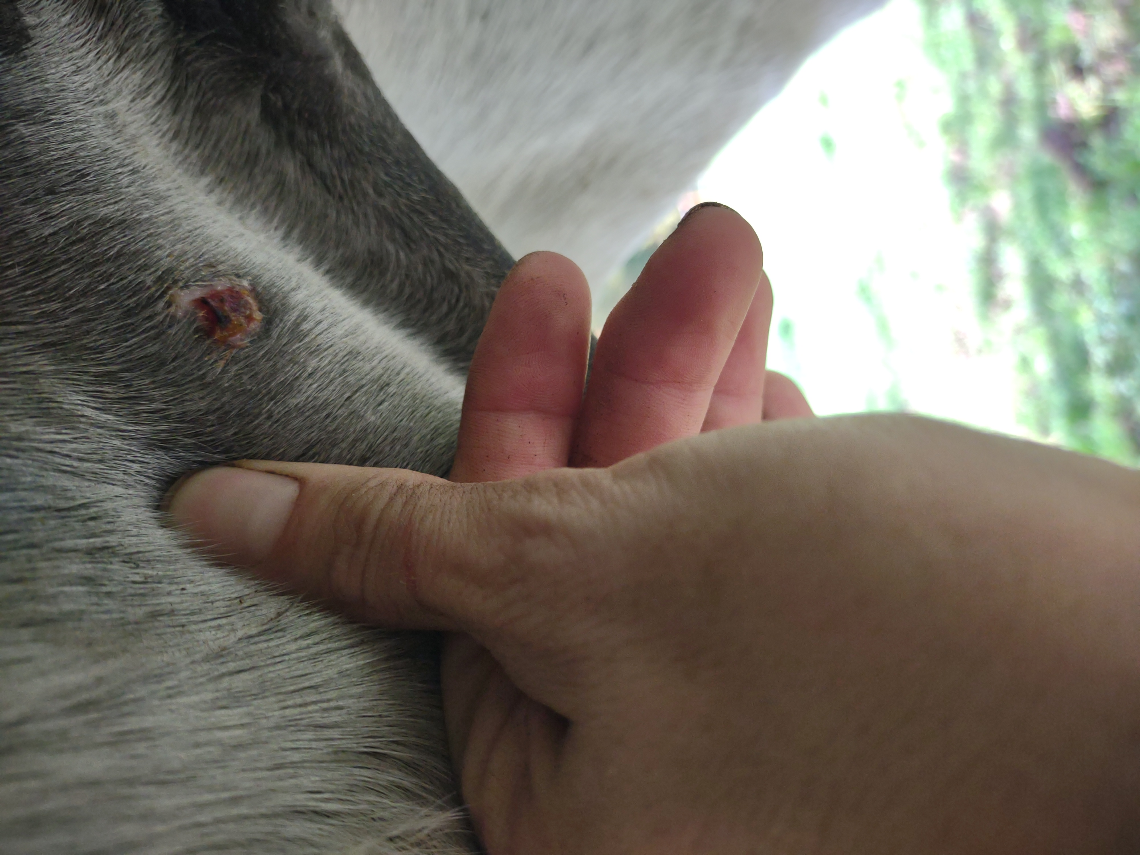 Sieht etwas dunkler aus. Große Kruste oben Liste sich schon leicht.