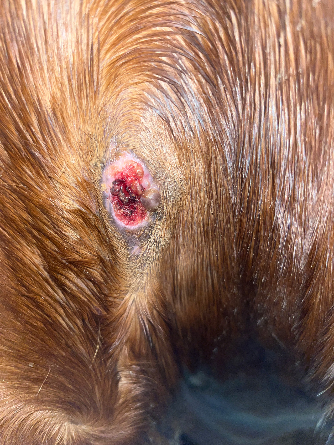 Damit ich den Sarkoid-Rand besser erkennen kann, hab ich so gut es ging die Haare drum rum abrasiert.