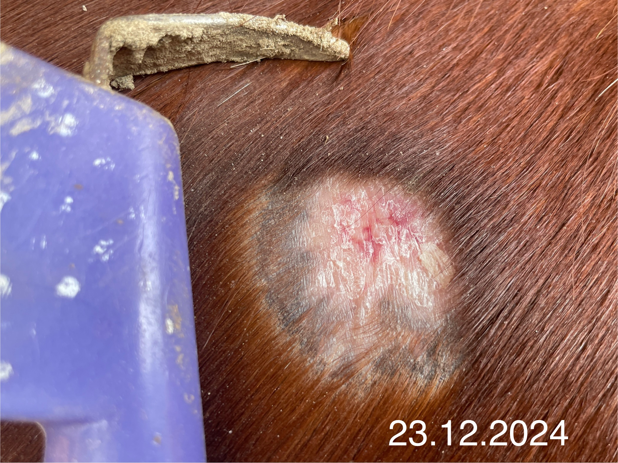 Hier mal wieder ein Update von uns - ich schmiere 1x wöchentlich mit 1:4. Der Rand heilt definitiv weiter zu, es wächst sogar schon Fell nach (rundherum, hab bewusst mal ein zweites Bild gemacht mit dem oberen Rand, der ja normal verdeckt ist). Der Rest heilt auch nach und nach. Bin mir dennoch etwas unsicher, da das Ganze - auch außen beim neuen Fell - noch leicht schuppig ist. Nachdem das ja als okkultes Sarkoid anfing und nie sonderlich auffällig war außer eben dieser leicht schuppigen Haut, gehen bei mir da doch etwas die Augenbrauen nach oben. Wie immer vielen Dank - und einen guten Rutsch, hoffentlich in einer ruhigen Gegend!