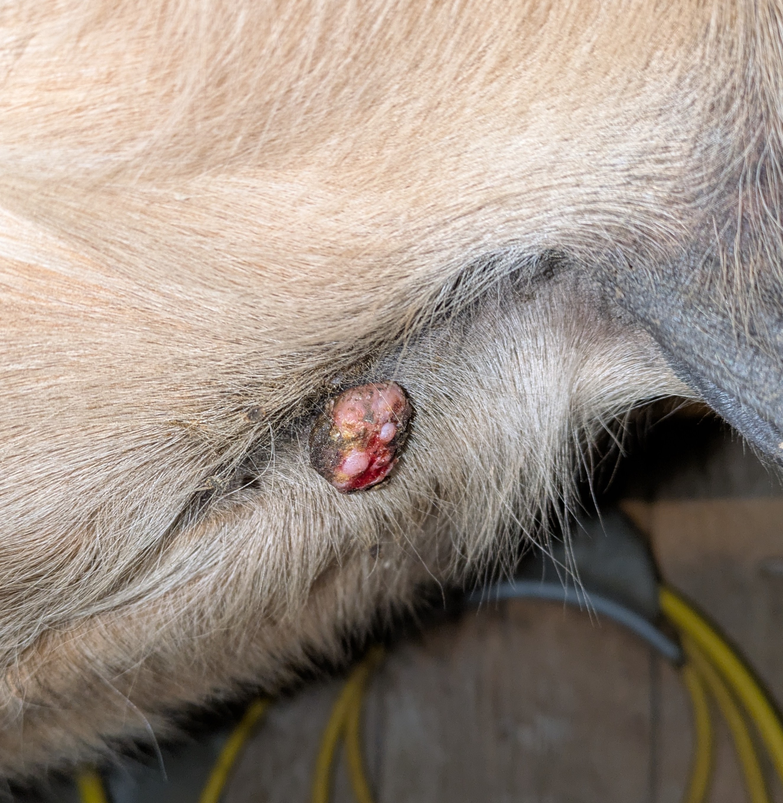4-jähriger Fuchs-Wallach mit Sarkoid am Bauch-Stelfonta