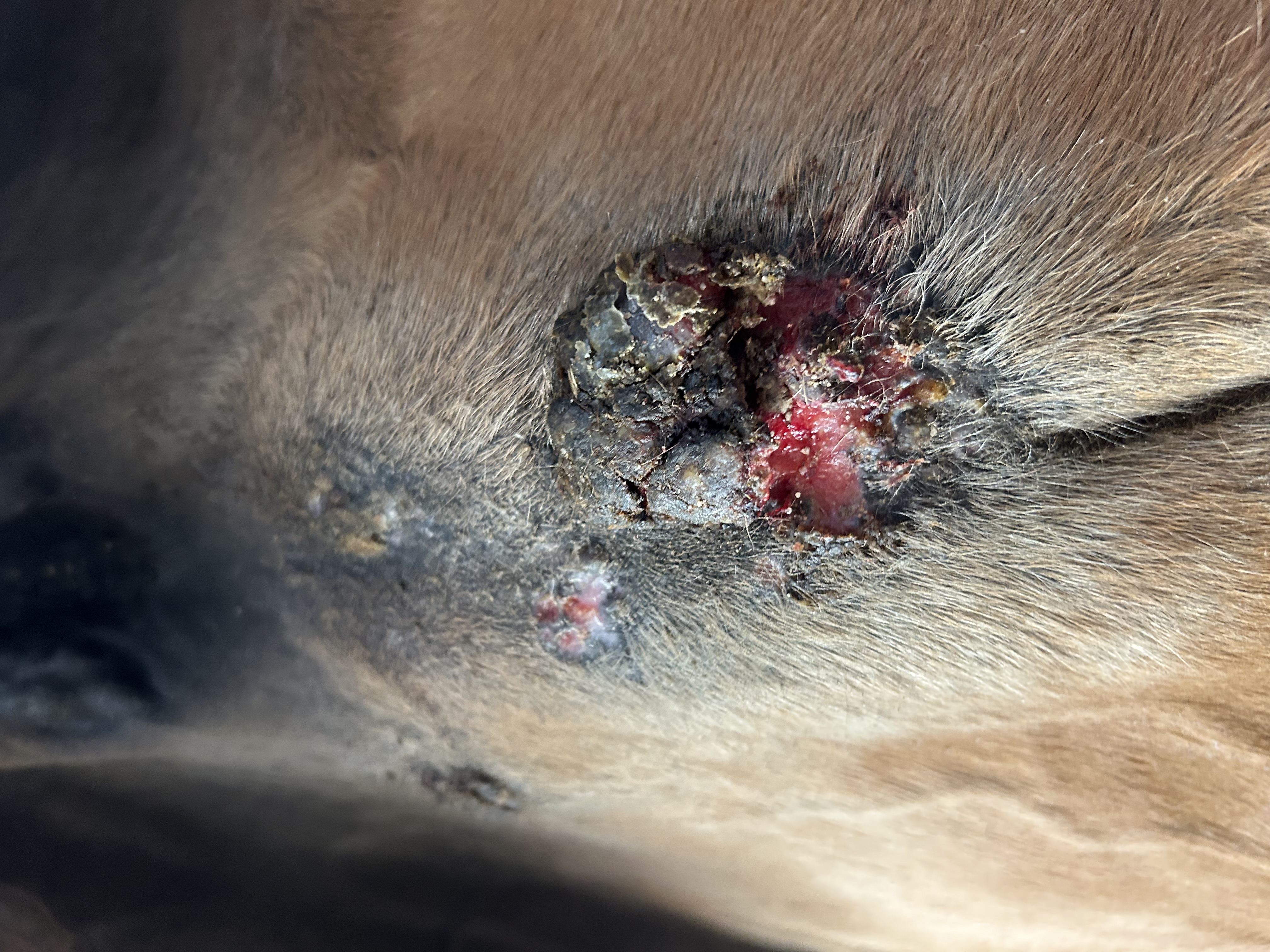 Meine Stute hatte eine vermeintliche Warze die ich versucht hatte zu behandeln (Thuja) und relativ schnell entwickelte sich aus der Warze dieses flächige "Etwas". Dies war im vergangenen Jahr ruhig doch nun bildete sich diese größere Warze daneben und schnell wurde mir klar, hier ist handlungsbedarf.