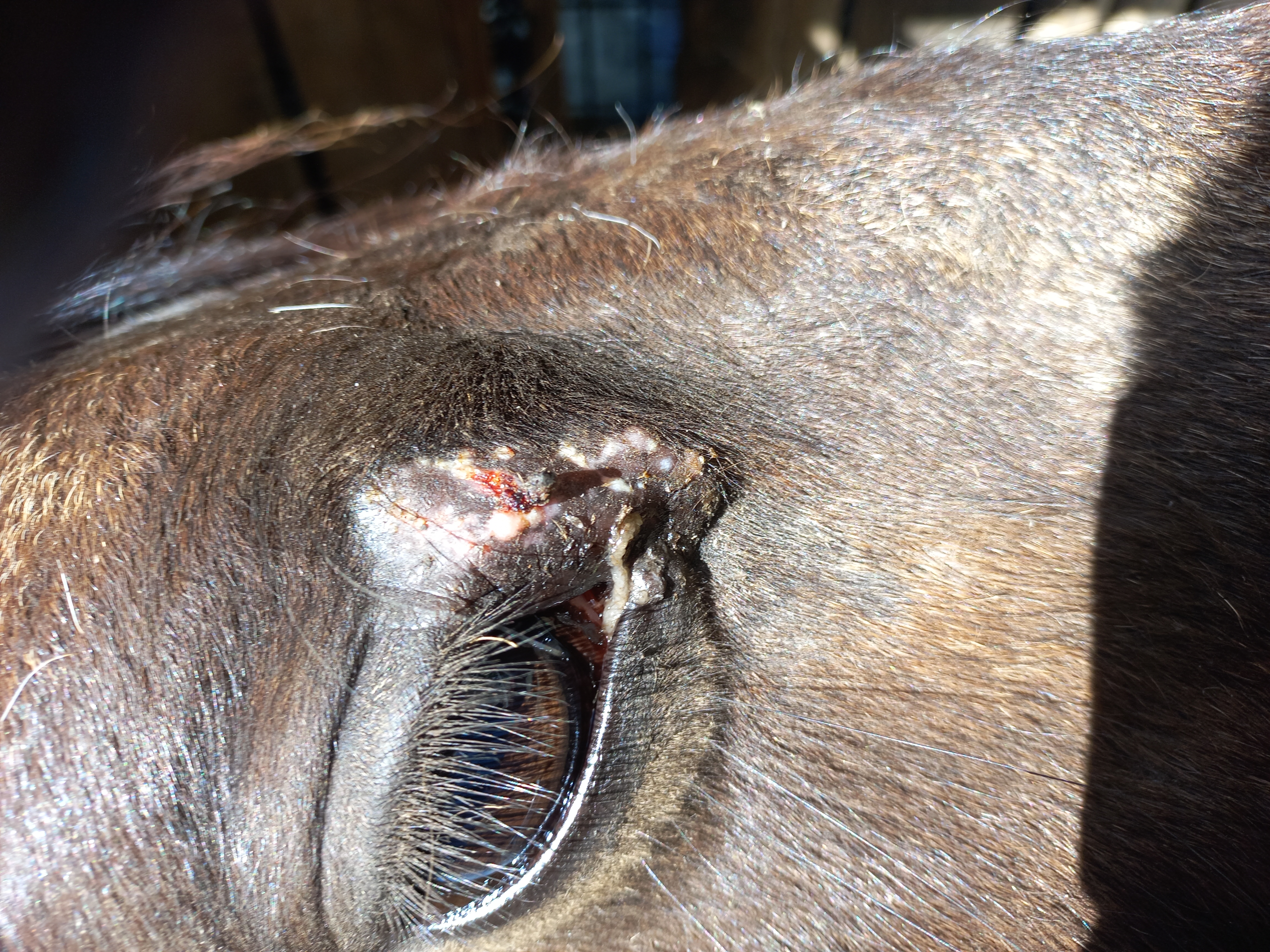 Mein Pferd hat ebenfalls ein nodulares Sarkoid am Oberlid und ich bin mir nicht sicher ebenfalls ein Knubbel untehalb vom Auge oder gehört das zum Auge?