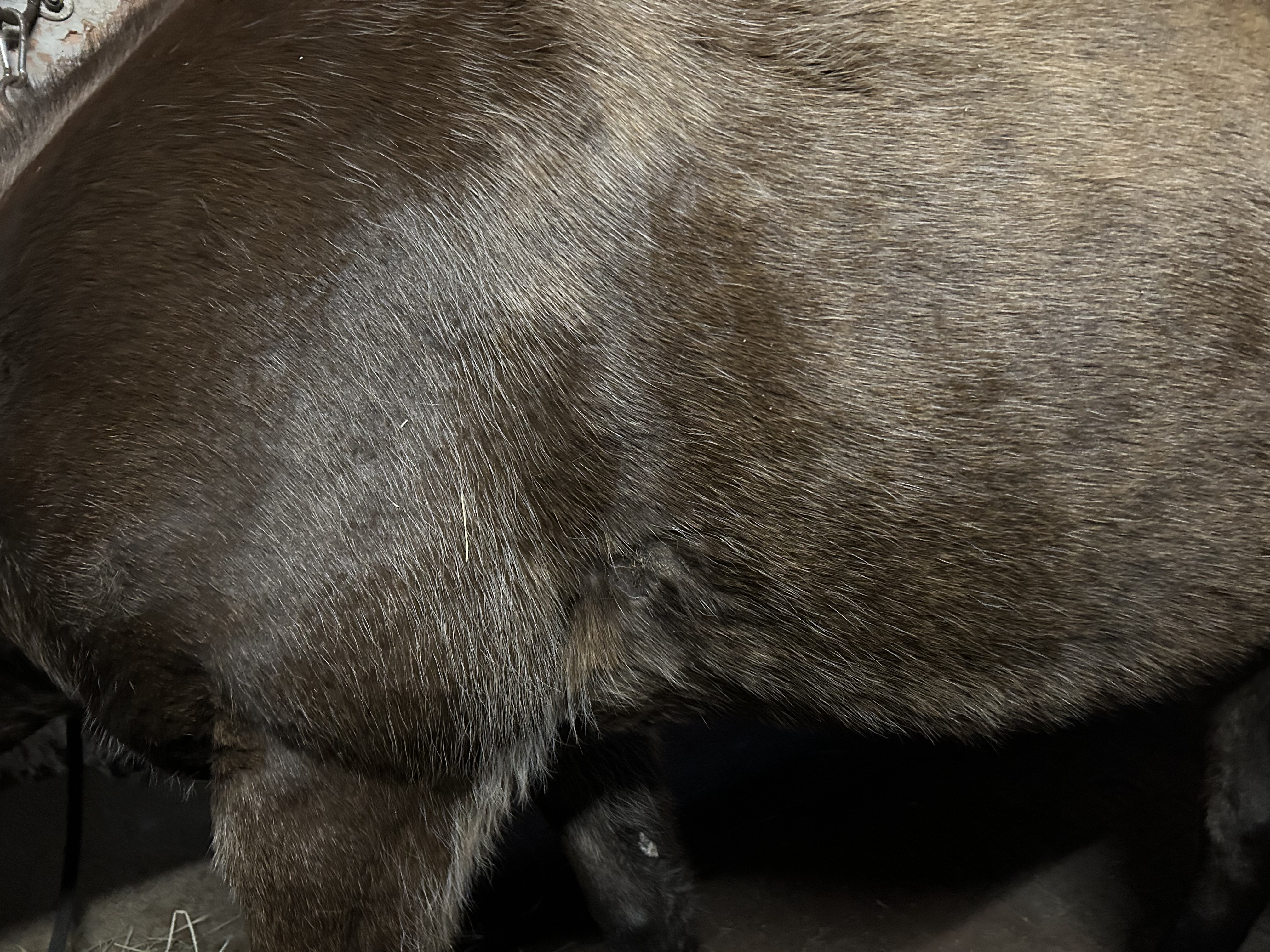 Die Haut ist jedoch bei regelmäßigen Reiten vor allem zur Fellwechselzeit sehr gereizt, rissig und trocken. Das Fell geht grossflächig aus und im letzen Jahr war es stellenweise offen. Ich hatte mit verschiedenen Equi Hautlotions gecremt, die es durch die vielen Insekten im Sommer schlimmer machten. Laut Anraten der Tierärztin habe ich mit Silberspray die Wunde vor Insekten geschützt.