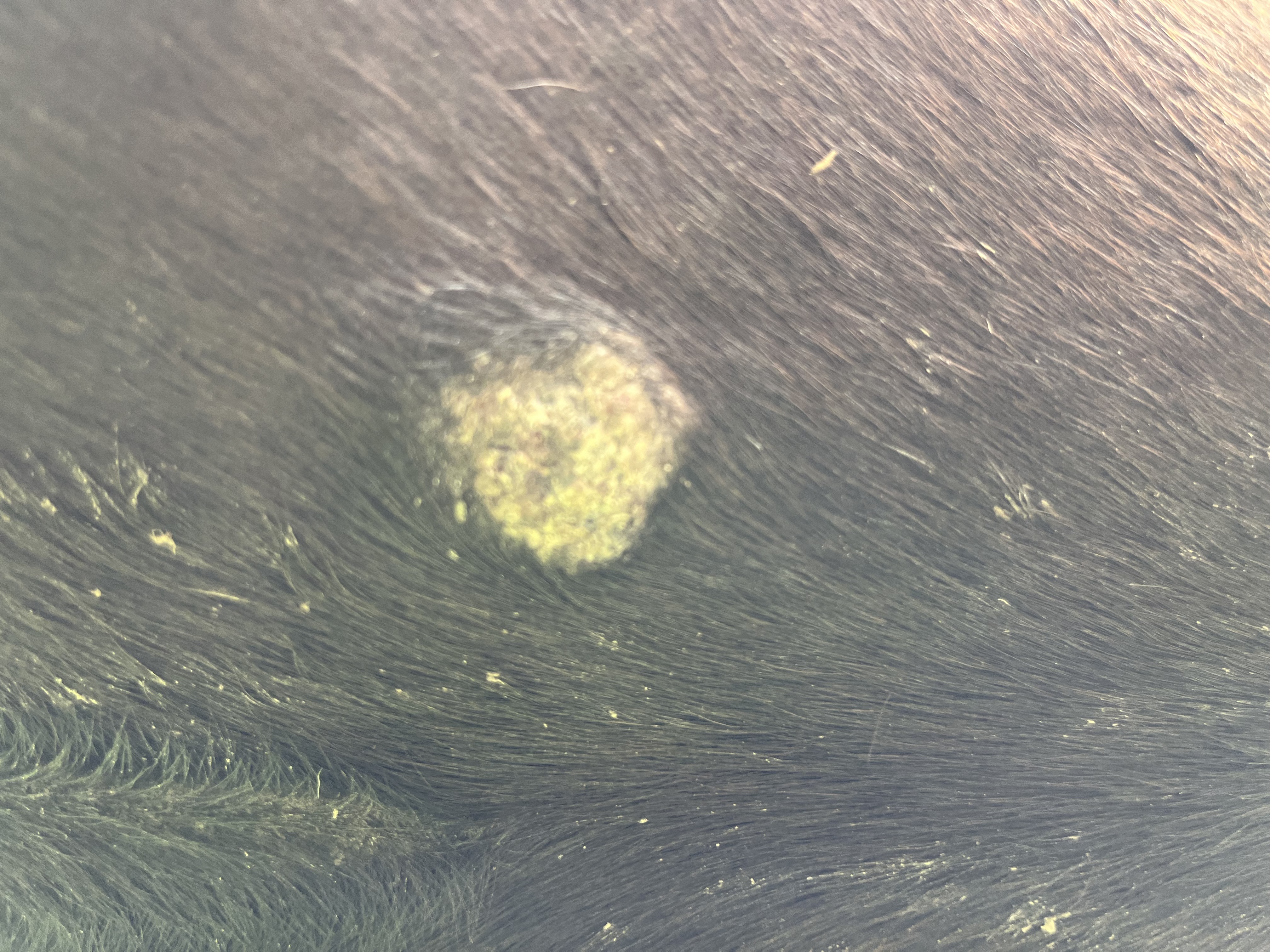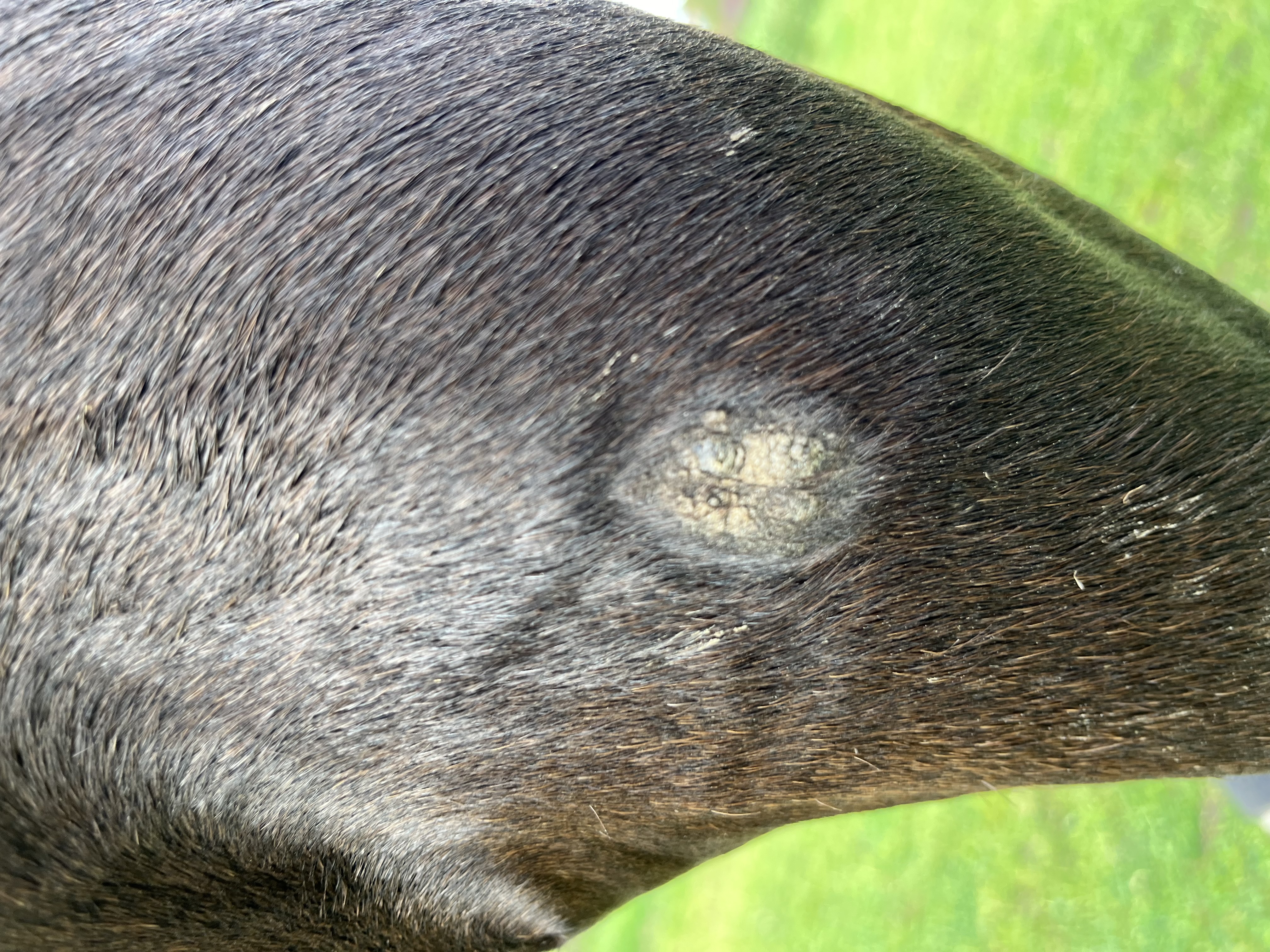 meine 6 jähr Stute hat unter dem Bauch, kurz hinter der Gurtlage ein Sarkoid welche schon einige Jahre dort sitzt, sich aber erst kaum verändert hat. (Ich dachte es würde sich um eine Warze handeln)