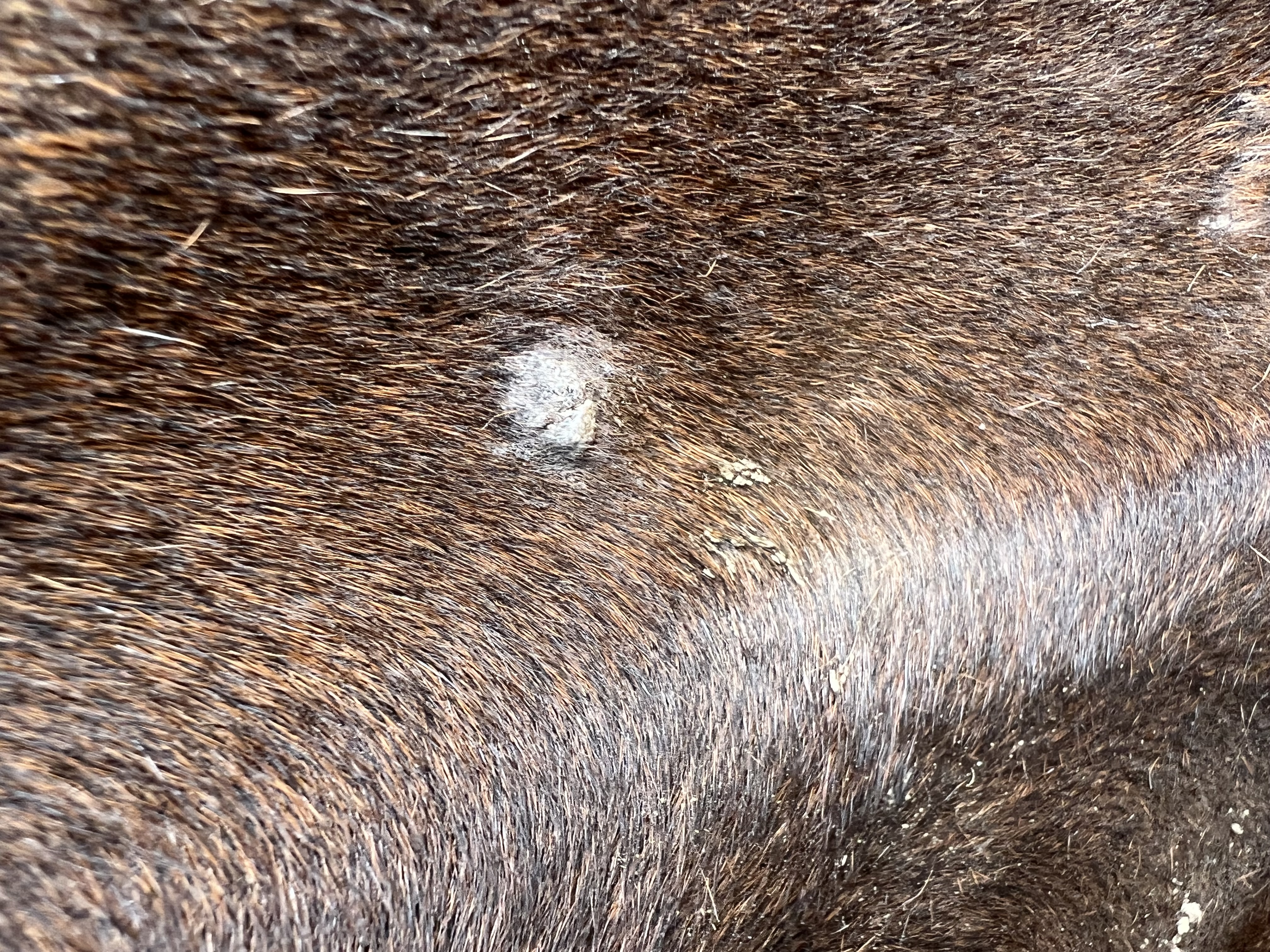 Davor wäre mir nichts aufgefallen, erst mit dem Fellwechsel kam da die Hautproblematik mit dieser kahlen Stelle.