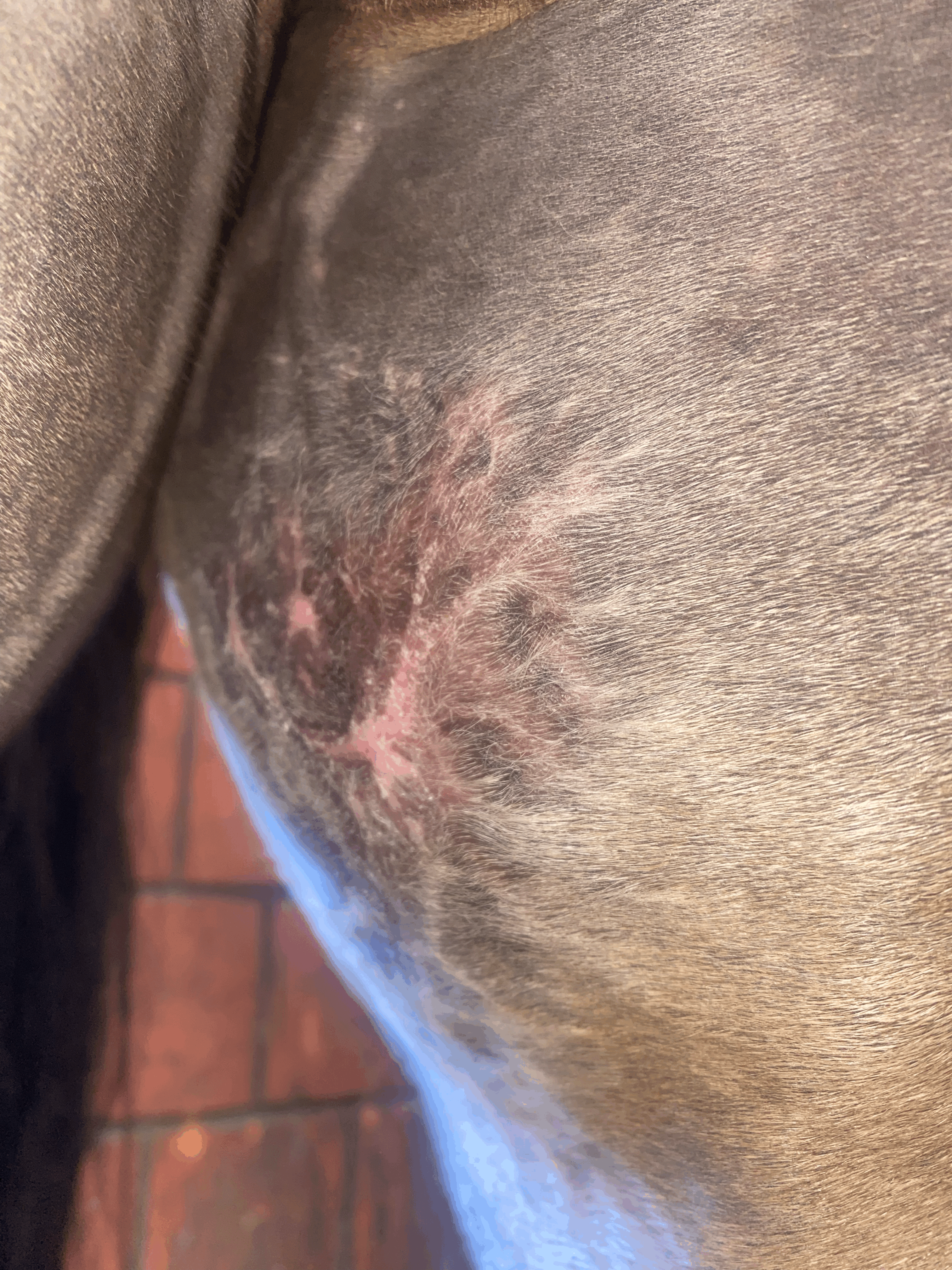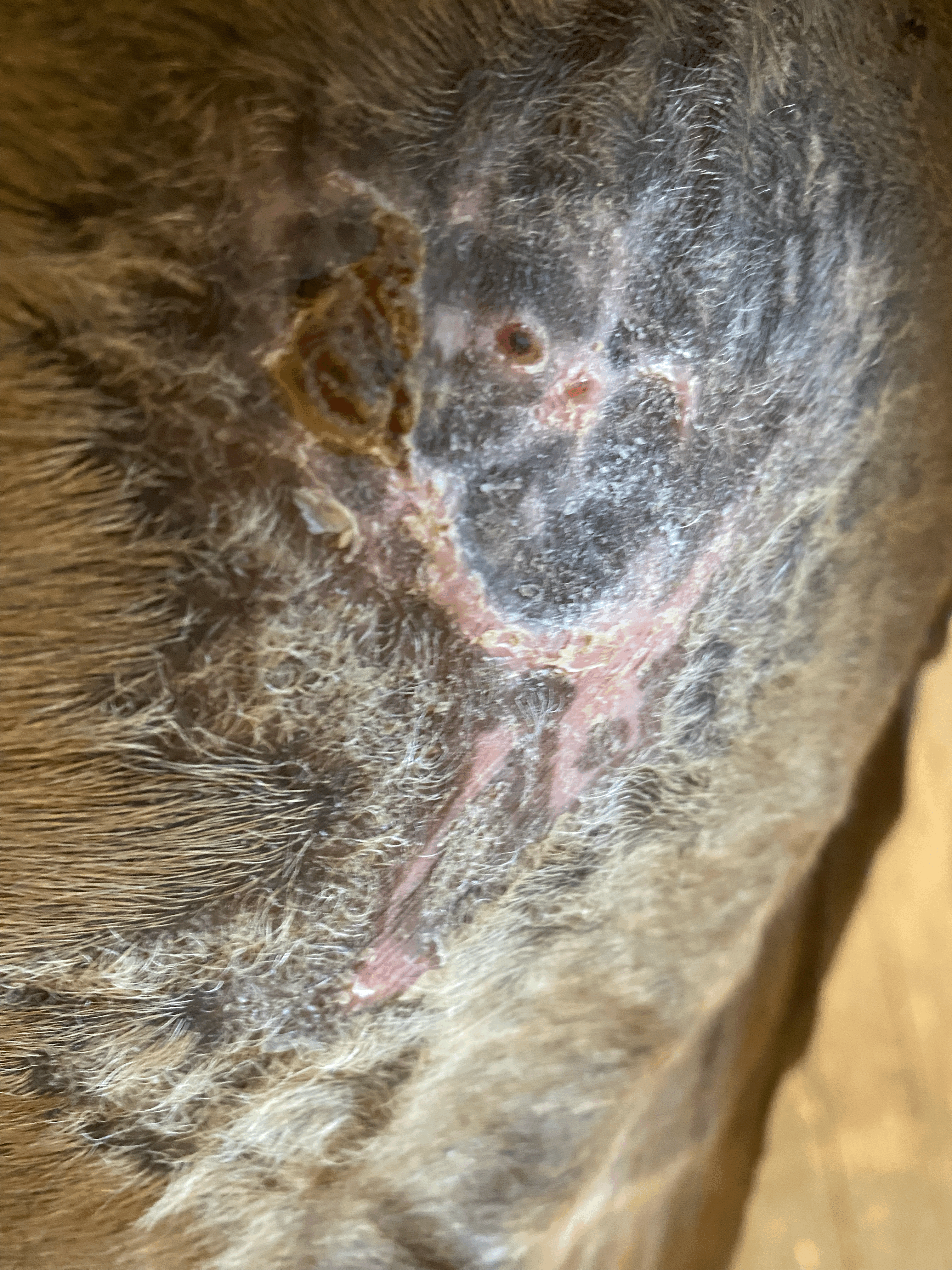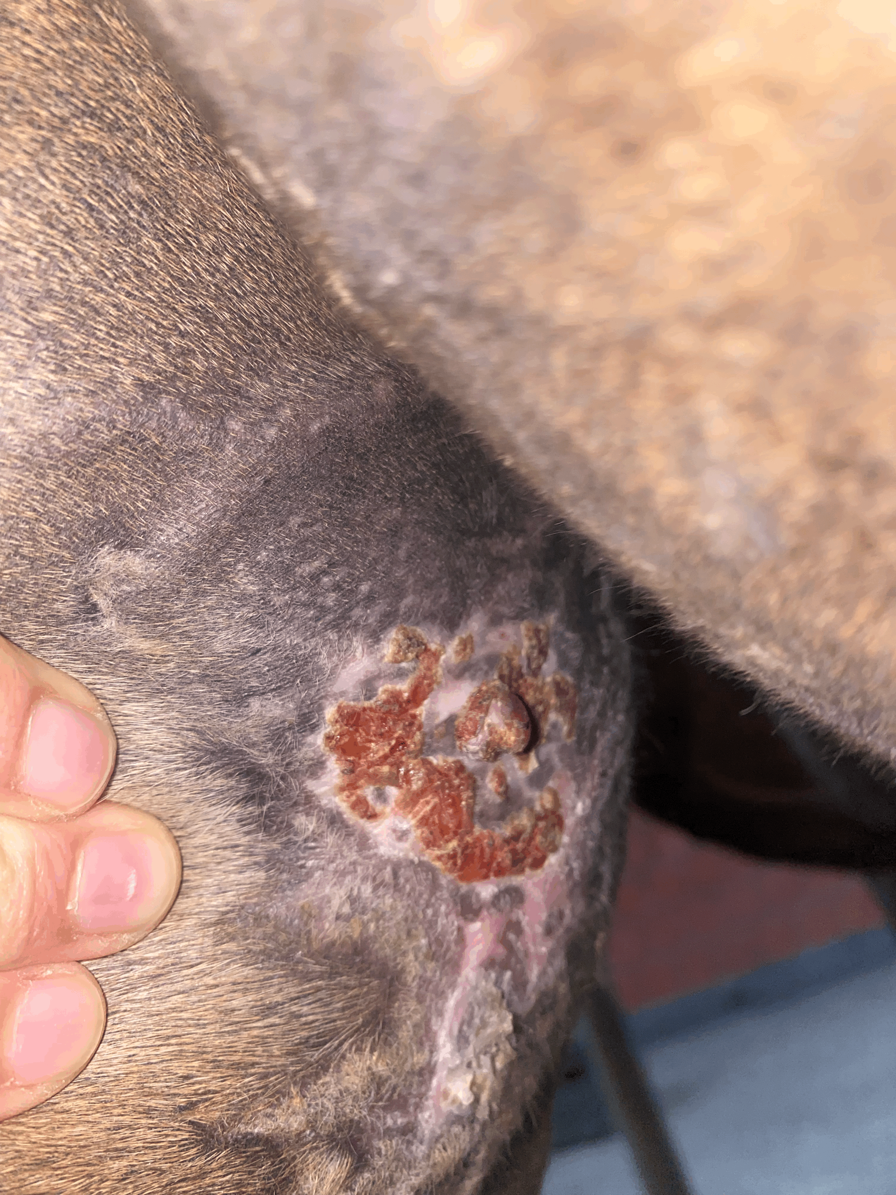 heute möchte ich wieder ein aktuelles Bild mit euch teilen. Ich bin wirklich sehr glücklich – es sieht ganz so aus, als wäre das Sarkoid beinahe vollständig zurückgegangen. Zwar bin ich mir noch nicht ganz sicher, aber es scheint, als befände sich unter der verbleibenden Kruste bereits gesunde Haut.