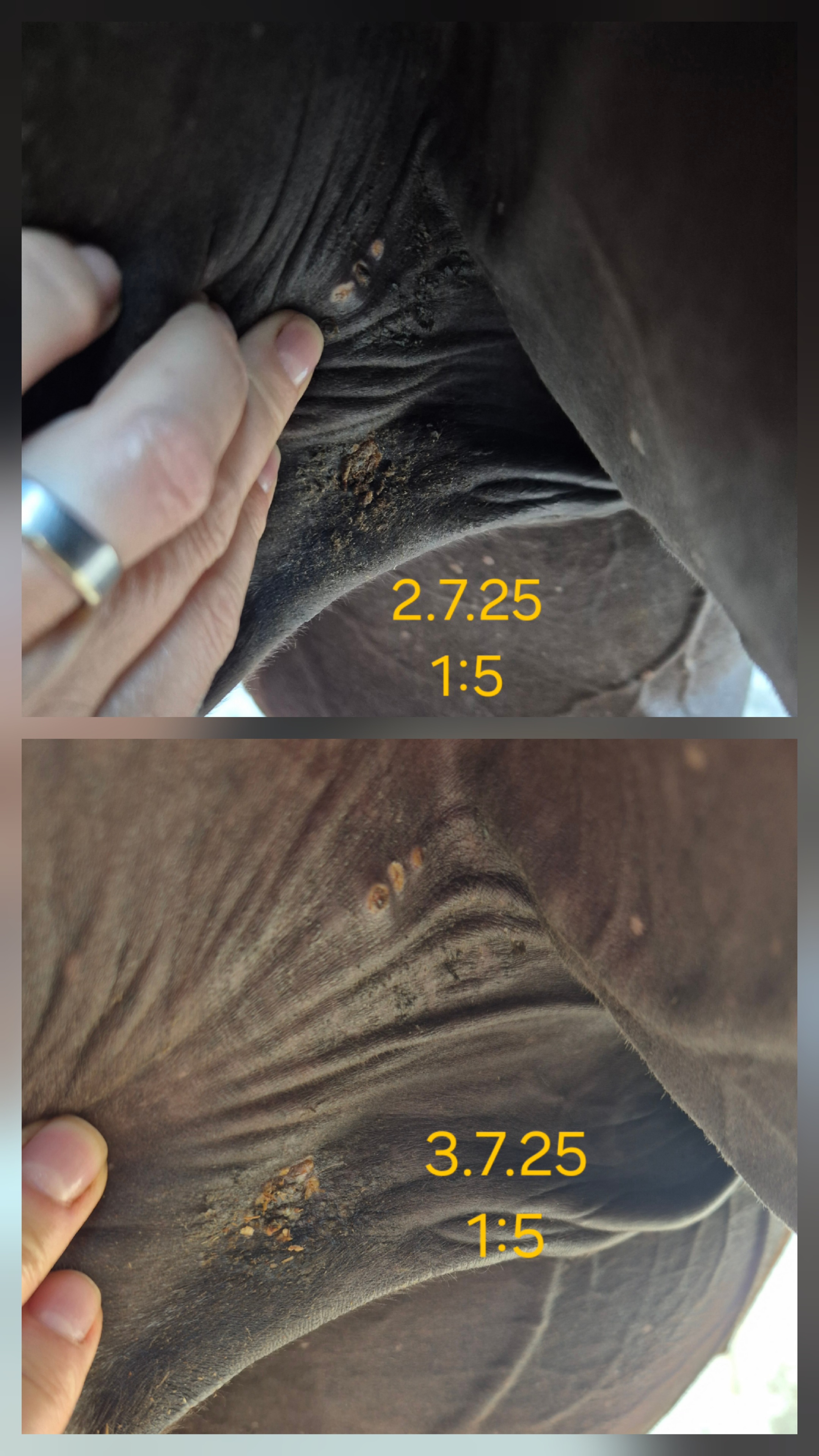 Also heute hat er sich das Sarkoid am Kopf fast abgerissen (siehe Bilder).
