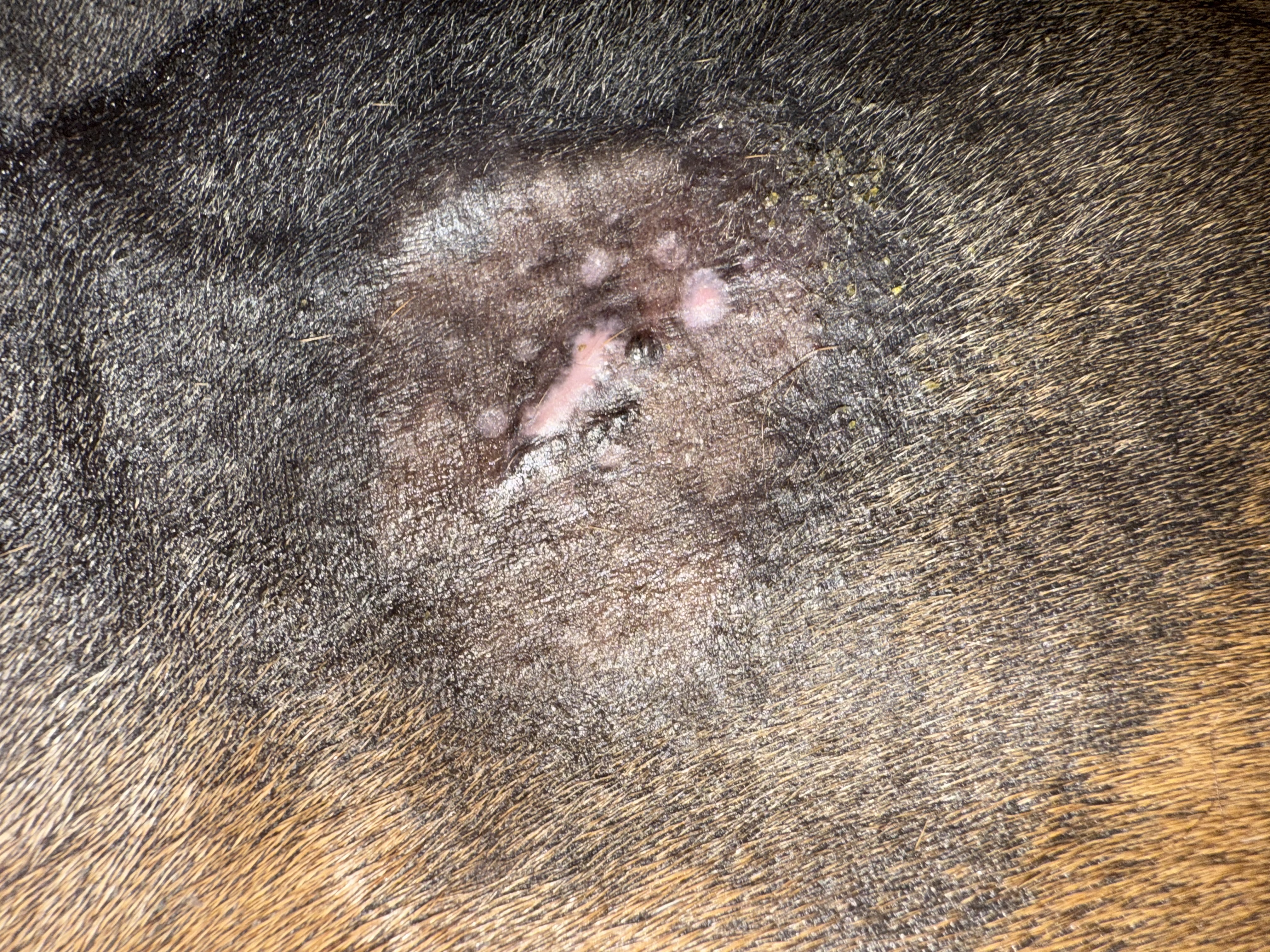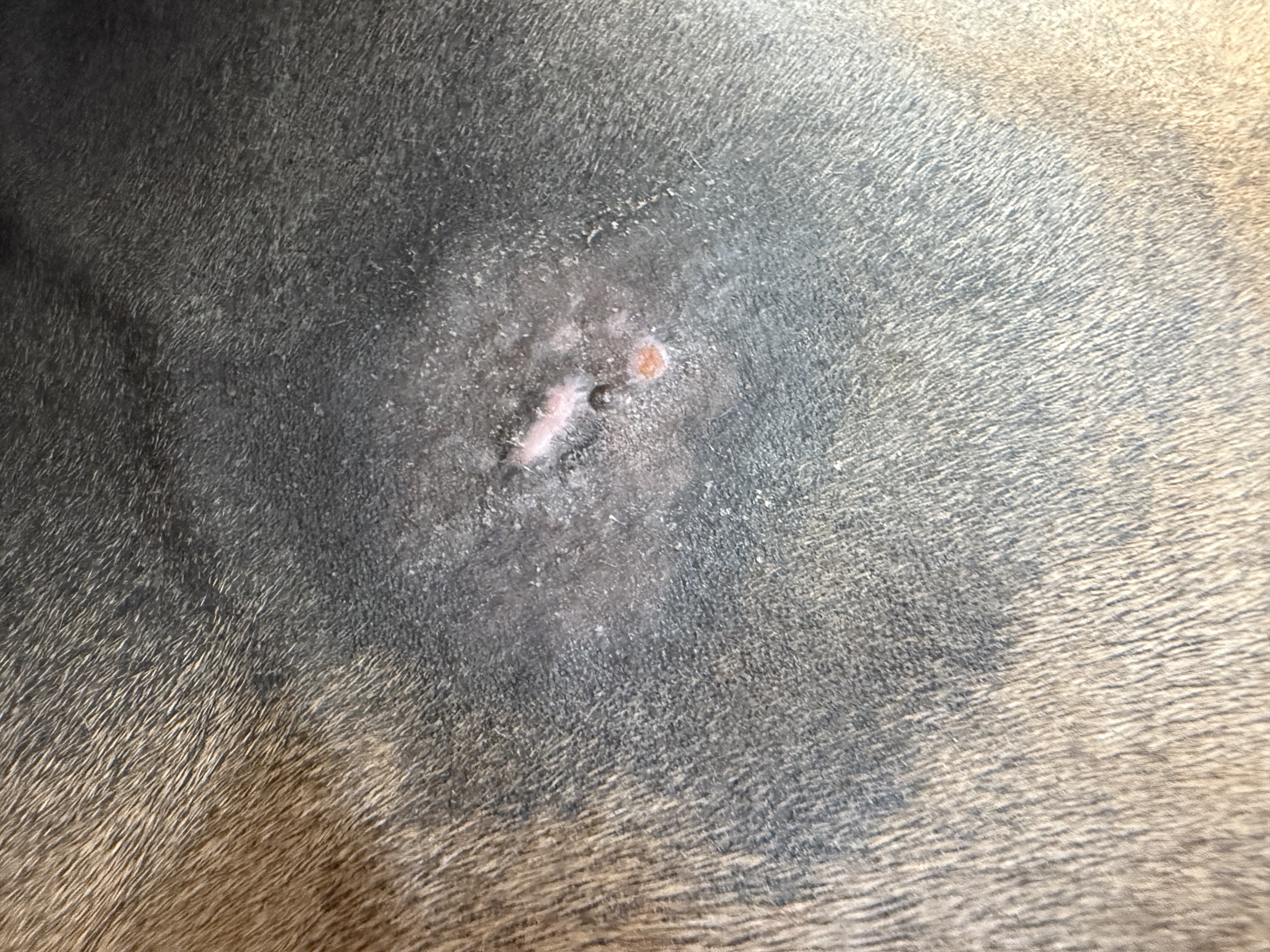 Hallo Andrea, mittlerweile sieht das Sarkoid (das den dicken Knubbel hatte, der abgefallen ist) so aus. Es heilt schön. Aber ich vermute, das unter der kleinen Erhöhung noch Sarkoidgewebe steckt. Oder meinst, das ist narbig, weil der abgefallene Knubbel ja doch groß war.