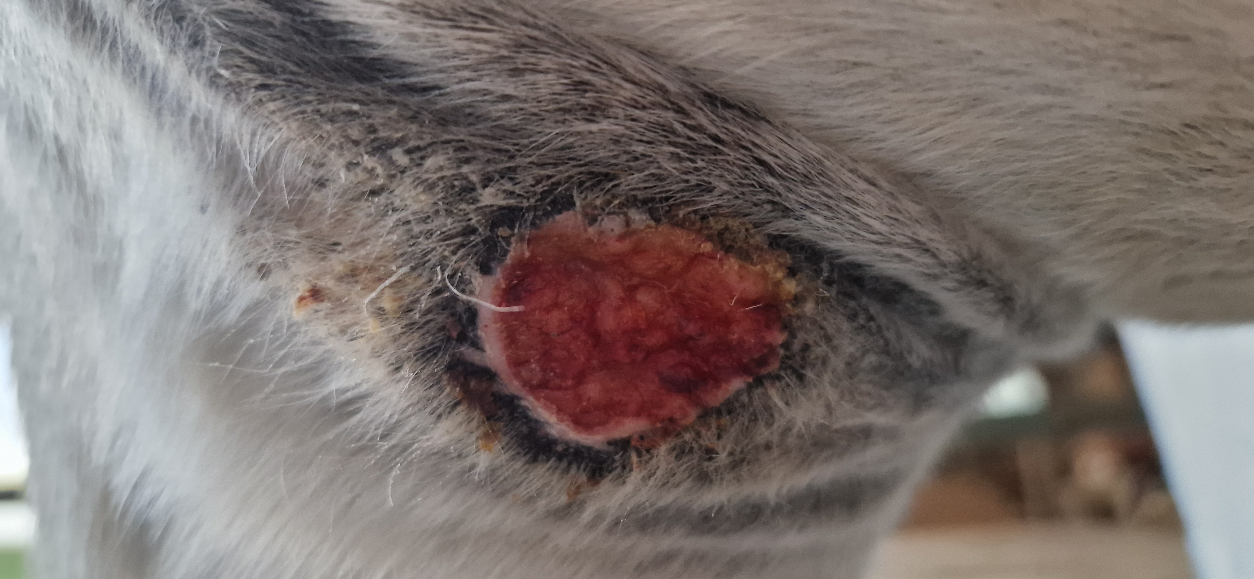 sieh's positiv: es ist nicht mehr geschwollen und außenrum ist ein rosa Heilrand und es scheint schon kleiner zu werden. Einfach weiter, irgendwann gibt es auf.