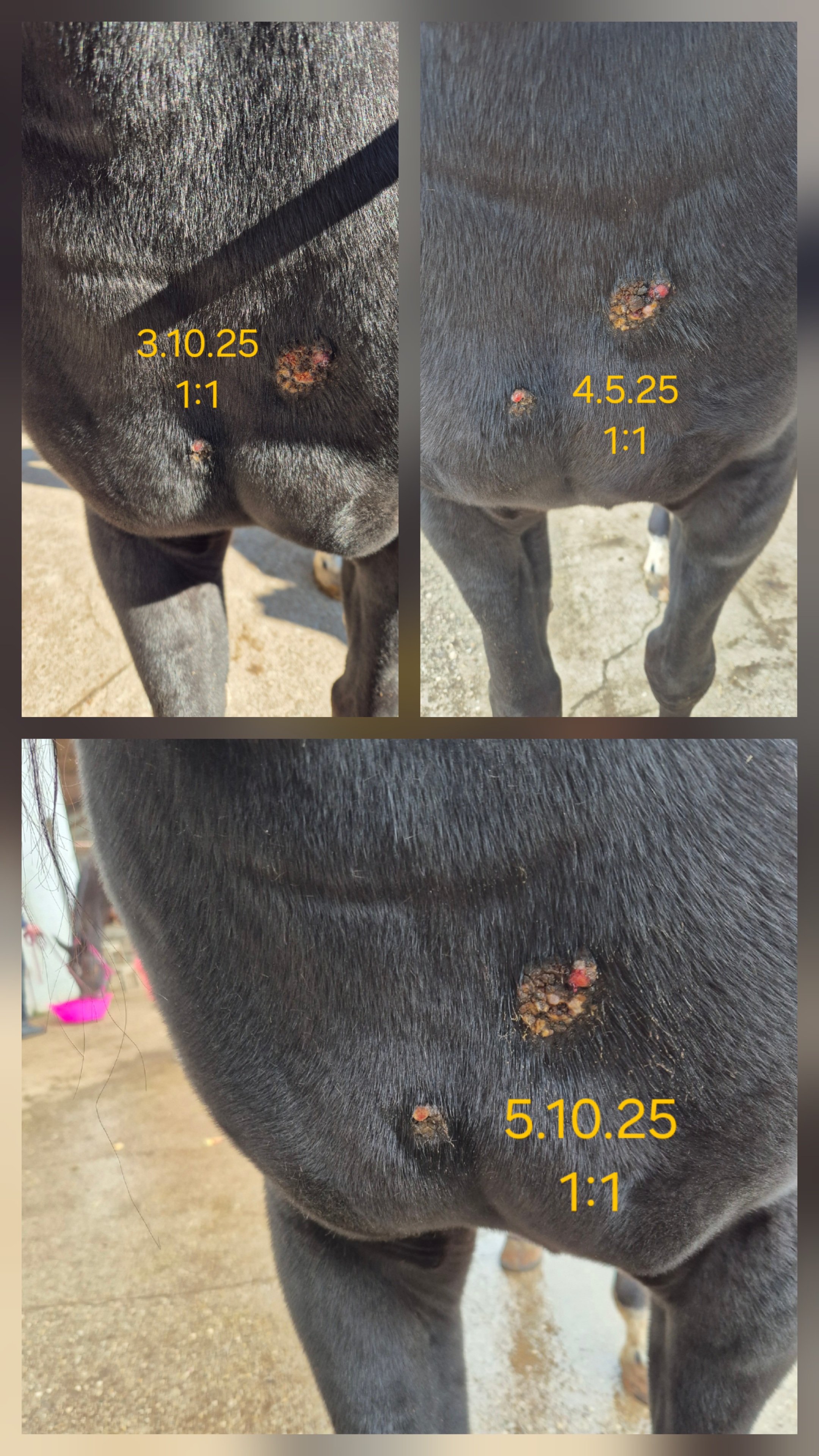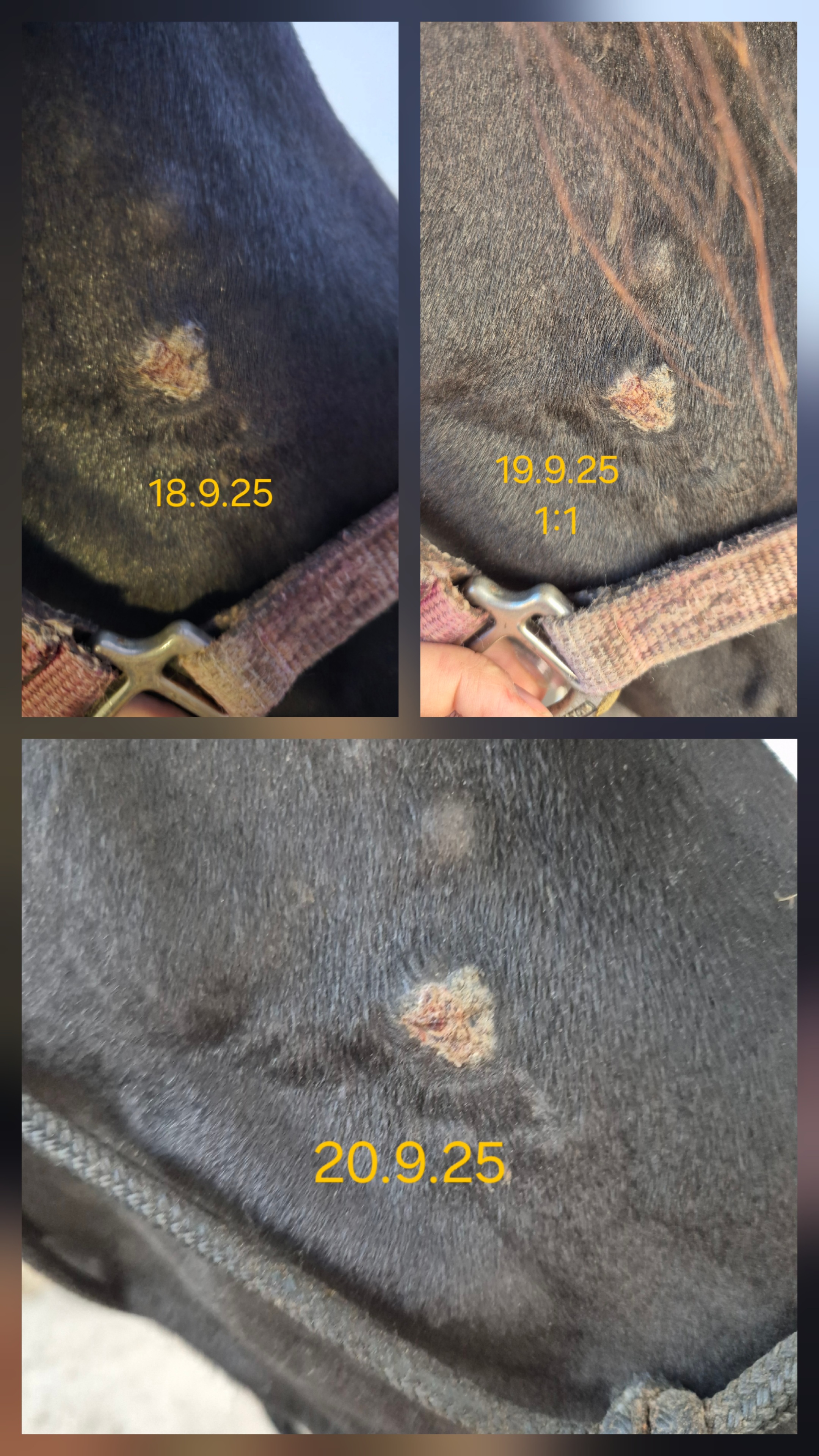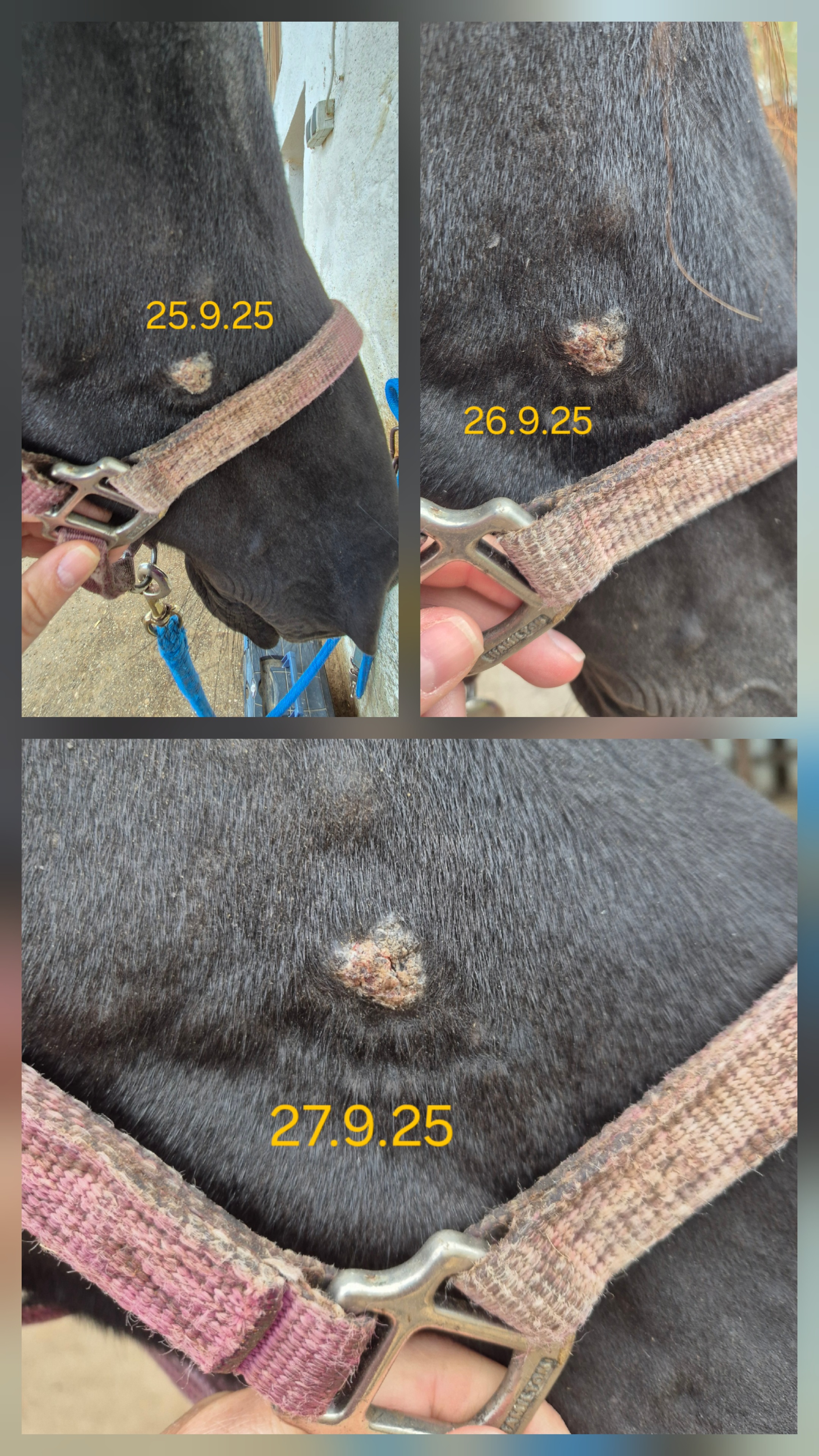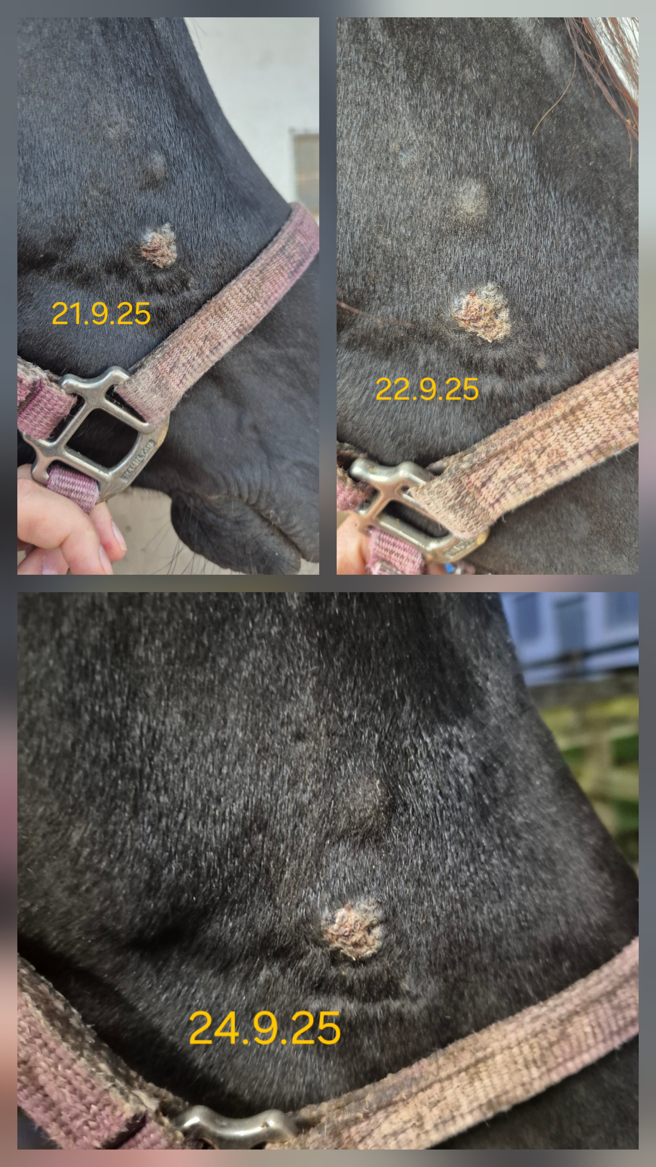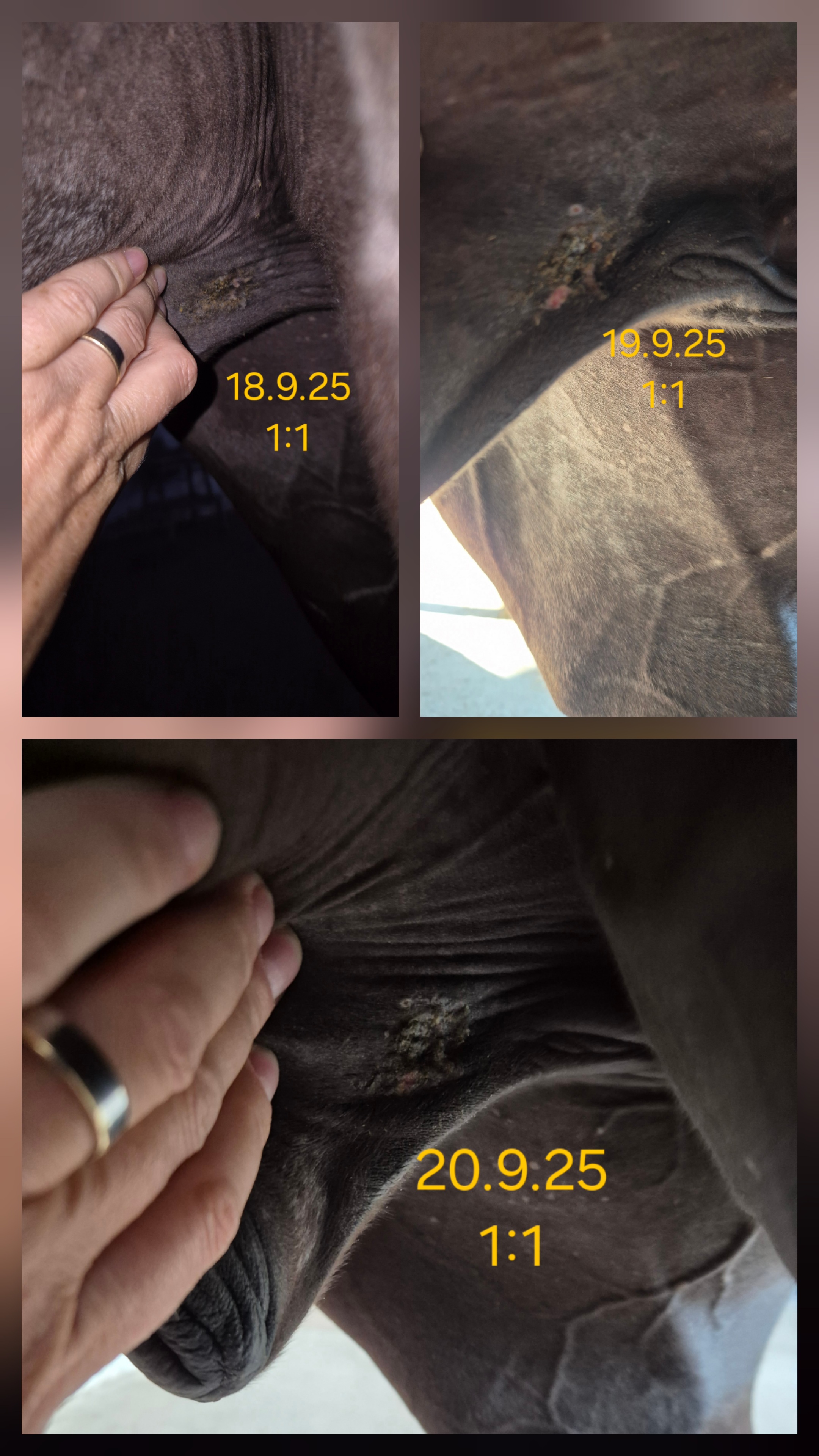 Das Sarkoid am Schlauch schuppt sich mehr als das es krustet und er lässt mich echt schlecht hin... Muss ganz schön aufpassen!