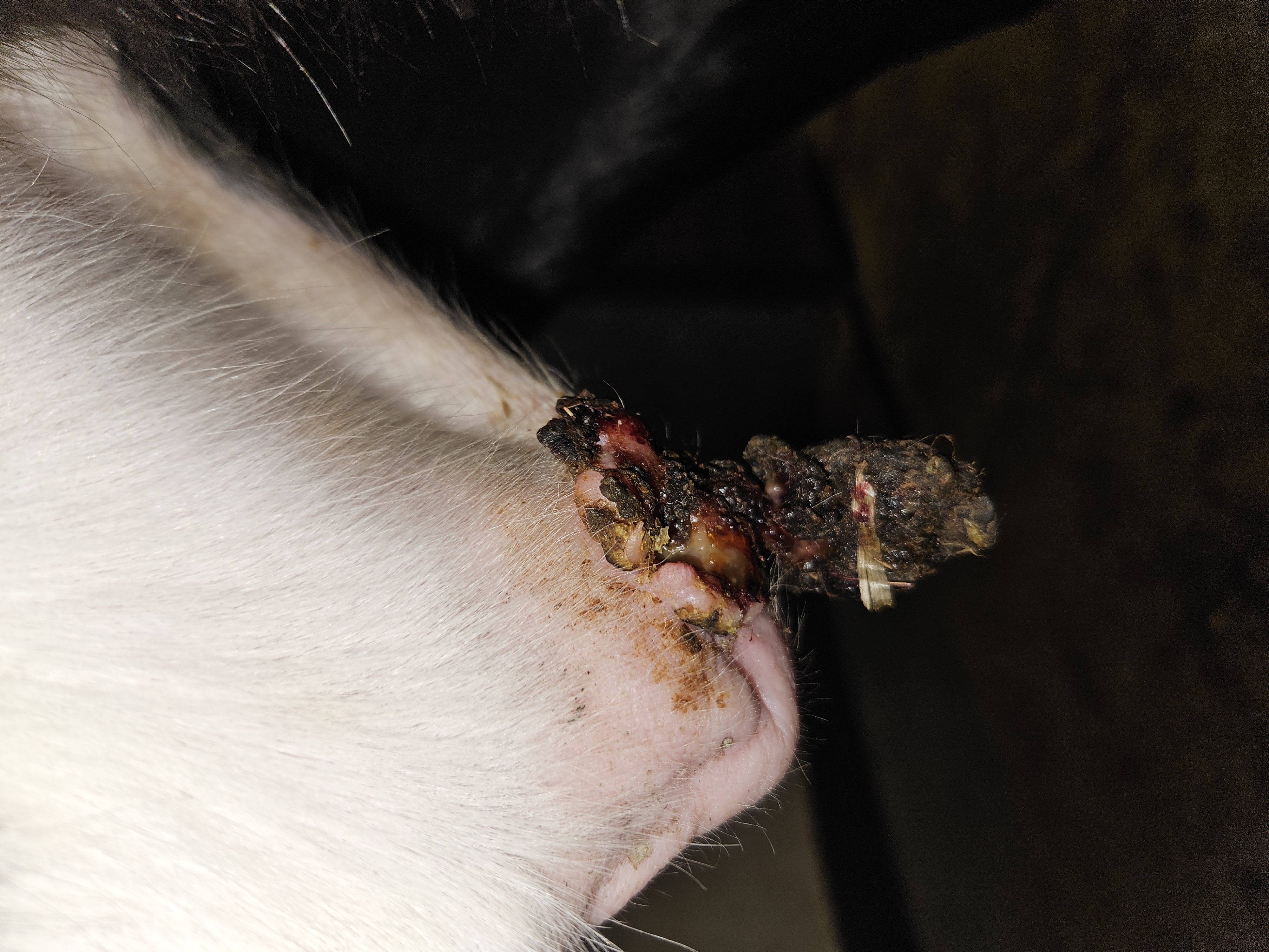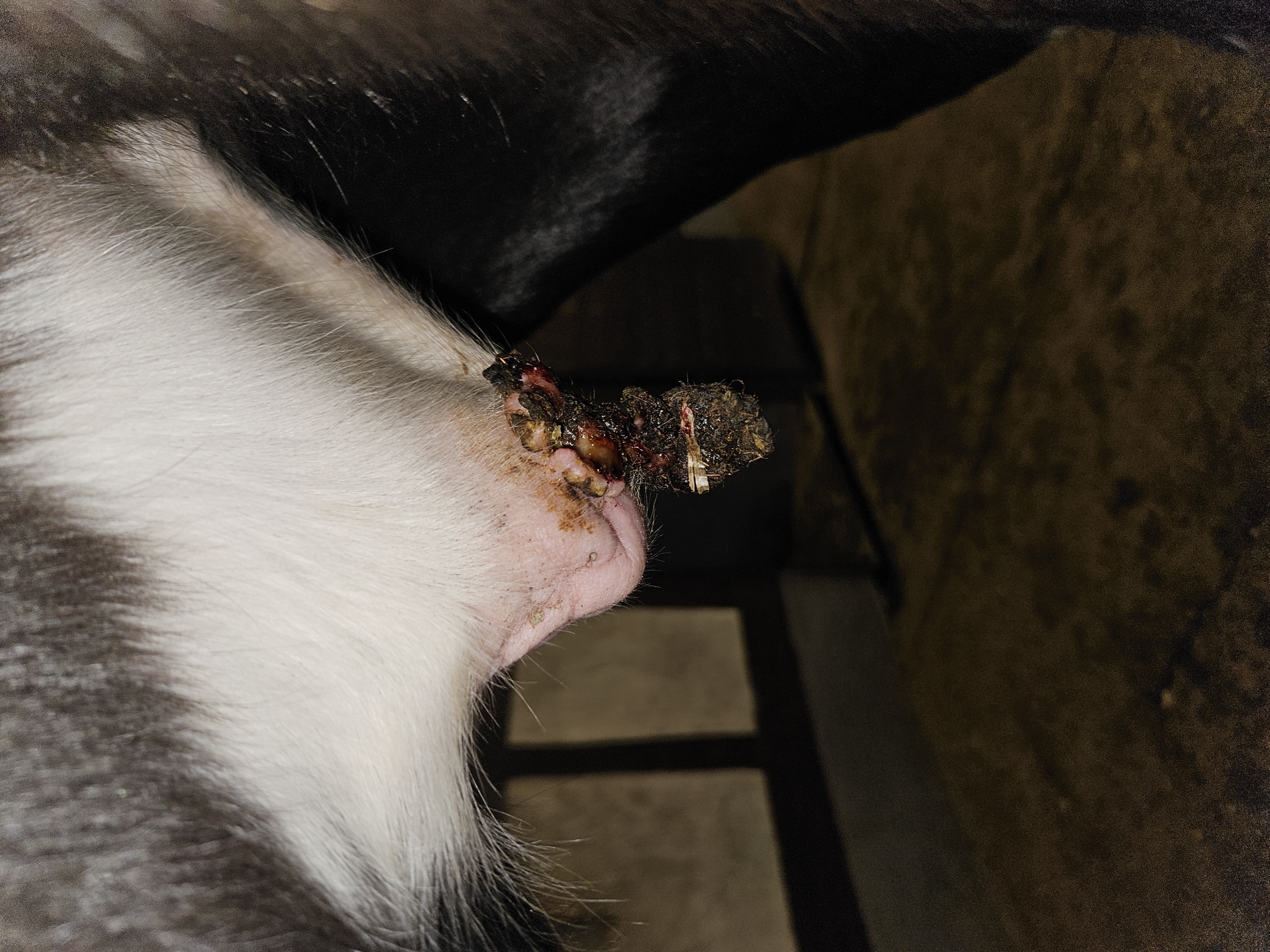 Die Idee, an der Rinne nachzuhelfen, liegt natürlich nahe, aber bedenke bitte: abbinden darf nur der Profi (=Tierarzt). Kannst den/die Deines Vertrauens ja mal fragen.
