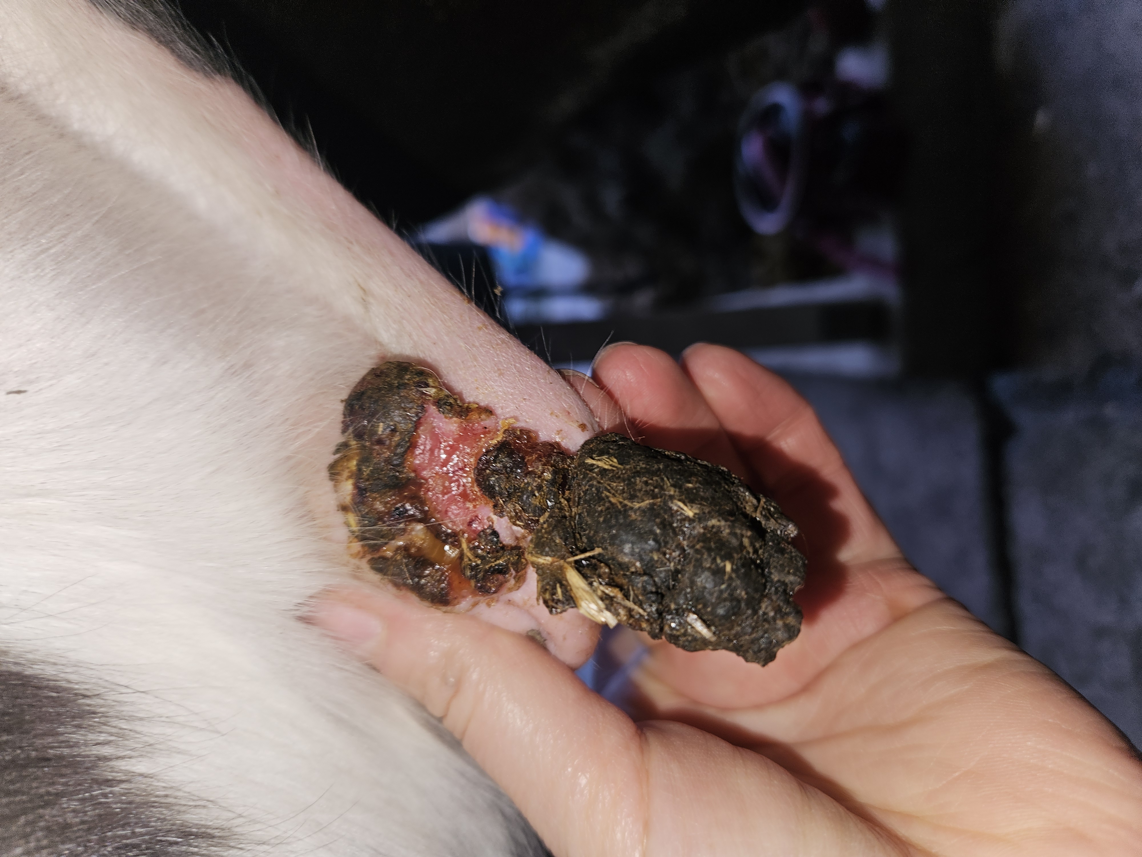 Ich schmiere nur die offenen Stellen welche blutig oder eiterig sind.