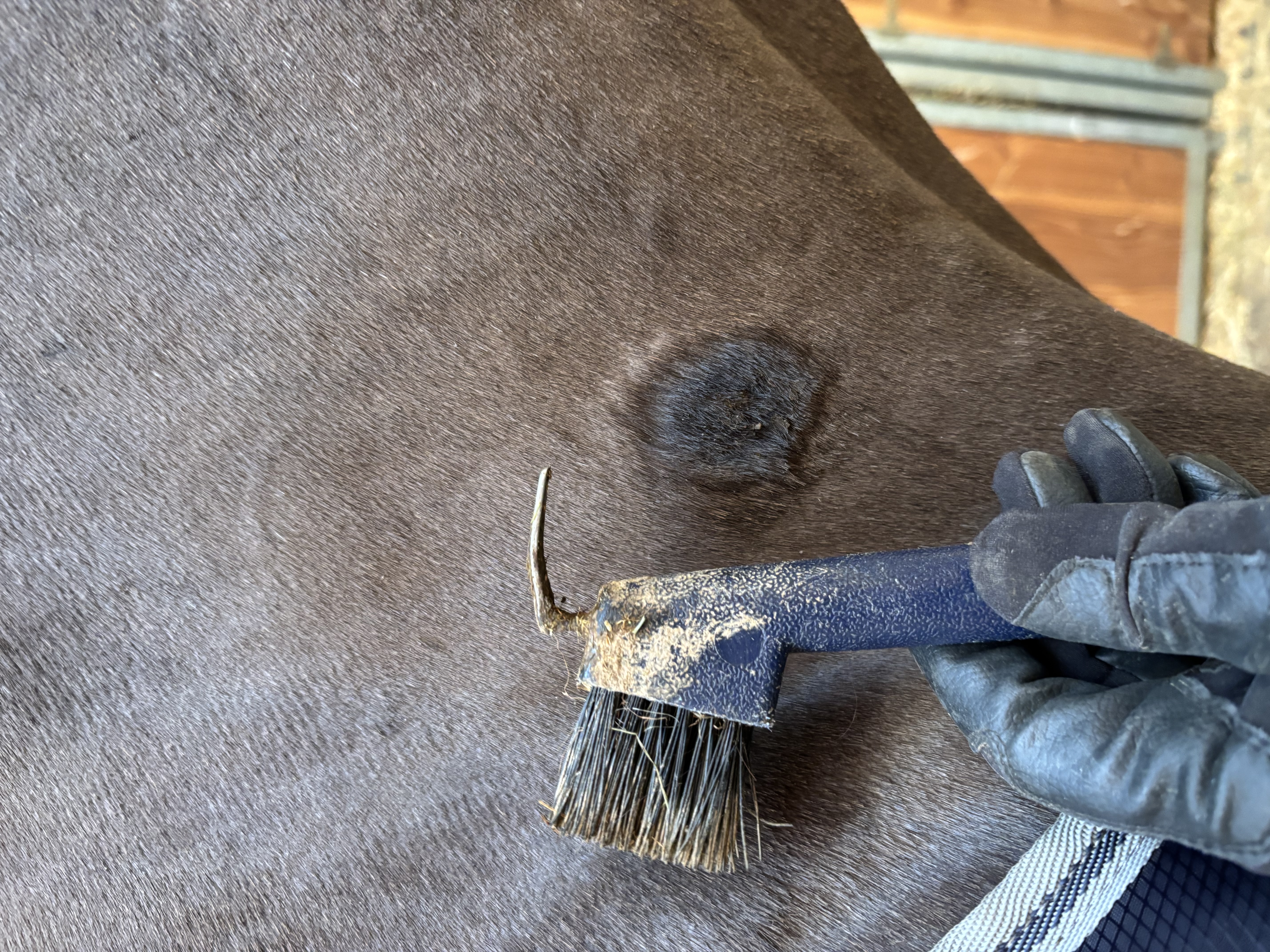 Er hat das Sarkoid seit Sommer 2024. Zu der Zeit hatte mein Wallach starke Probleme mit breiigen Kot - nach umfangreicher Diagnostik ist dies ohne Behandlung weggegangen und auch ohne Wissen zum Hintergrund.