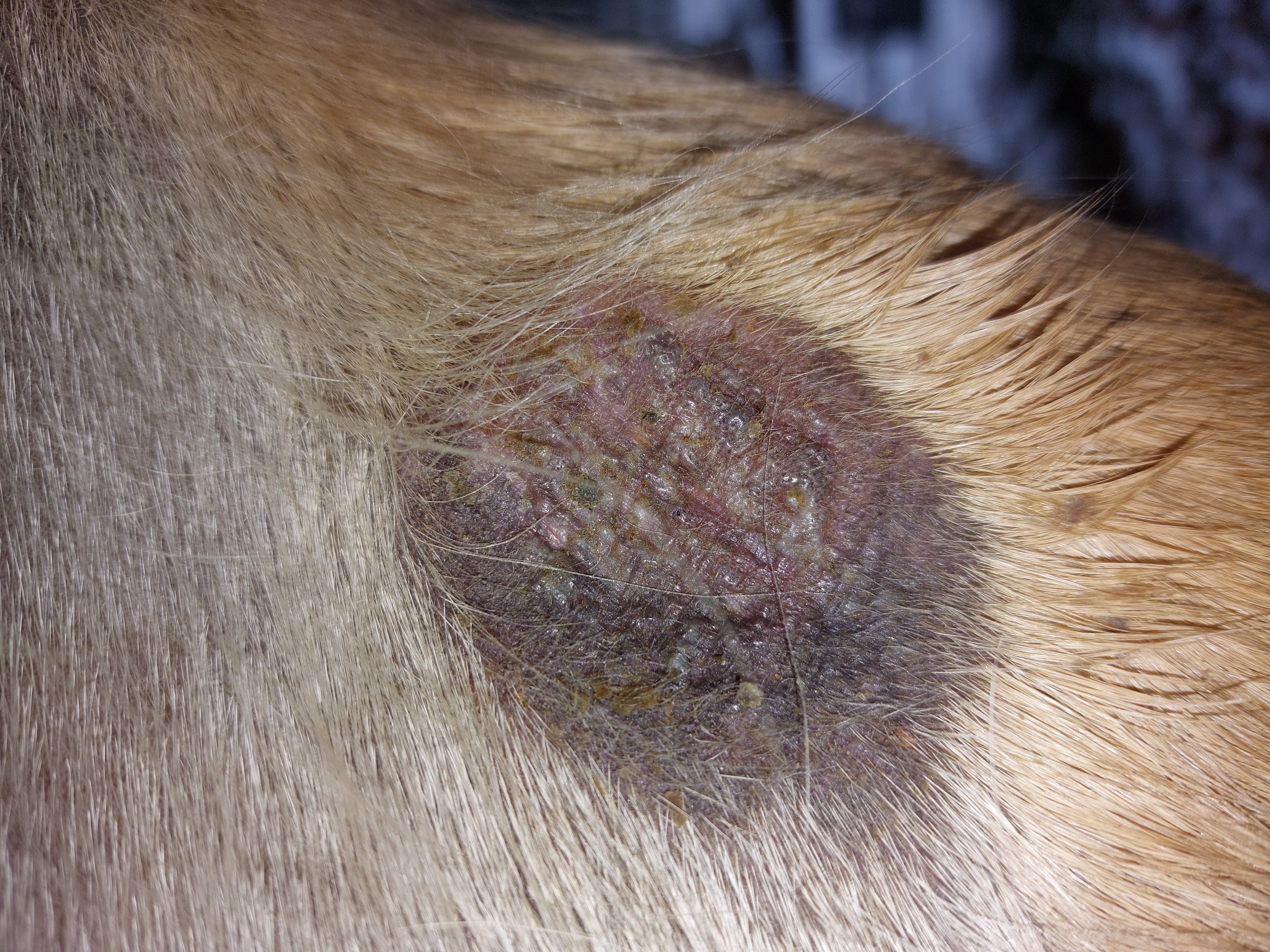 mein Pferd hat eine Hautveränderung an der Inneseite Oberschenkel. Der TA vermutete im April diesen Jahres, es könne ein Sarkoid sein, ich solle es beobachten, ob es wächst/ sich verändert. Im Beobachten bin ich nicht so gut, mache mir dann trotzdem Gedanken/Sorgen etc. Also habe ich gedacht, besser frühzeitig los werden, wenn's irgendwie geht. Von April bis September habe ich mit Sarkosense behandelt und damit ein anderes kleines warziges Sarkoid komplett weg bekommen. Das flächige in der Beininnenseite ist zwar mal farblich etwas rosaner geworden, aber hat sich ansonsten über die Monate nicht verändert. Seit November behandel ich es mit CompX, darauf reagiert die Haut mit Krustenbildung und auch gelblichem Sekret. Leider ist die Stelle seitdem auch etwas gewachsen. Ich wollte Euch mal den Verlauf der letzten Wochen zeigen und um Rückmeldung bitten, ob das in die richtige Richtung geht oder ob ich etwas ändern soll. Bisher schmiere ich CompX (50% mir Vaseline) ca. 5 mal die Woche dünn auf die Stelle. Wenn es ganz arg krustig ist, lasse ich mal einen Tag ausfallen. Weh scheint es nicht zu tun, Herr Ponymann lässt mich problemlos da dran.