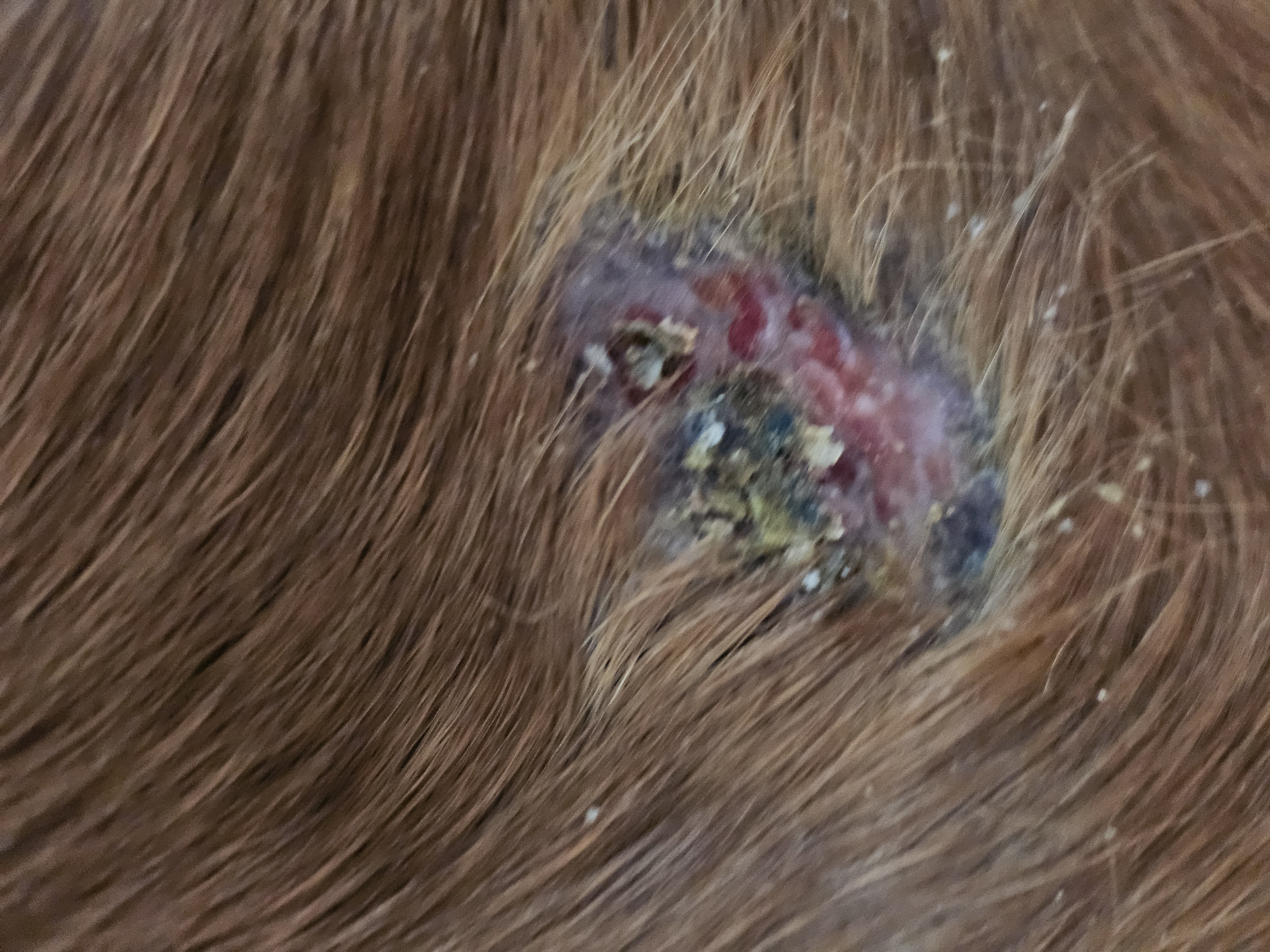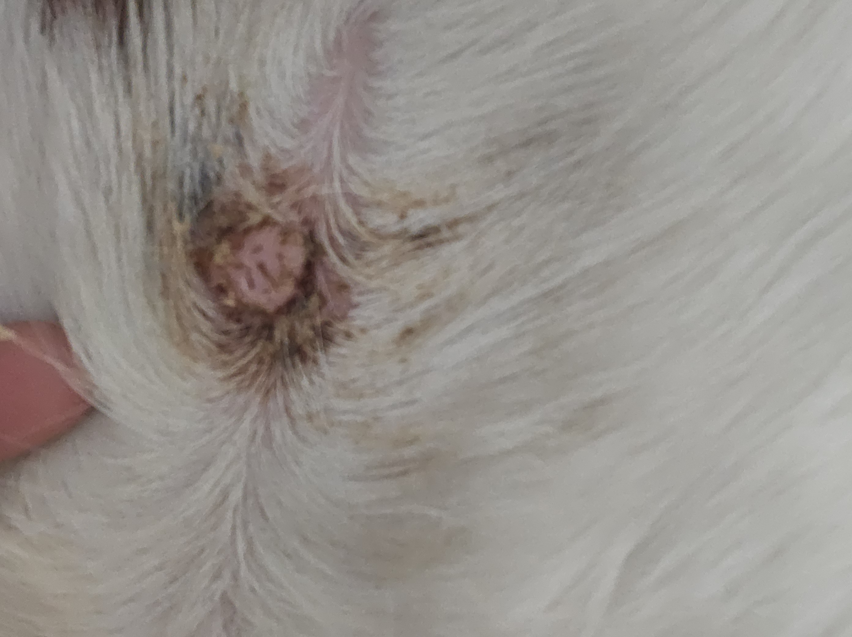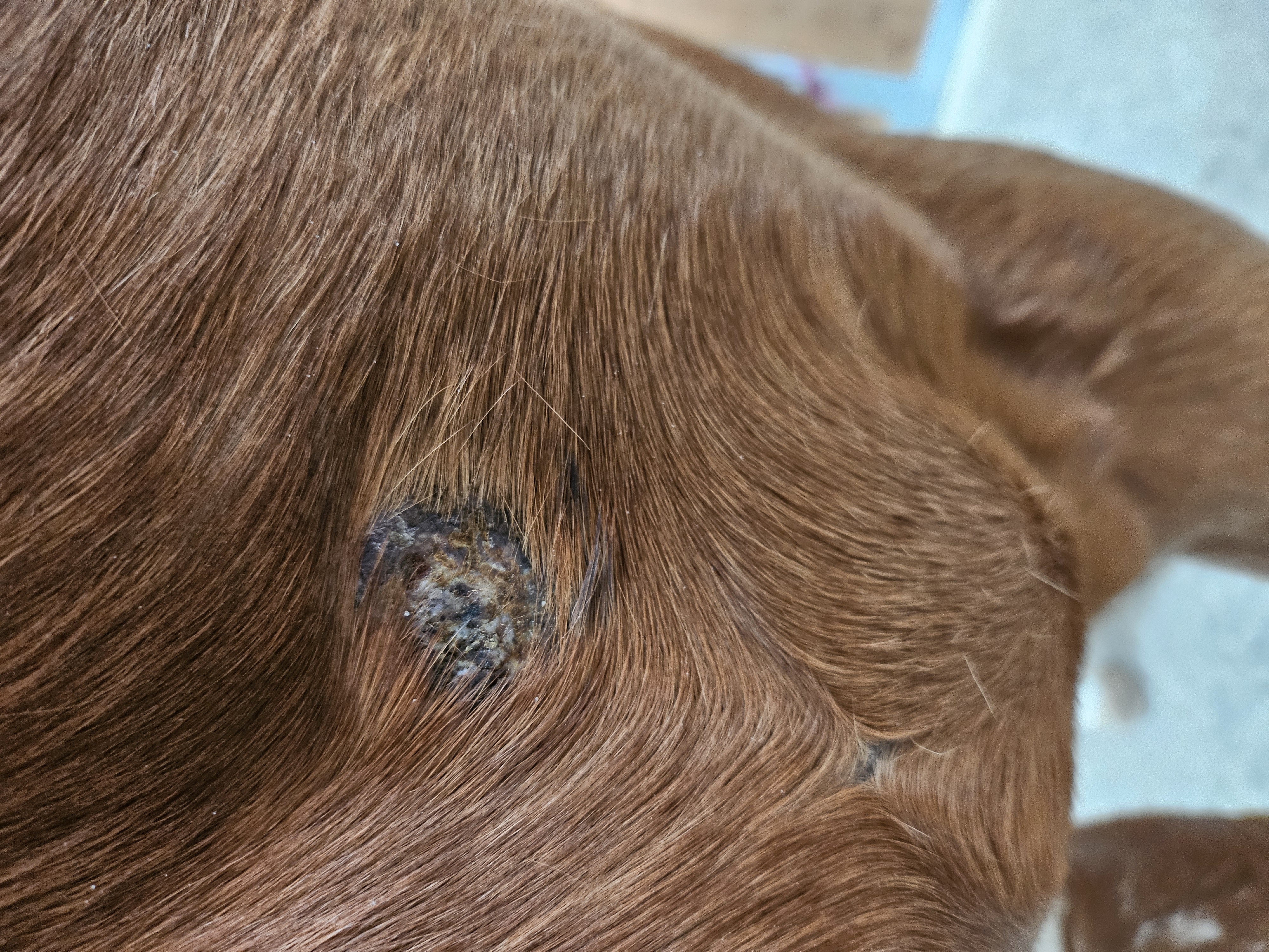 das an der Brust sieht aber eigentlich auf dem Bild schon recht flach aus. Zudem sprießen da schon Haare. Eigentlich denke ich, dass das eher schon Richtung "erledigt" geht. Können wir das mal kurz testen? Gerne 1:5 jeden 2. Tag für 2 Wochen und dann herzeigen bitte.