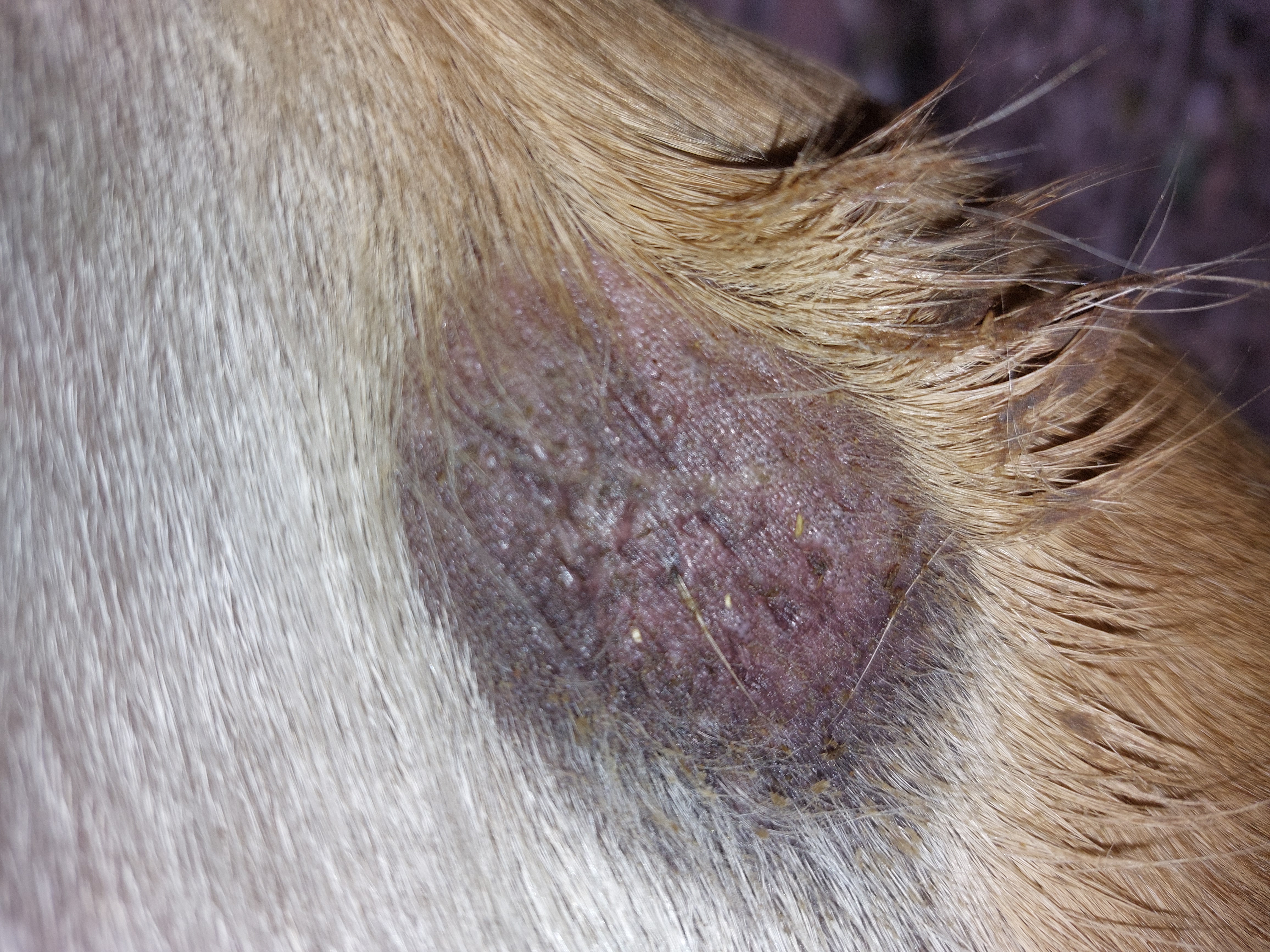 hier ein Update von Pan und seinem flachen Sarkoid eine Woche später. Ich habe am Dienstag und Freitag CompX im Verhältnis 1/5 aufgetragen. Bild von heute, Sonntag. Was meinst Du? So weiter oder wieder intensivieren?