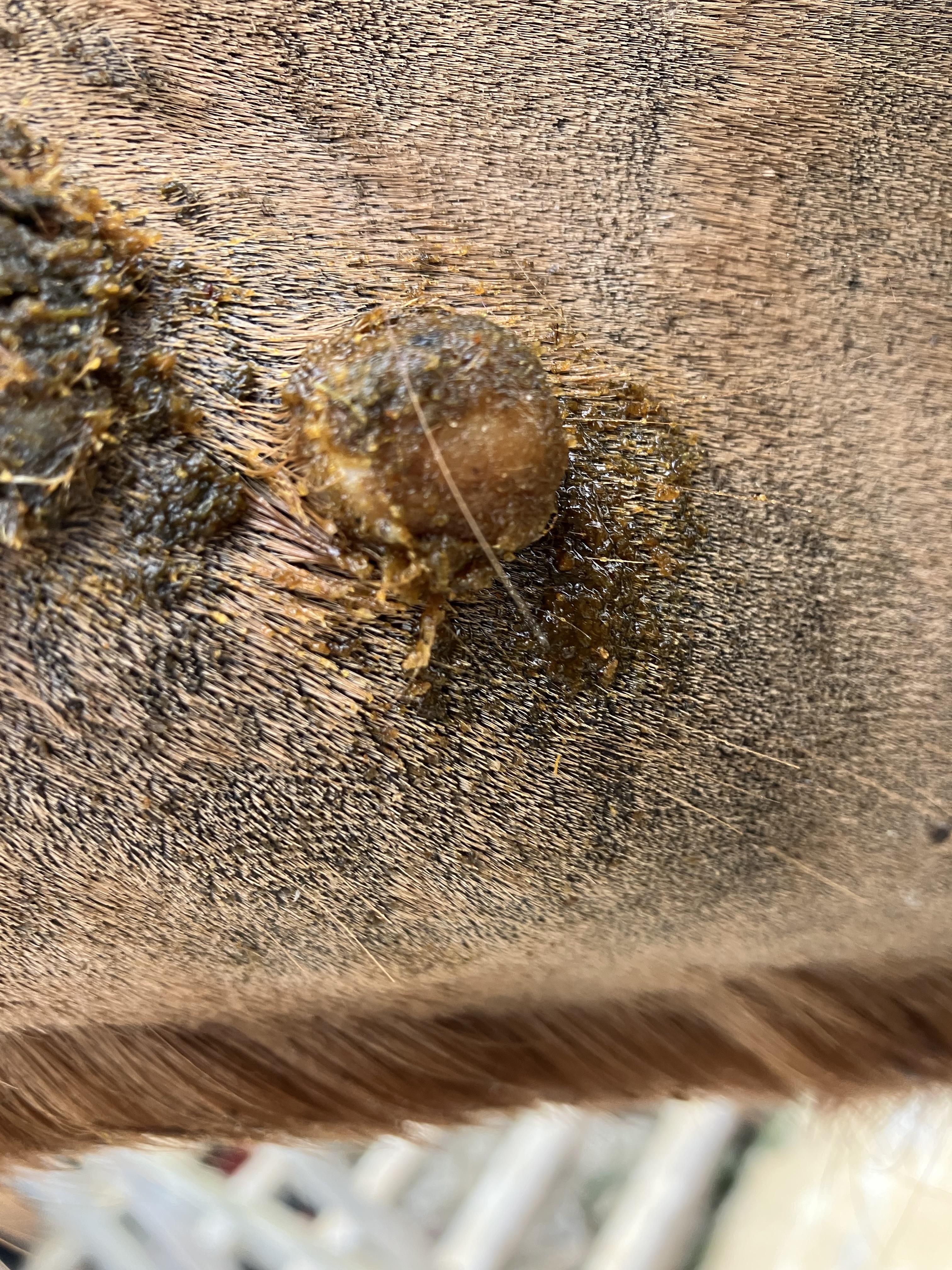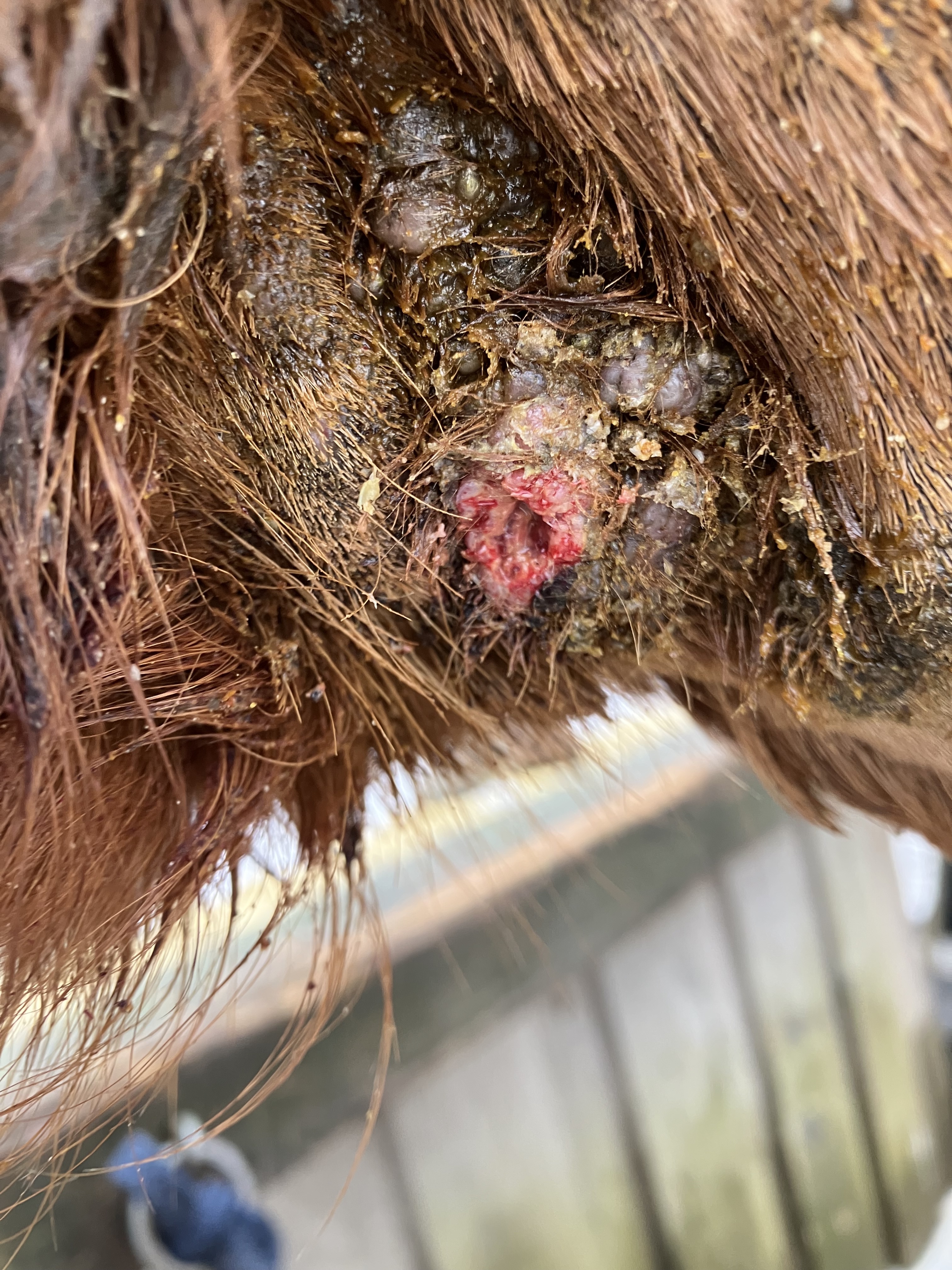 Soll ich bei dem blutigen Sarkoid am Hals vorne jetzt erstmal nicht schmieren?