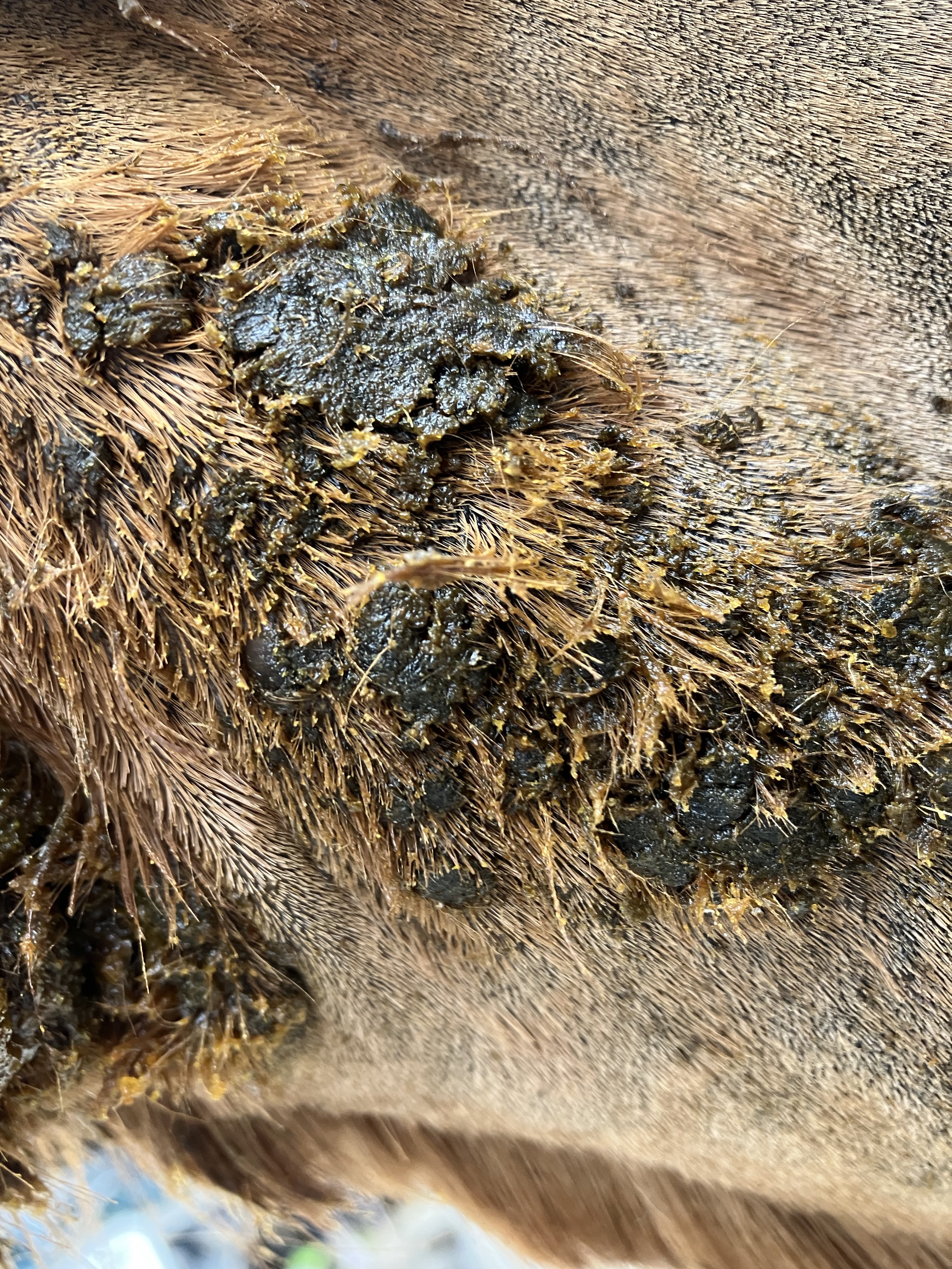 Dann hat mir eine TÄ aus der Tierklinik in Berlin von der Tumorimpfung abgeraten, da sie schon erlebt hat, dass ein Pferd als Reaktion auf die Impfung ganz viele Sarkoide entwickelt hat. Ausserdem wäre es ungünstig nur einen Teil rauszuschneiden, da der Rest dann wahrscheinlich stärker reagieren würde. Insgesamt ist die Fläche aber zu groß um alles wegzunehmen.