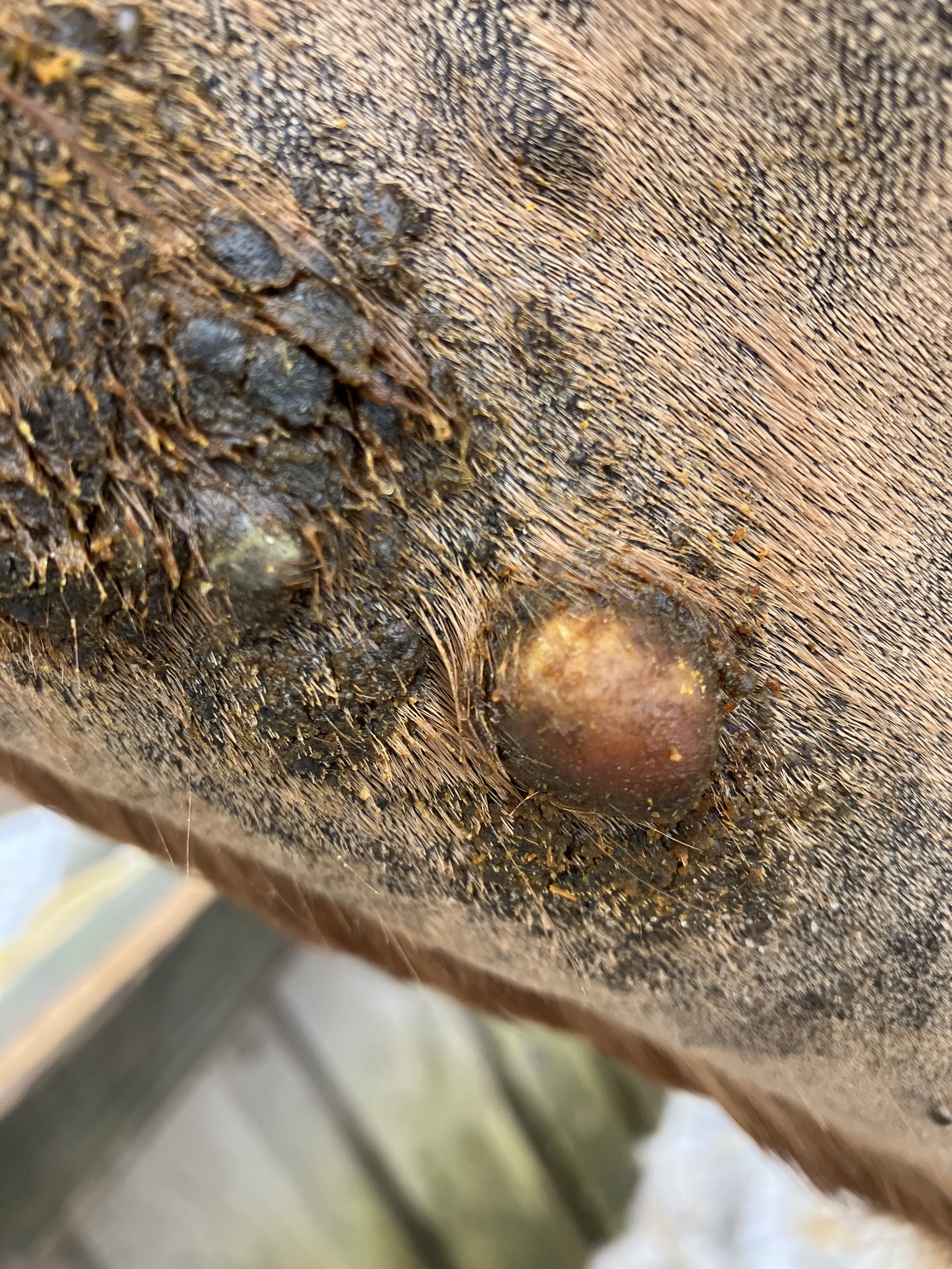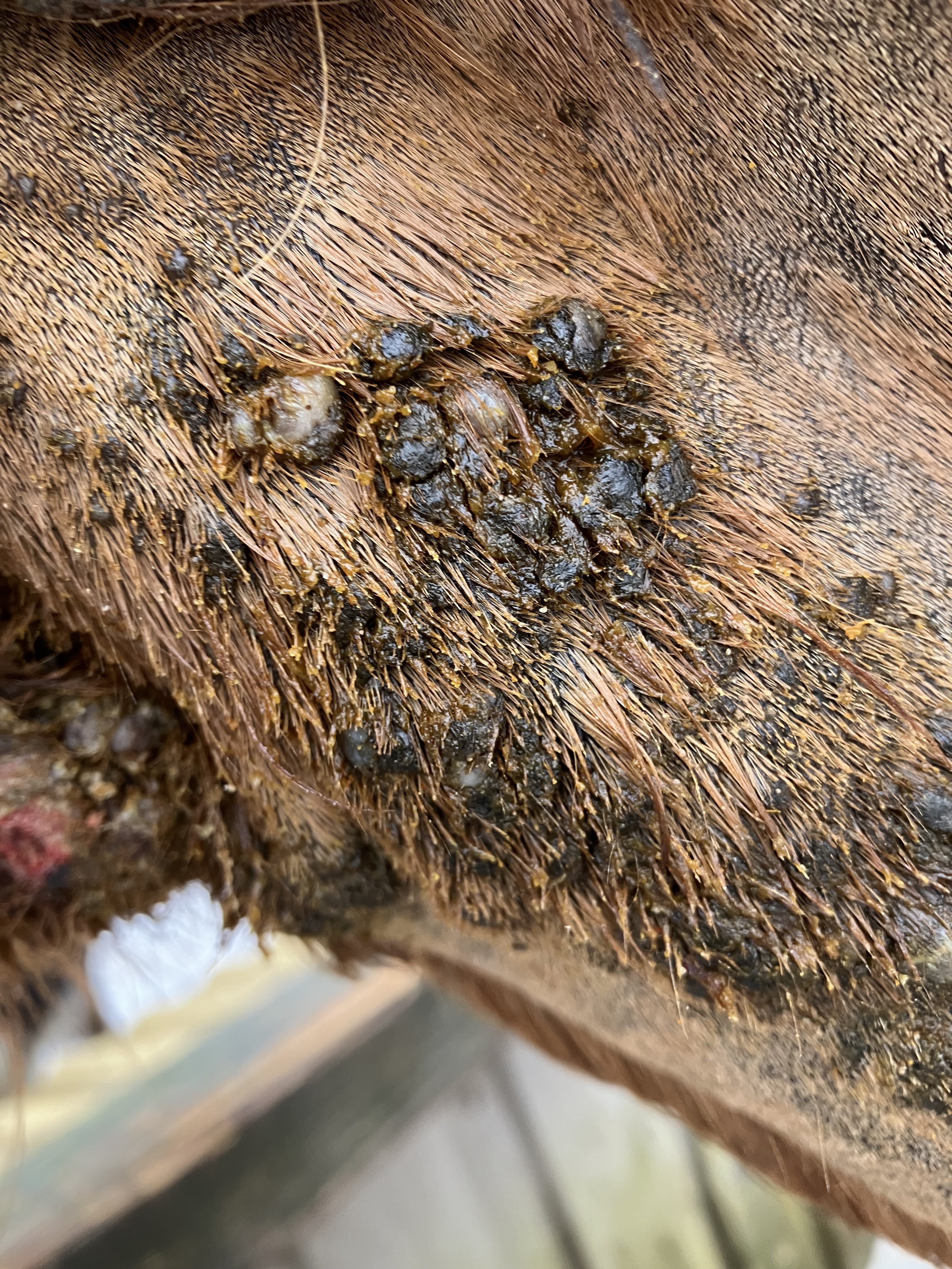 meine Stute hat im letzten Jahr verschiedene Sarkoide am Hals entwickelt.Ich schmiere seit 2 Wochen mit Compx 1:1 und würde mich über Begleitung bei der Behandlung freuen.