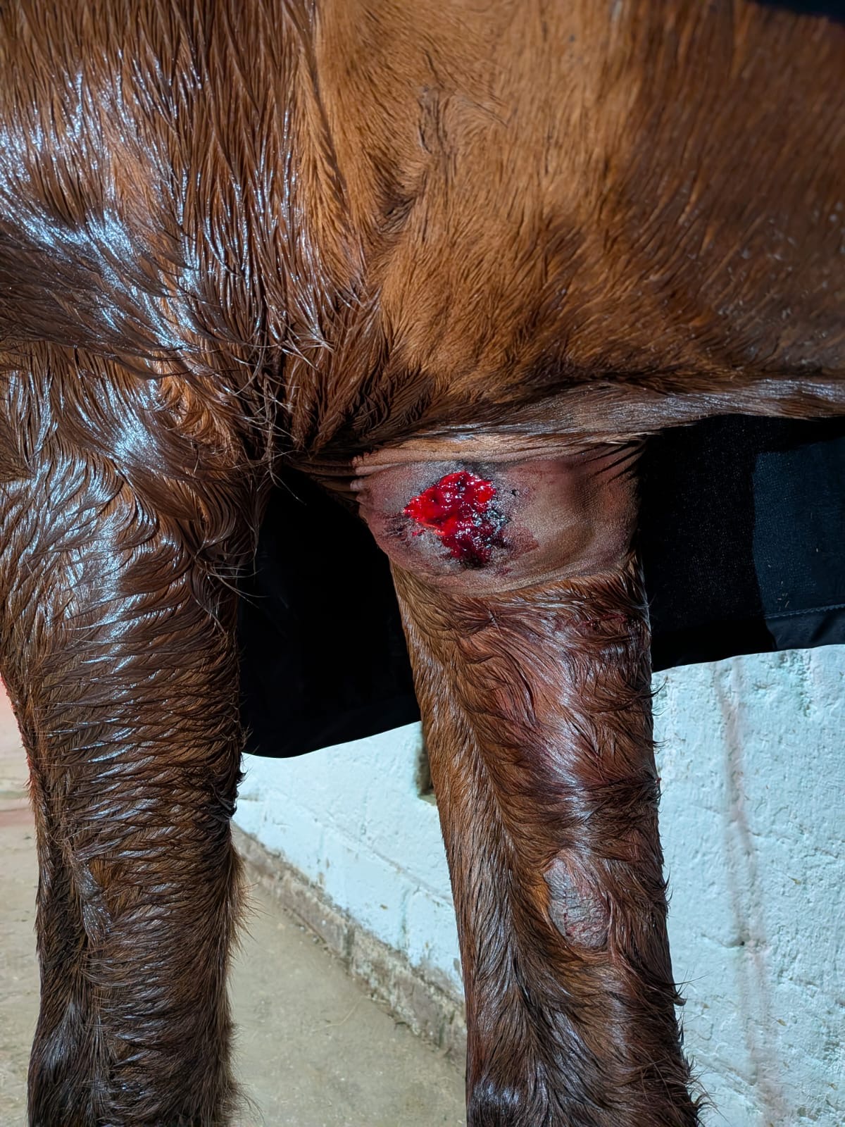 Vom Verhalten geht’s ihm super. Die Schwellung ist zwar noch etwas da aber er darf täglich longiert werden, was für unser Energiebündel super ist.