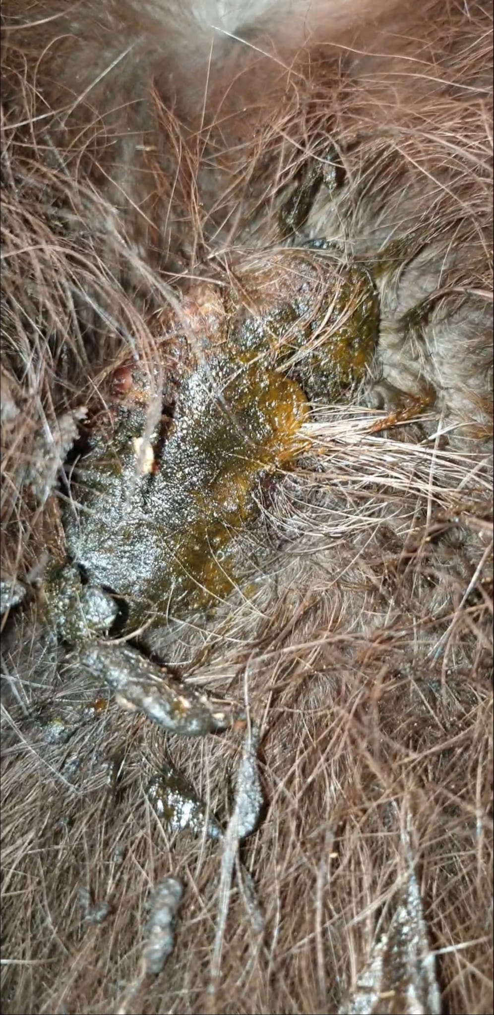 Die sieht real ganz gut aus, es hängt nur viel verklebtes Haar drumherum.