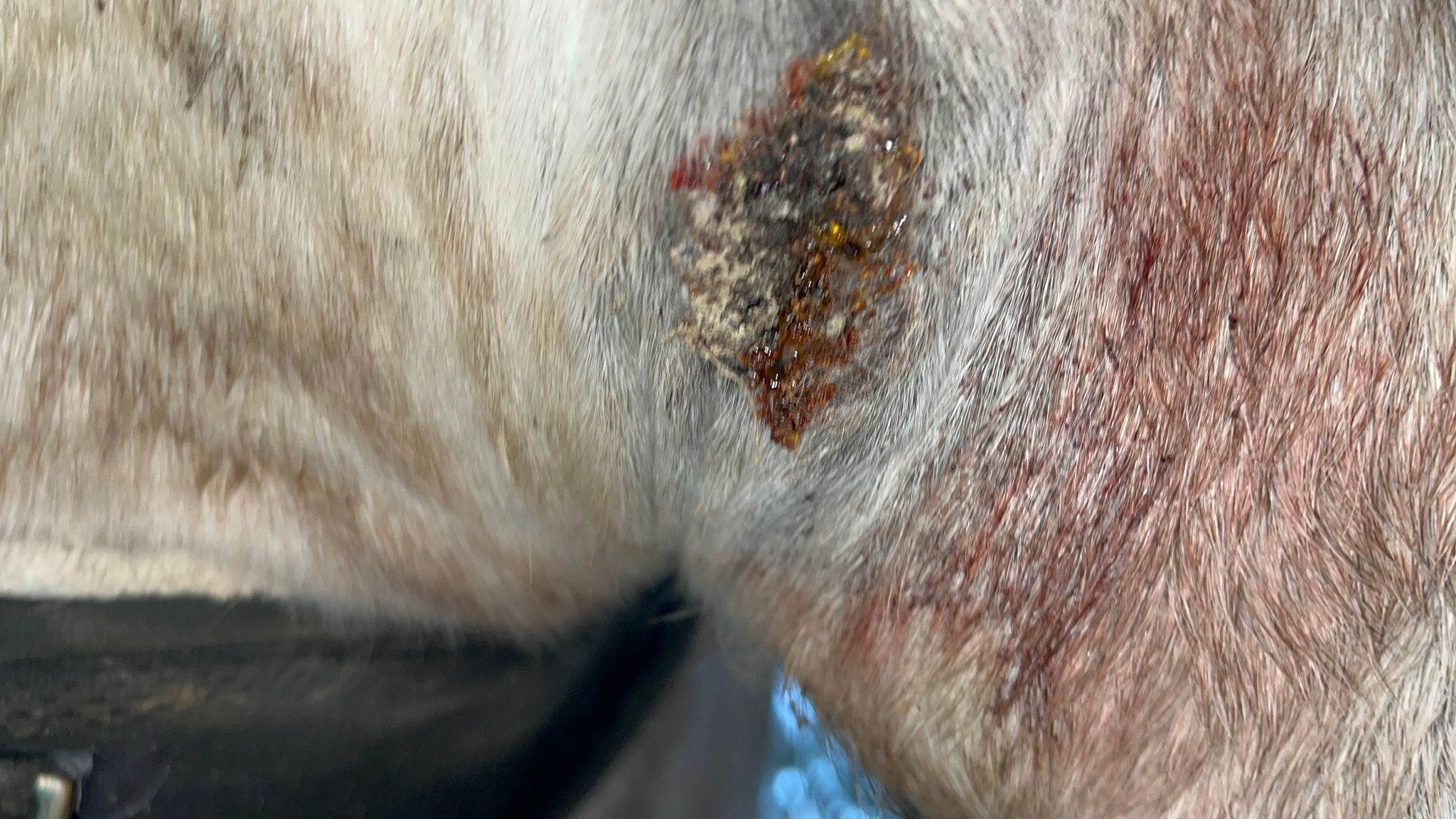 Beuge hat wieder geeitert & geblutet so dass ich eine Runde (3 Tage) Xxterra geschmiert habe. Vielleicht sollte man vllt hier schon etwas verdünnen…? es hat stark reagiert mit einer Kruste & Eiter. Seit heute ist die Kruste jetzt fast wieder weg. Stelle Bilder ein von Kruste zeitkichaufsteigend bis jetzt (offen weitgehendst).
