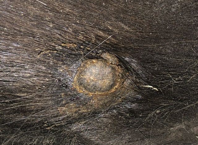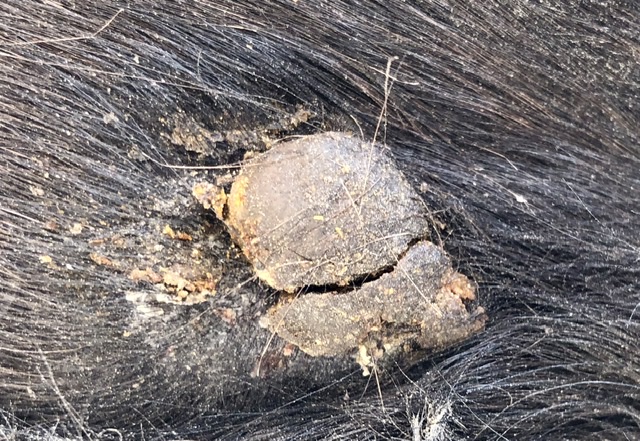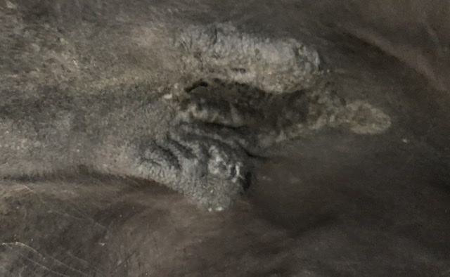 Heute habe dann mal die Hautfalte in die Finger genommen um es mir genauer anzuschauen. Dabei konnte ich etwas in den Spalt schauen und darunter war es richtig eitrig. Da scheint sich ja wohl doch einiges drunter zu tun.