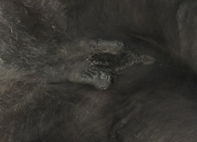 Allerdings hBe ich bei genauerem Abtasten bzw. Fotografieren noch zwei verdächtige Stellen gefunden, die wirklich blöd liegen. Zum einen innen an den Zitzen und zum anderen innen an der Hautfalte zwischen Bauch und Innenschenkel.