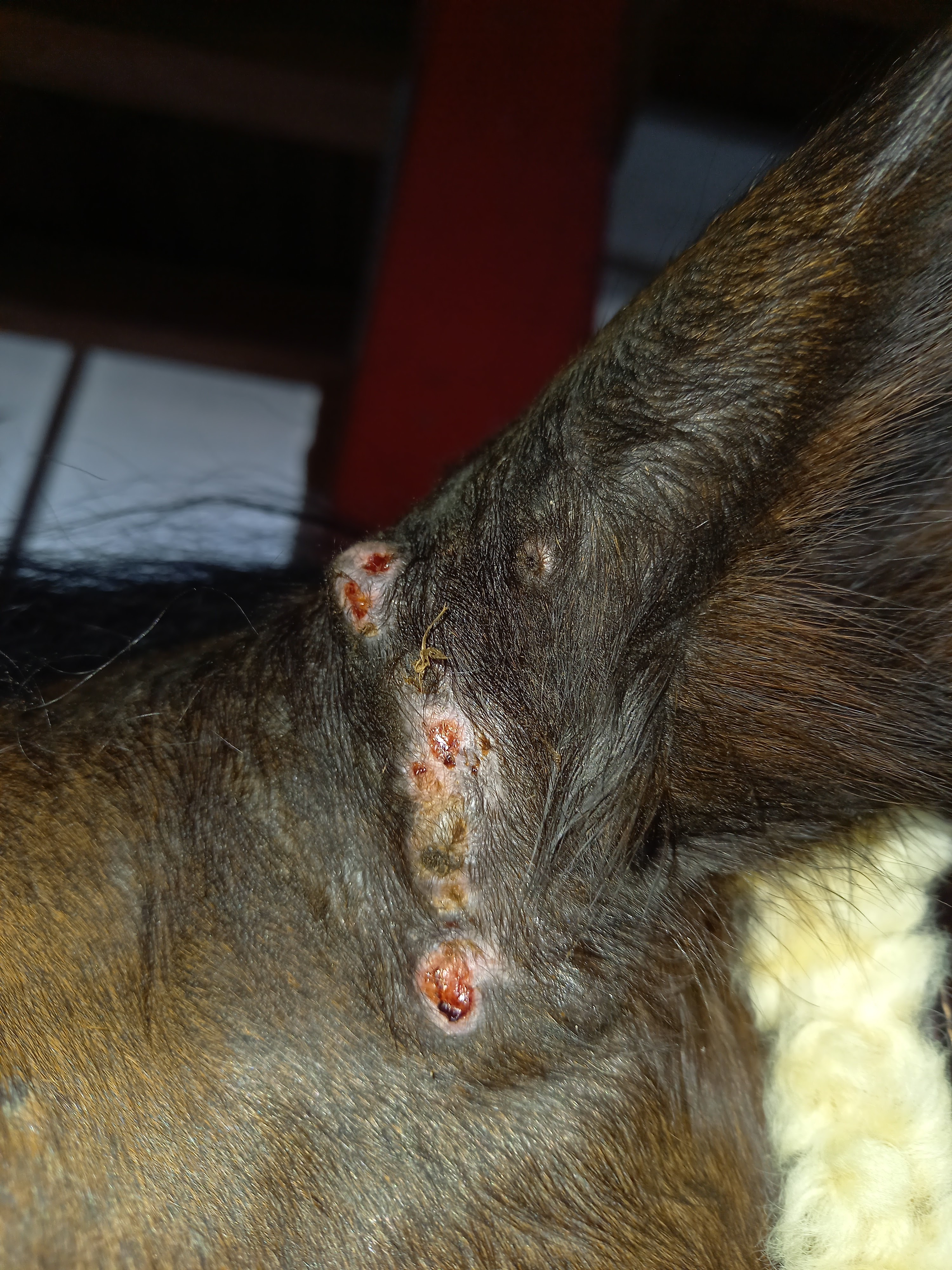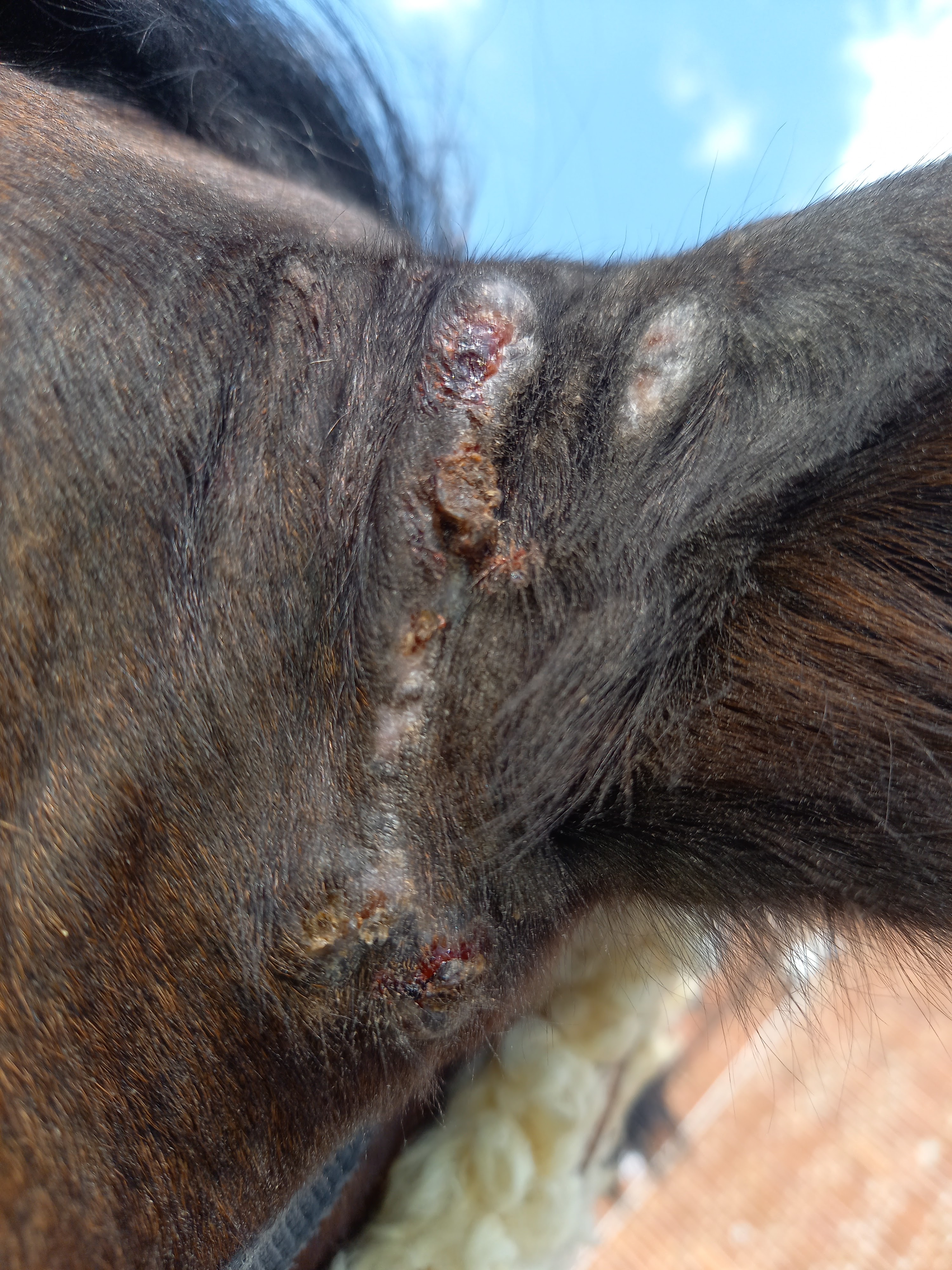 Heute ist ein Teil der Krusten abgefallen. Würdet ihr hier weiter schmieren? Das untere und obere ES denke ich auf jeden Fall, aber die in der Mitte?