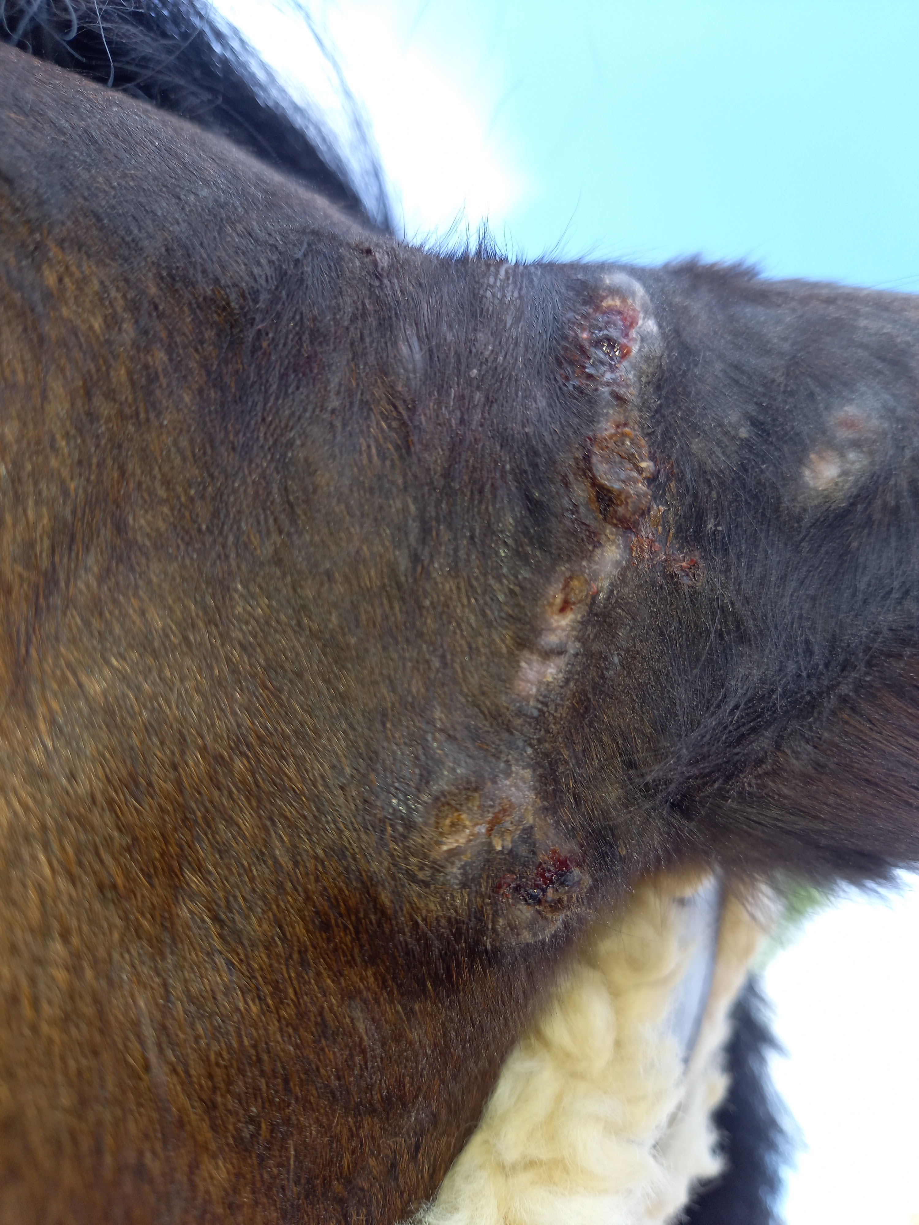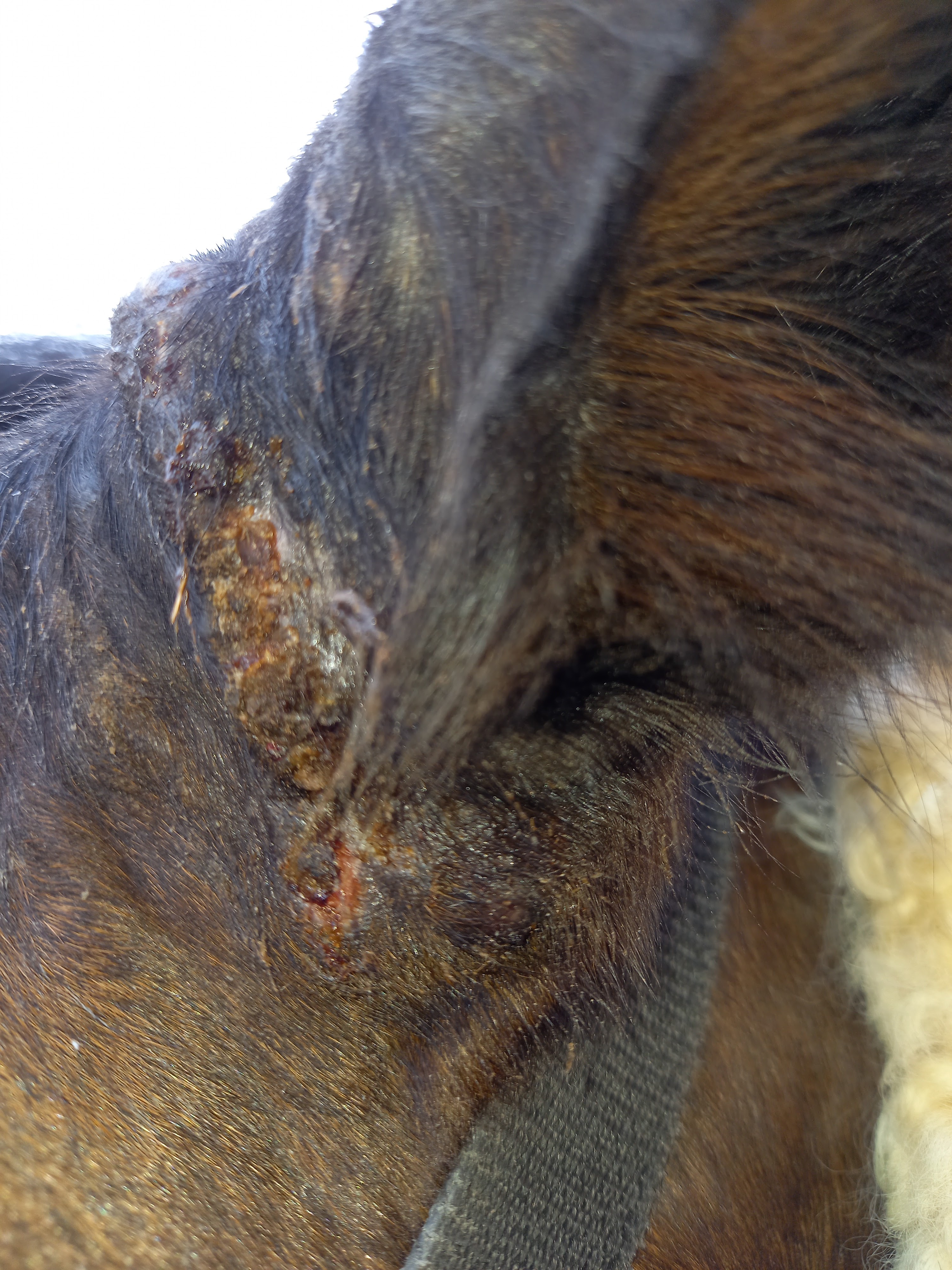 Jetzt ist die Kruste wieder drauf. Ab morgen machen wir wieder eine Schmierpause. Bislang kann ich ihn ohne Probleme eincremen und einen Juckanfall hatte er auch nicht mehr