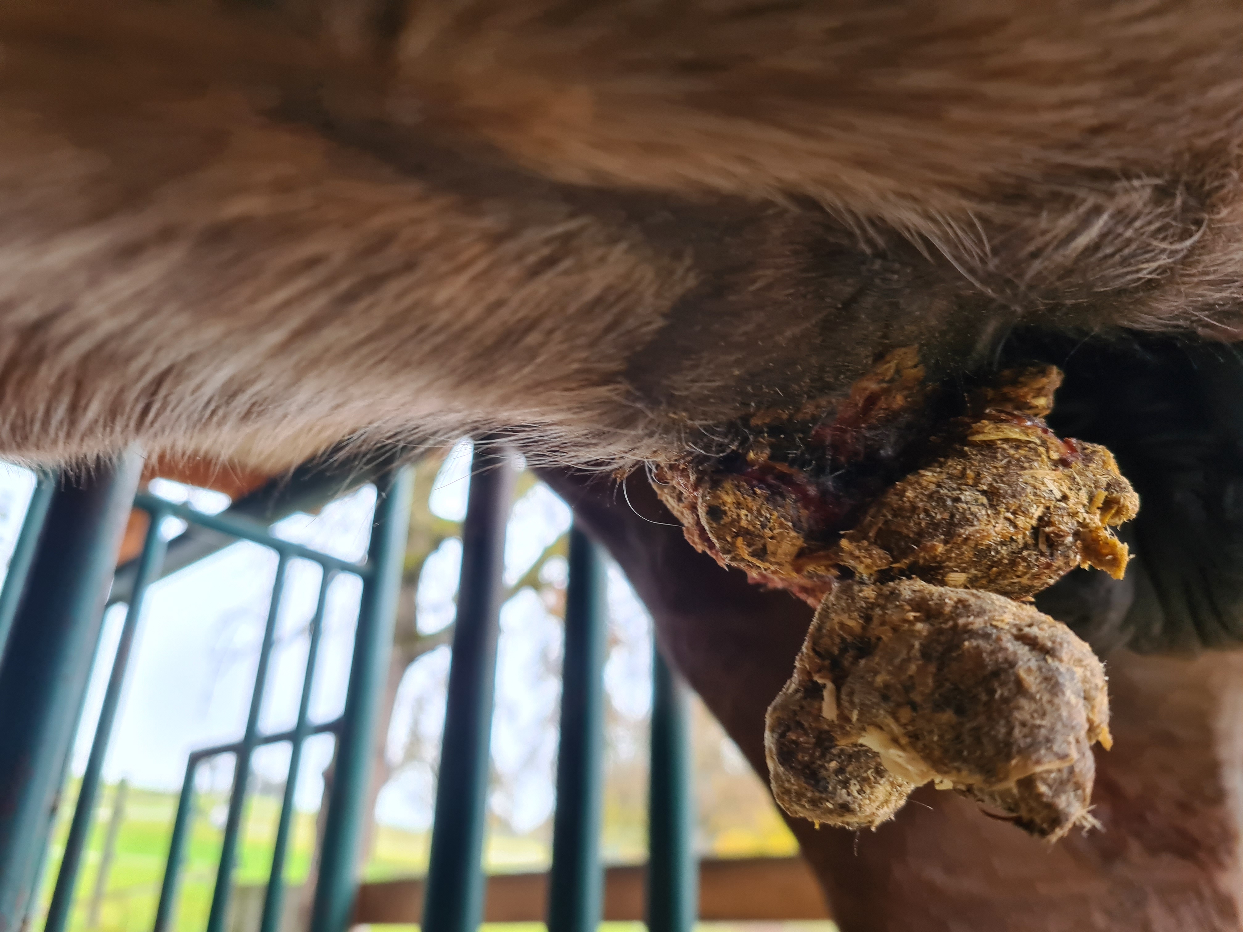 An dem kleinen hat sich bis jetzt eher nicht viel getan ist tendenziell eher etwas größer geworden. Aber den knacke ich auch noch... ich habe noch ein Bild angefügt. Nicht erschrecken an dem kleinen ist es ein Stück Kruste die sich gelöst hatte. Ich weiss man erkennt keine große Veränderung von aber sehr zufrieden da ich so schön am Ansatz rein komme. Ich schmiere übrigens wieder mit 1:1 und füttere parallel noch die Kräuter Sarkodex.