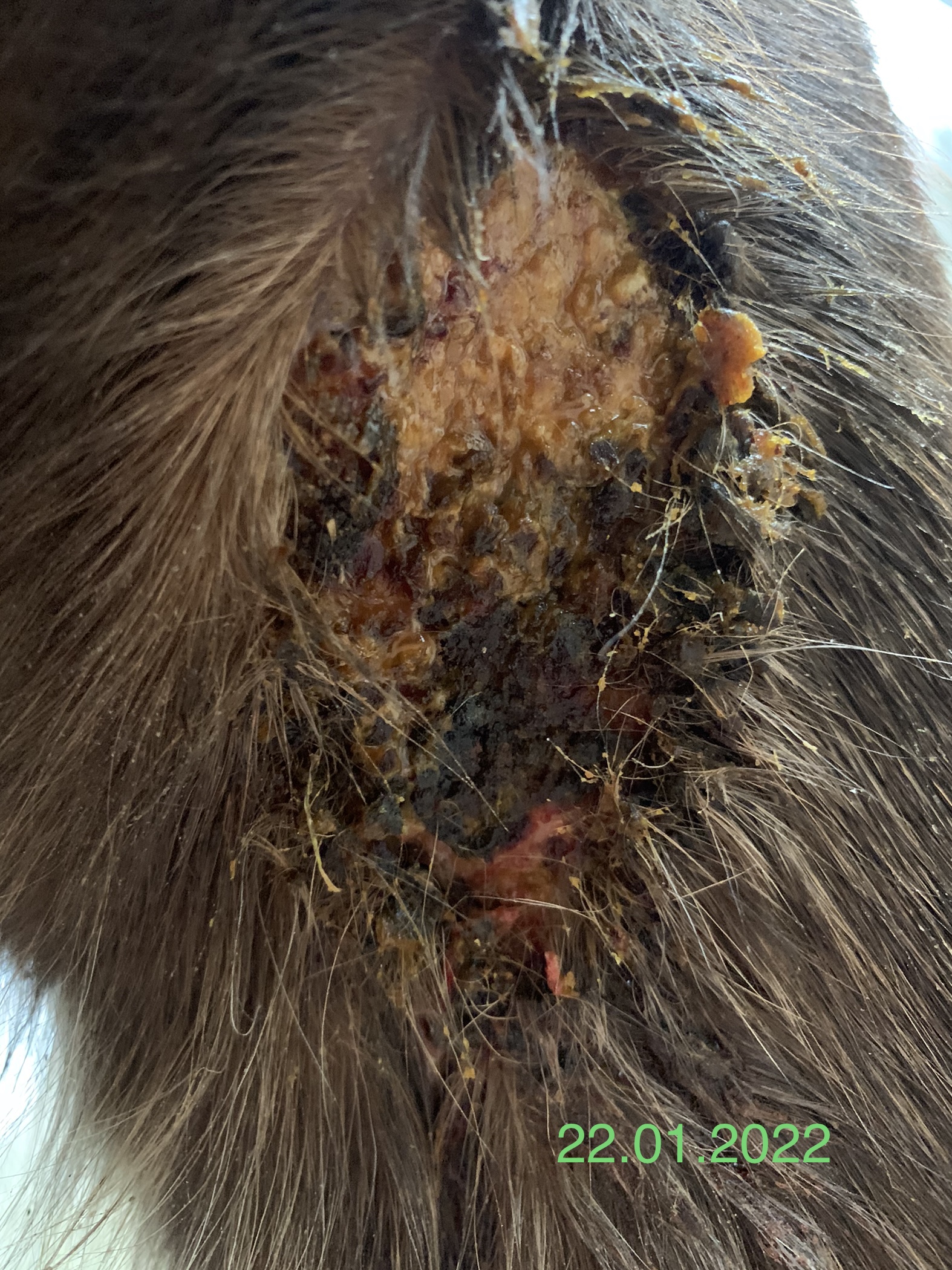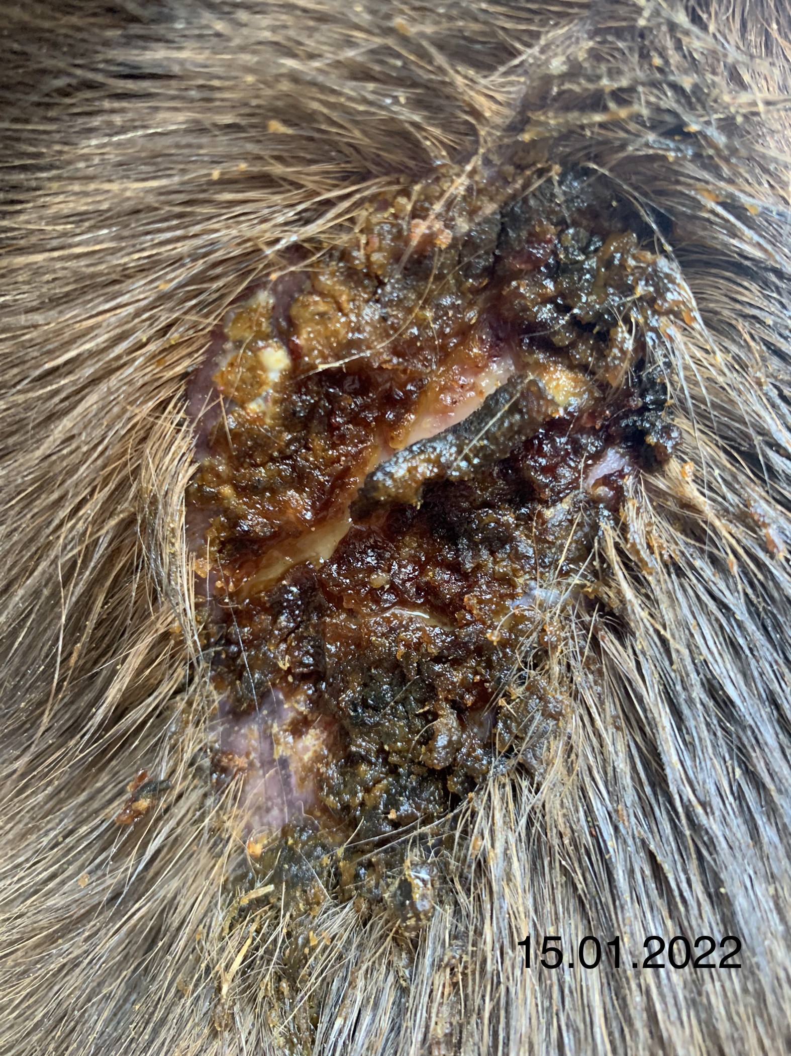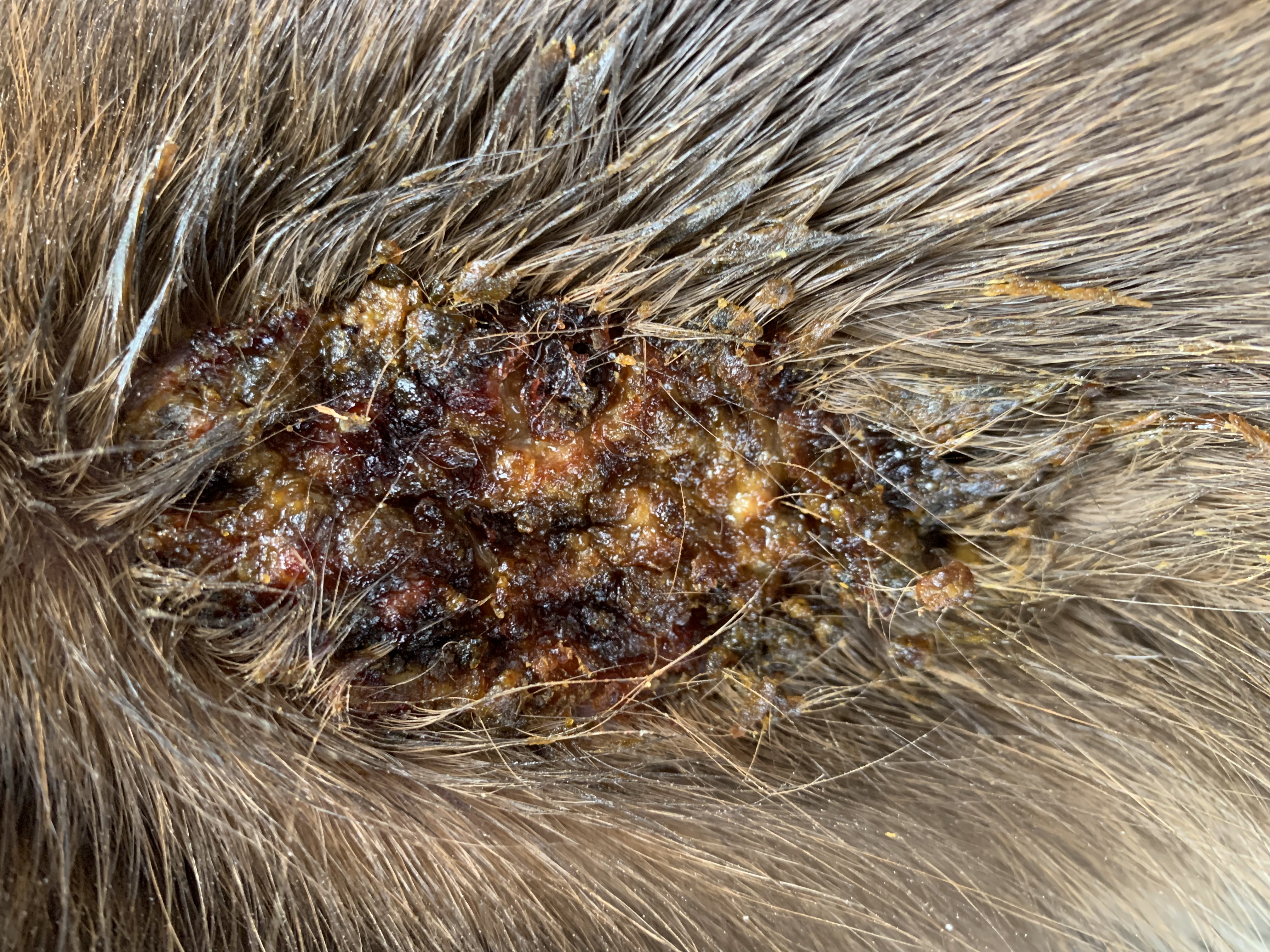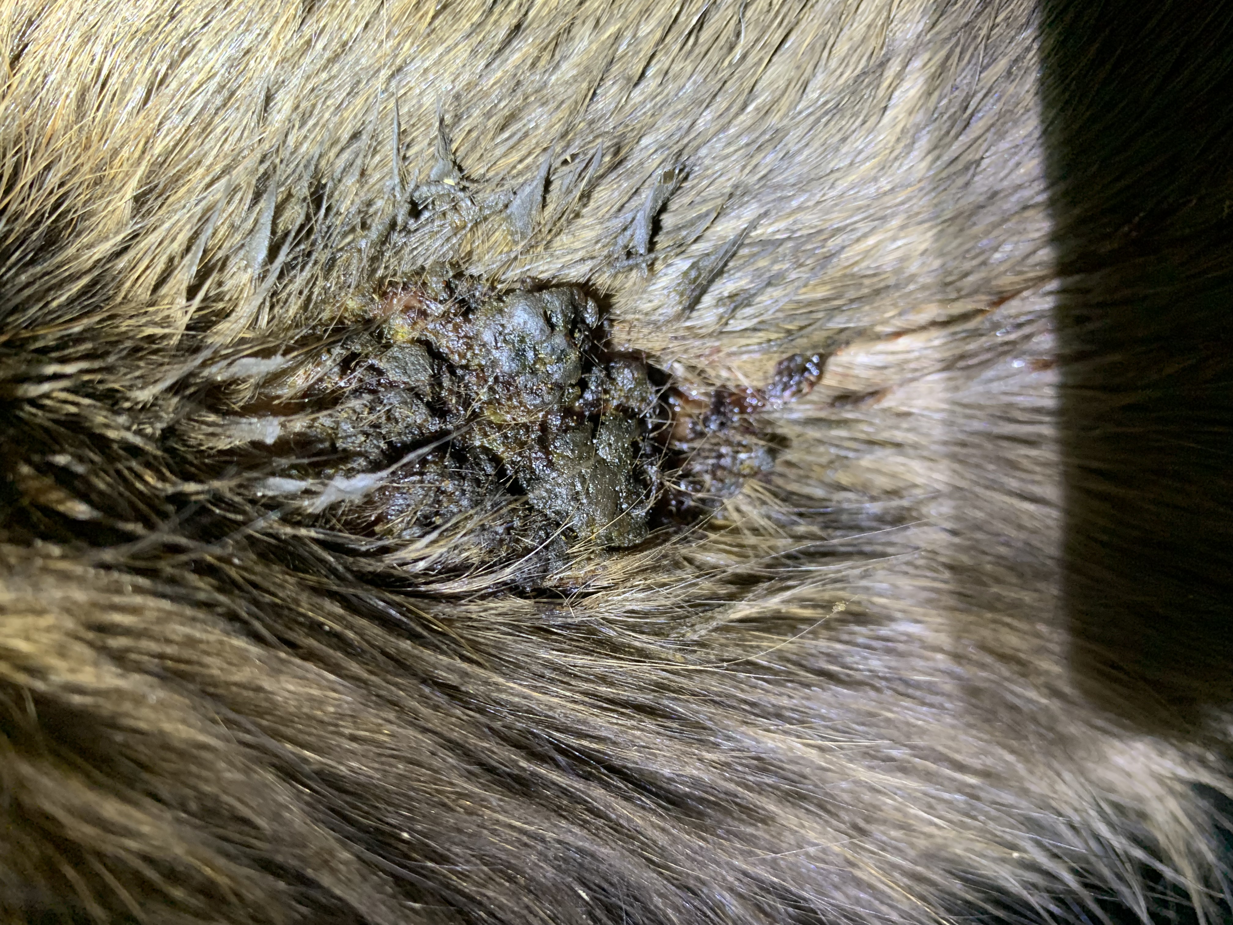 Würdet ihr das Areal rasieren oder macht es nichts, wenn das Fell so verklebt?