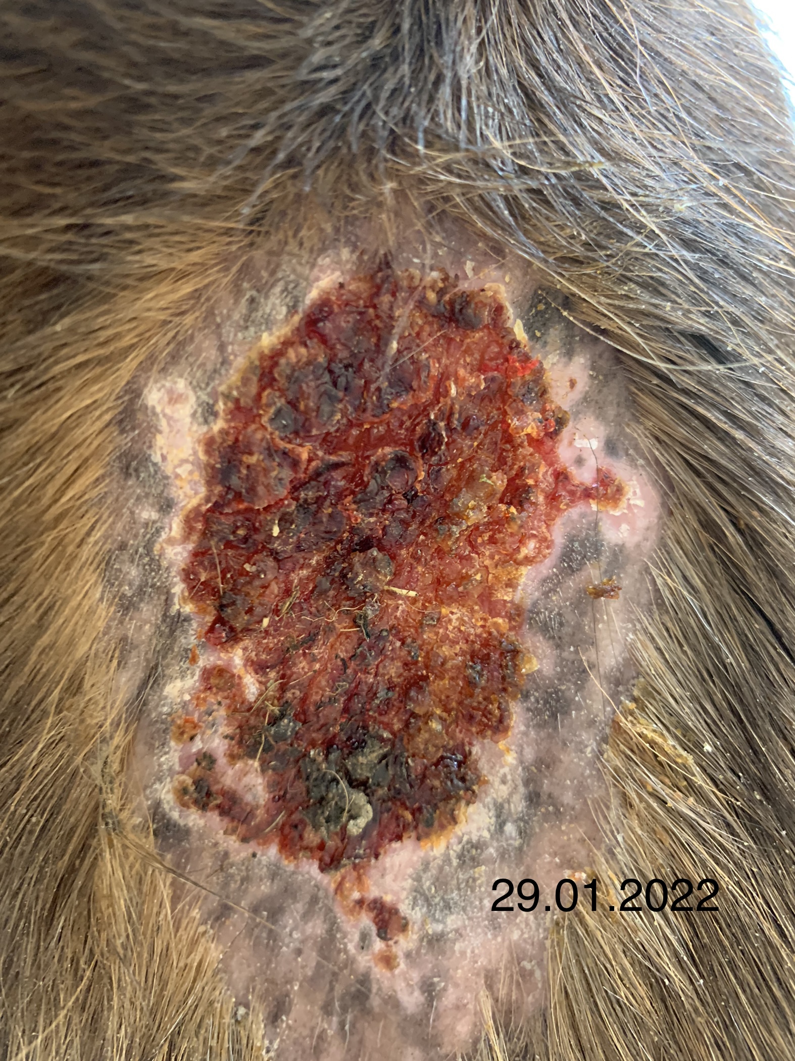 Ob die Haare nun Winterfell sind, das sich ohnehin auf dem Sarkoid gebildet hätte, weiß ich natürlich nicht. Ich dachte, die Dinger wären immer „nackt“. Rau ist die Stelle aber nach wie vor.