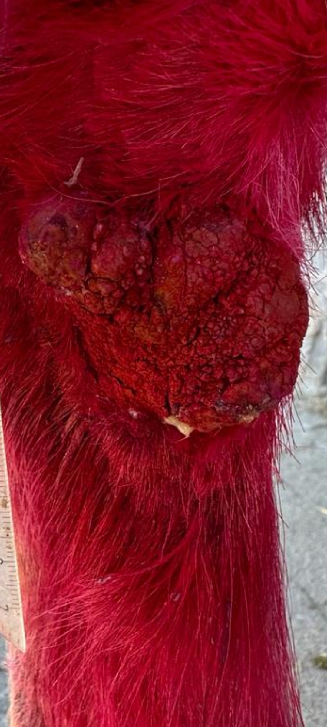 Leider wächst das Sarkoid weiter und ich komme jetzt weg von den harmlosen nicht hilfreichen Sachen und stehe vor der Wahl das Compxx zu wählen oder die Creme von Knottenbelt. Die Tierklinik in der Schweiz würde mir diese besorgen.