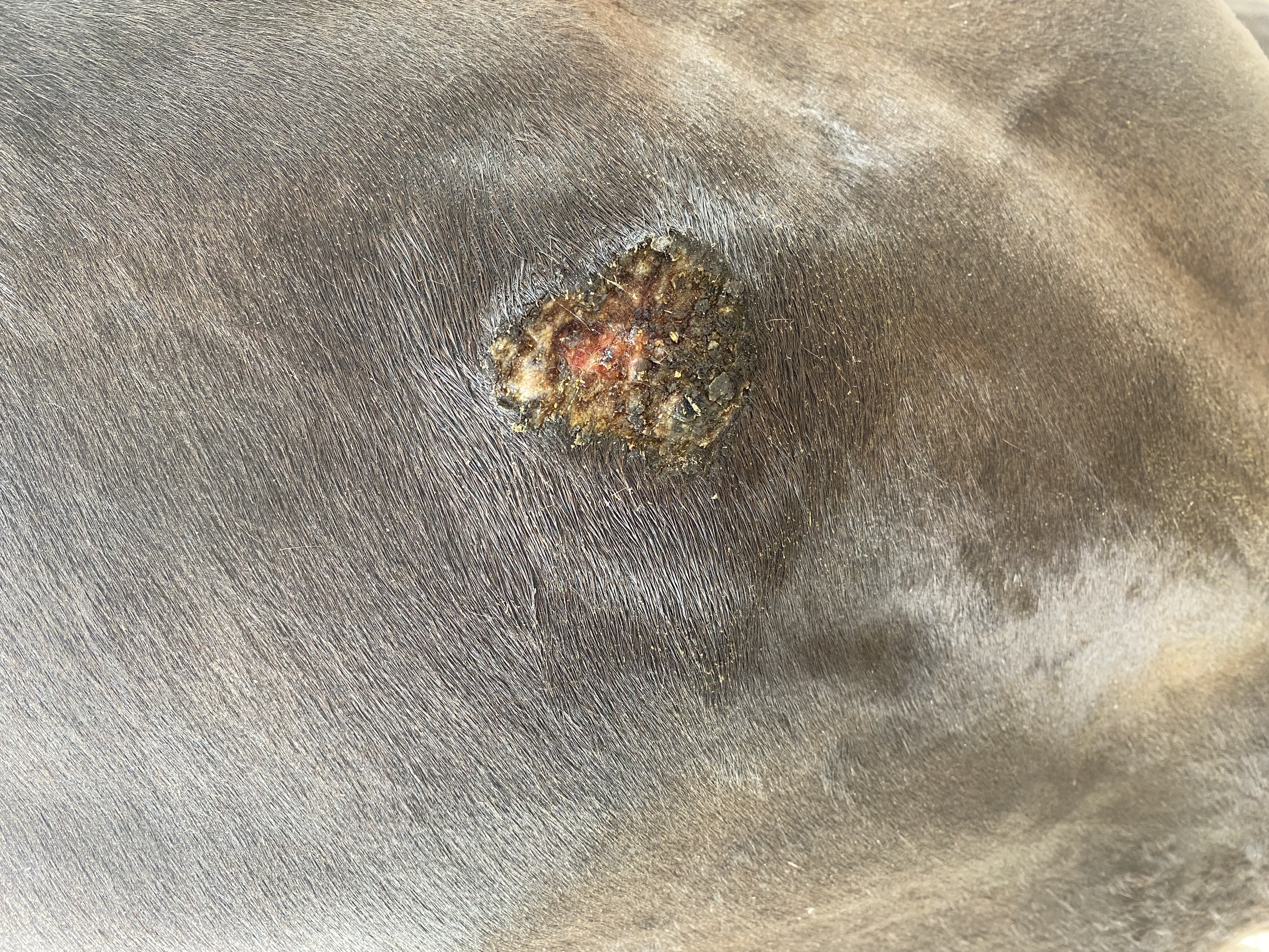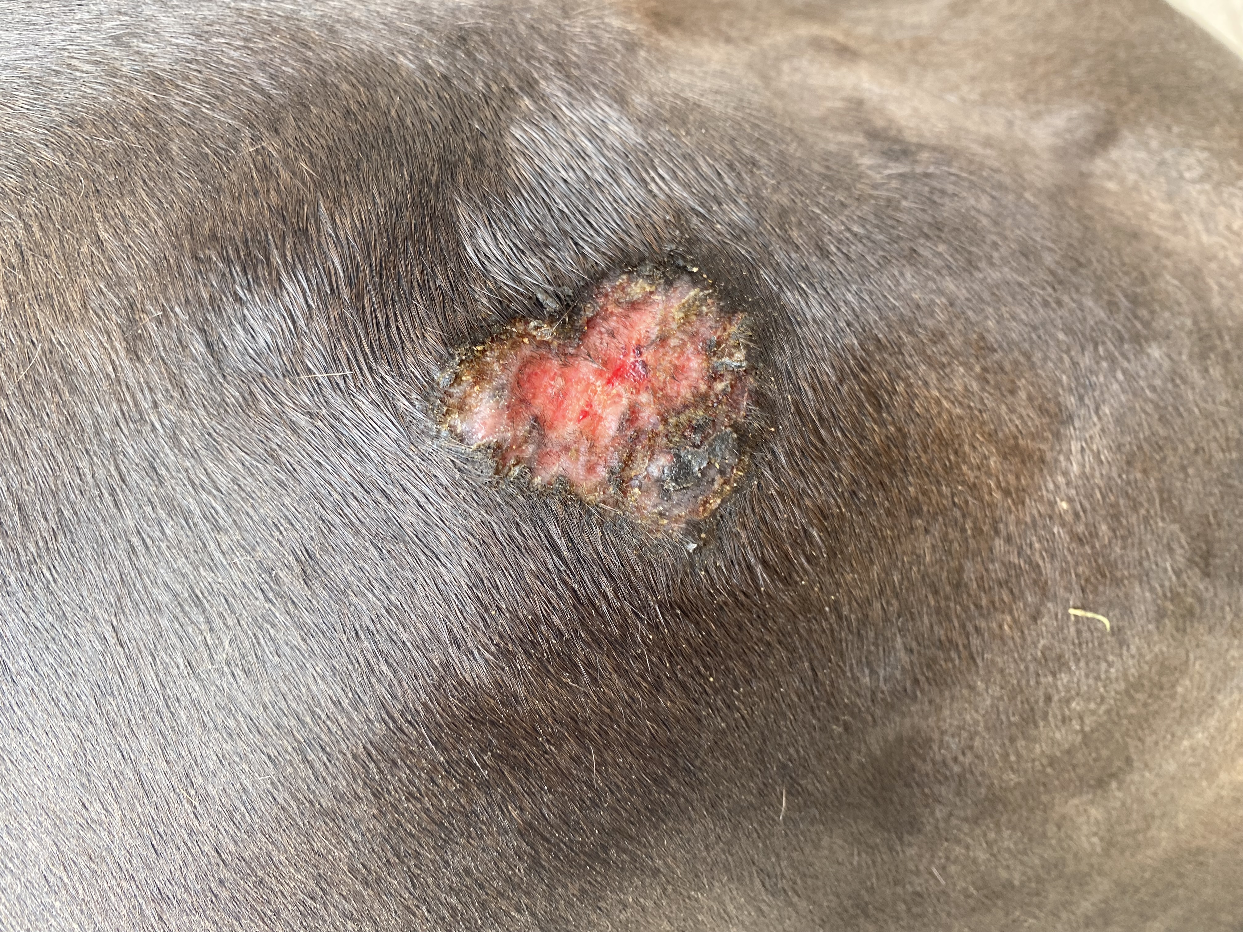 Die Stelle um das Sarkoid ist etwas warm- das ist mir gestern aufgefallen… Außerdem setzen sich die Fliegen auf den offenen Stellen ab… Ich hab in anderen Beiträgen gelesen, dass das nicht so schlimm sein soll?