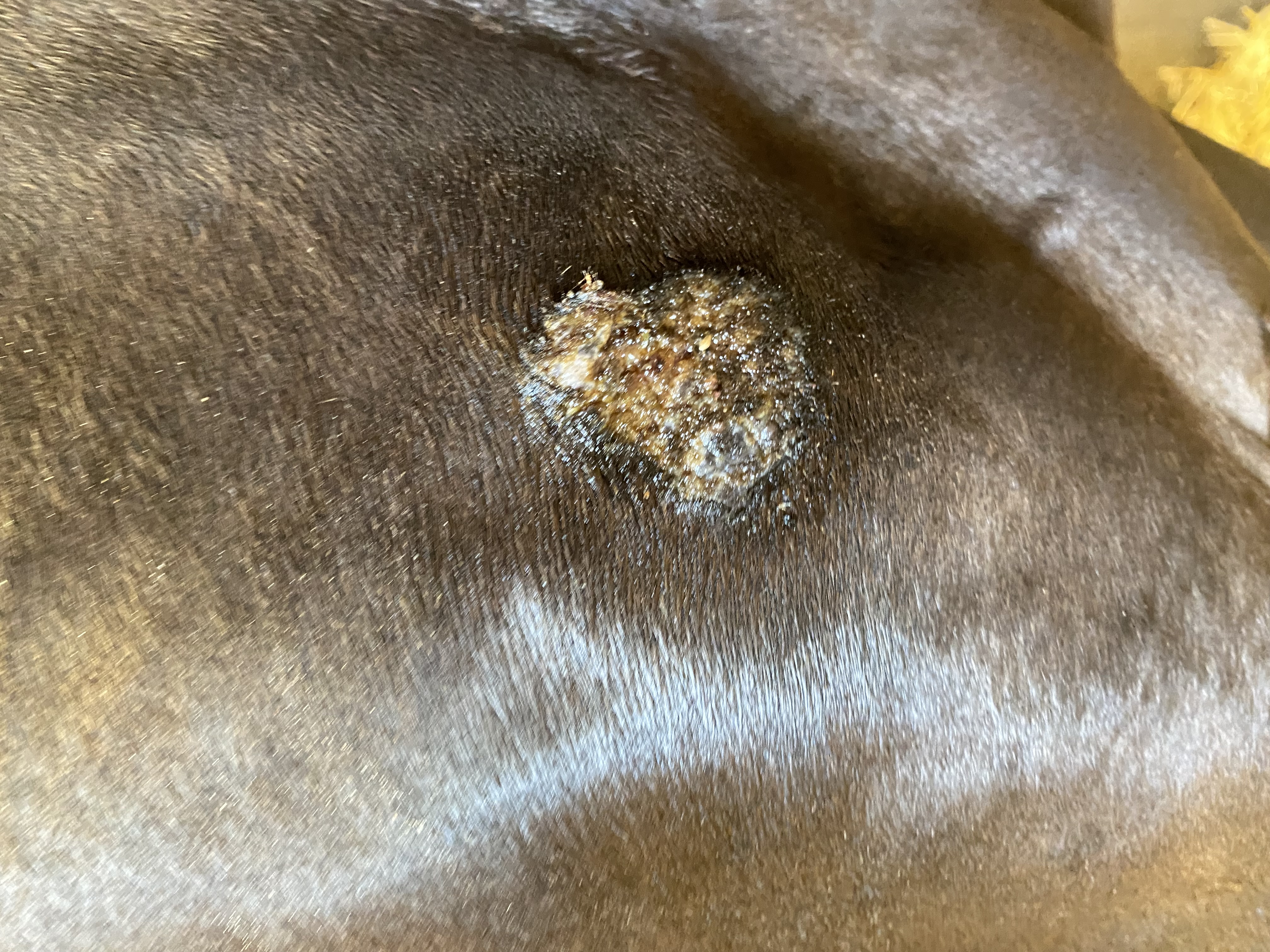 Wallach, 11 Jahre mit Sarkoid an der Brust