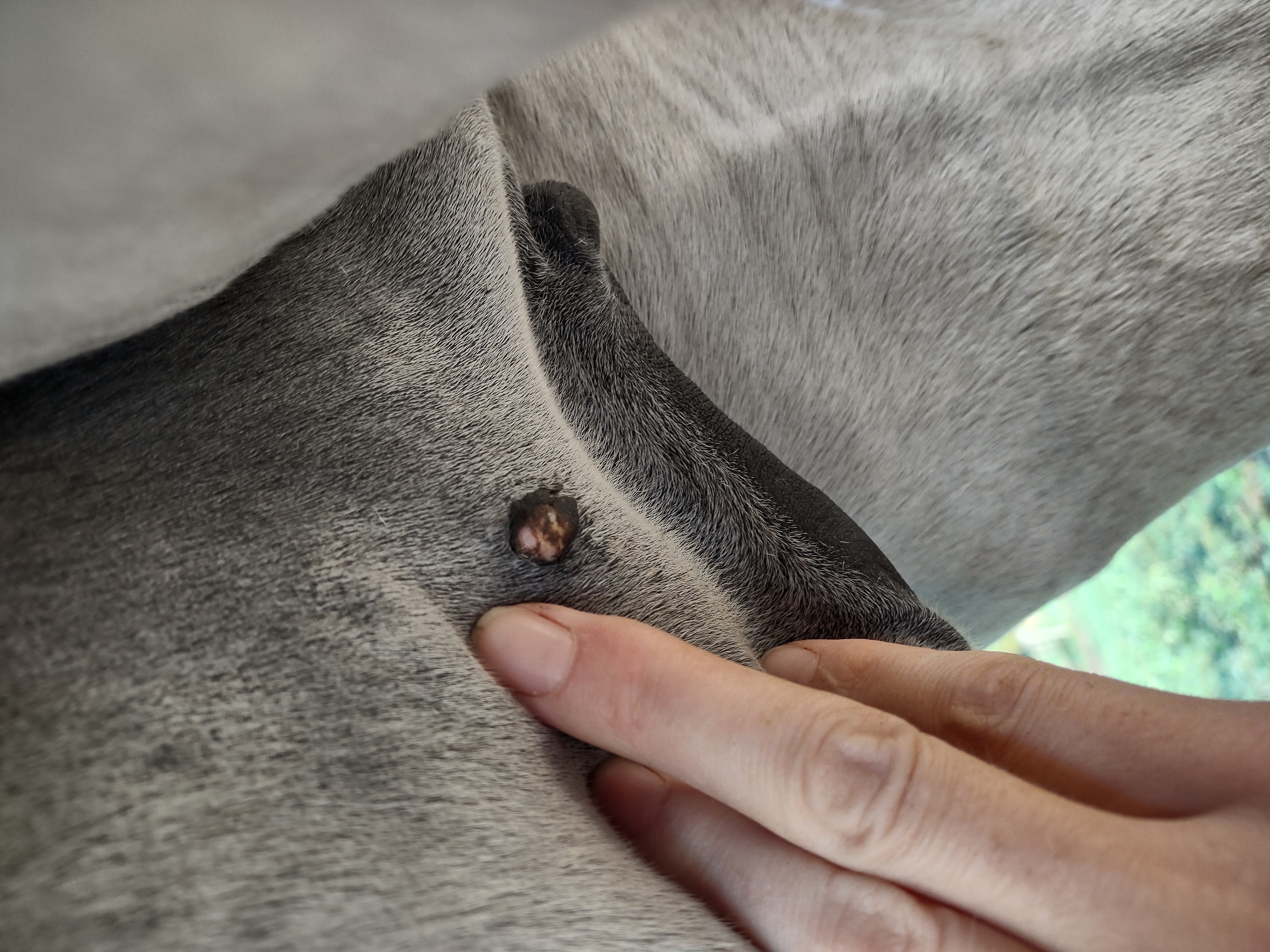Heute sehr spannende Entwicklung. Generell fühlt sich der große Knubbel eher an wie eine Sammlung kleiner Knubbel mit Haut drüber. Bisher war alles relativ fest. Heute hing es etwas nach unten und war schlabbriger. Bin gespannt, was sich da tut.
