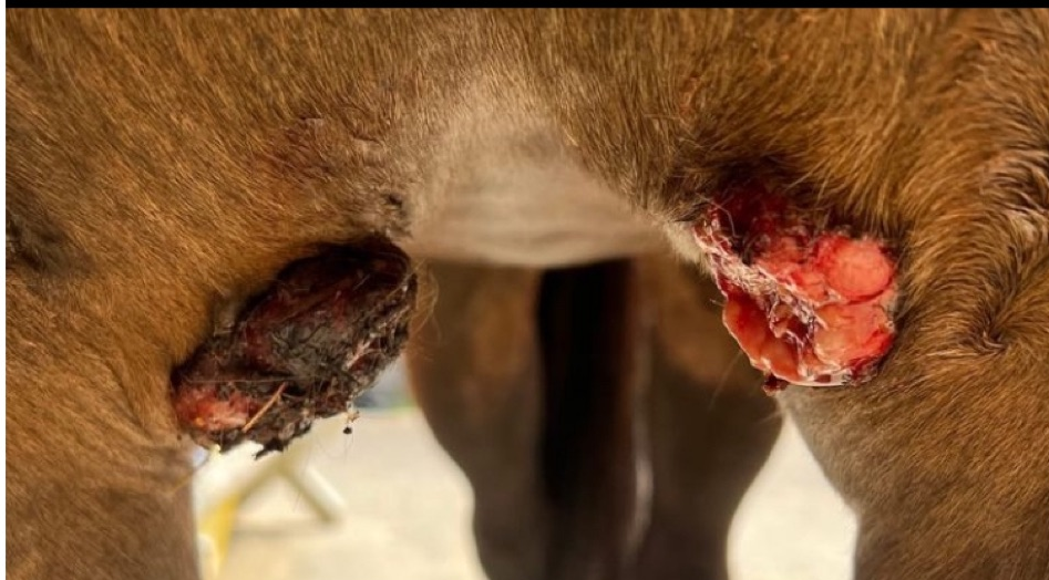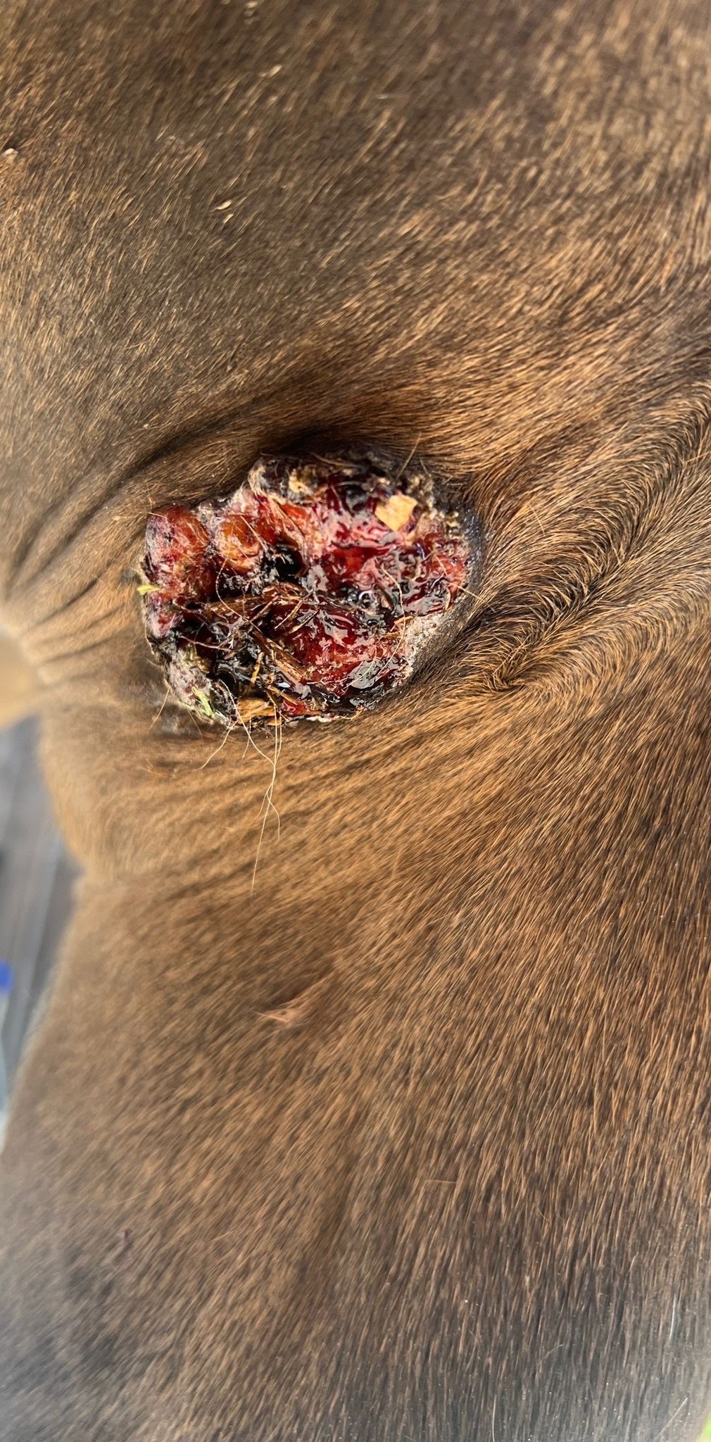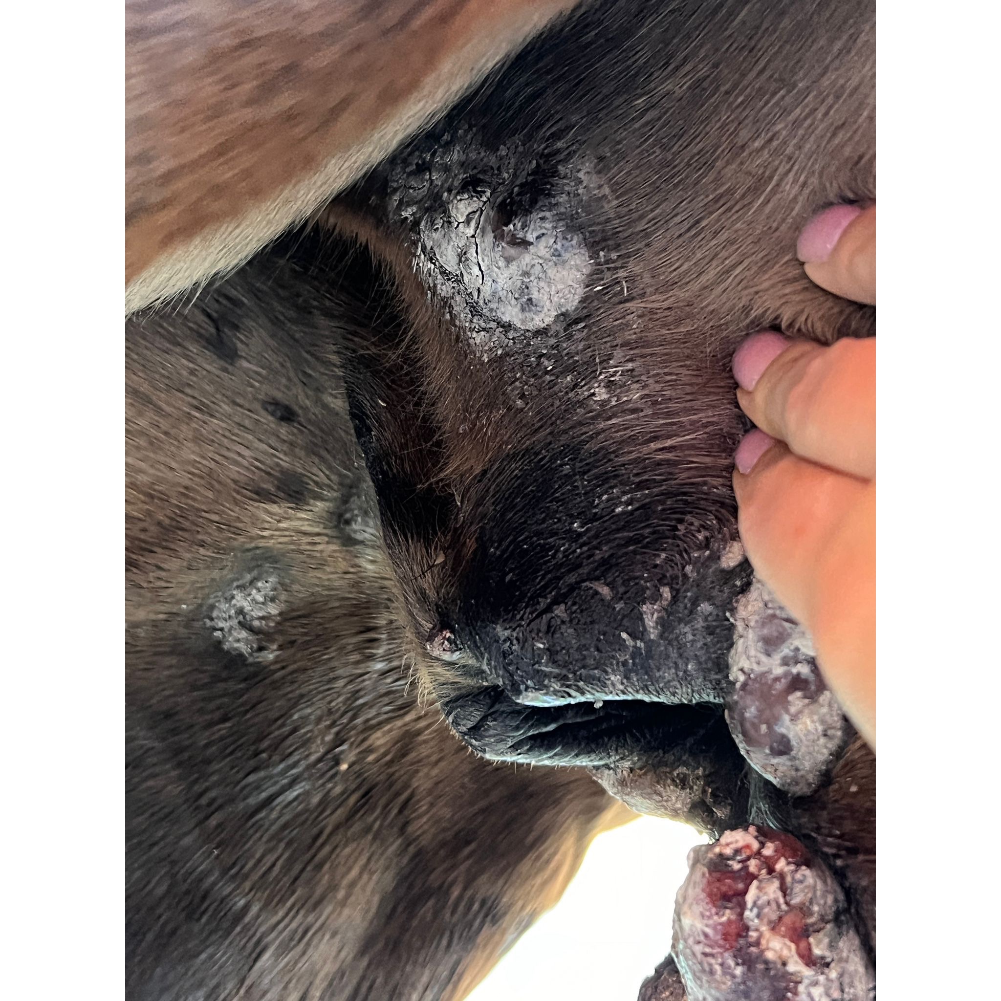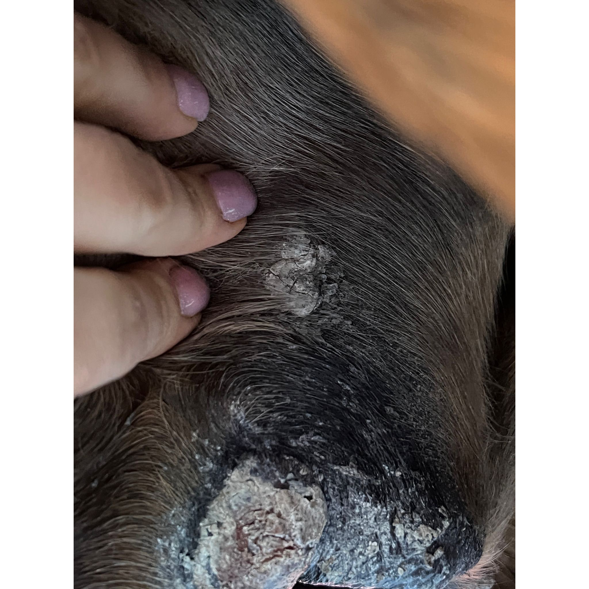 Sarkoid Nr 1 Rezidiv: teilweise blutig, da es ihn juckt und er sich dann daran kratzt/reinbeisst