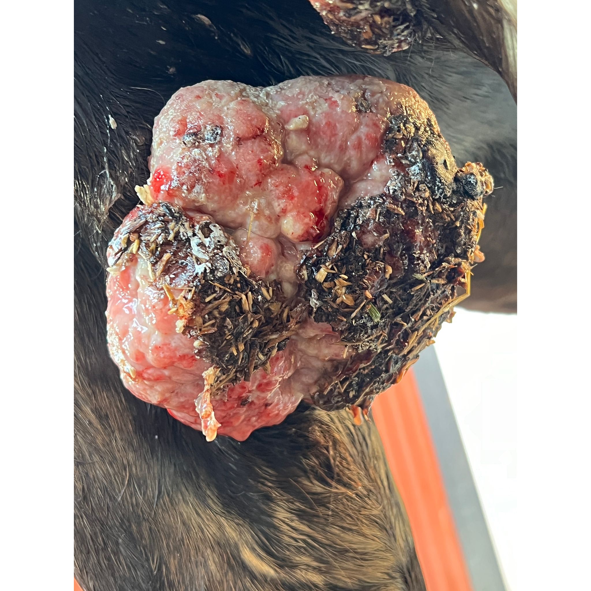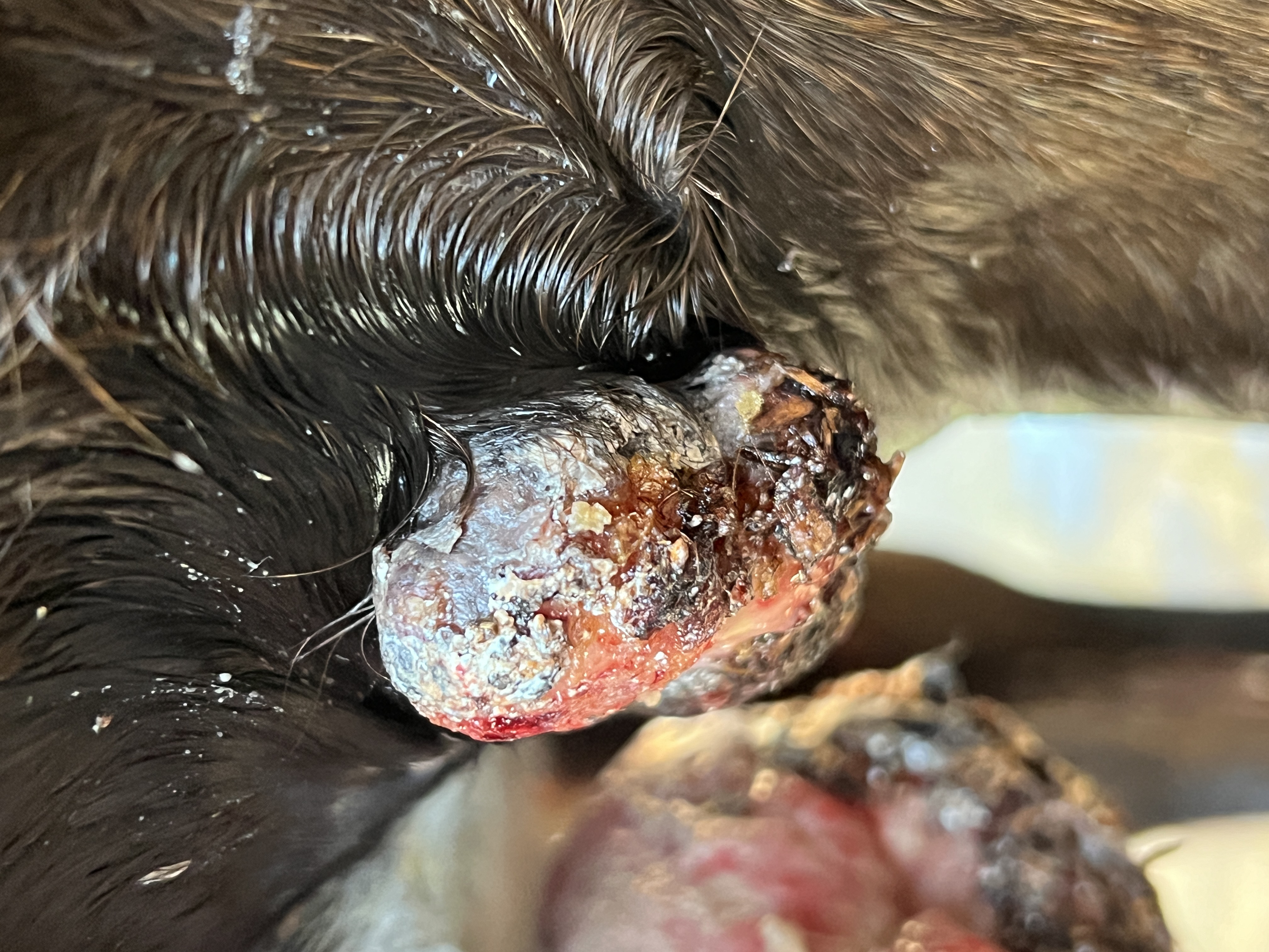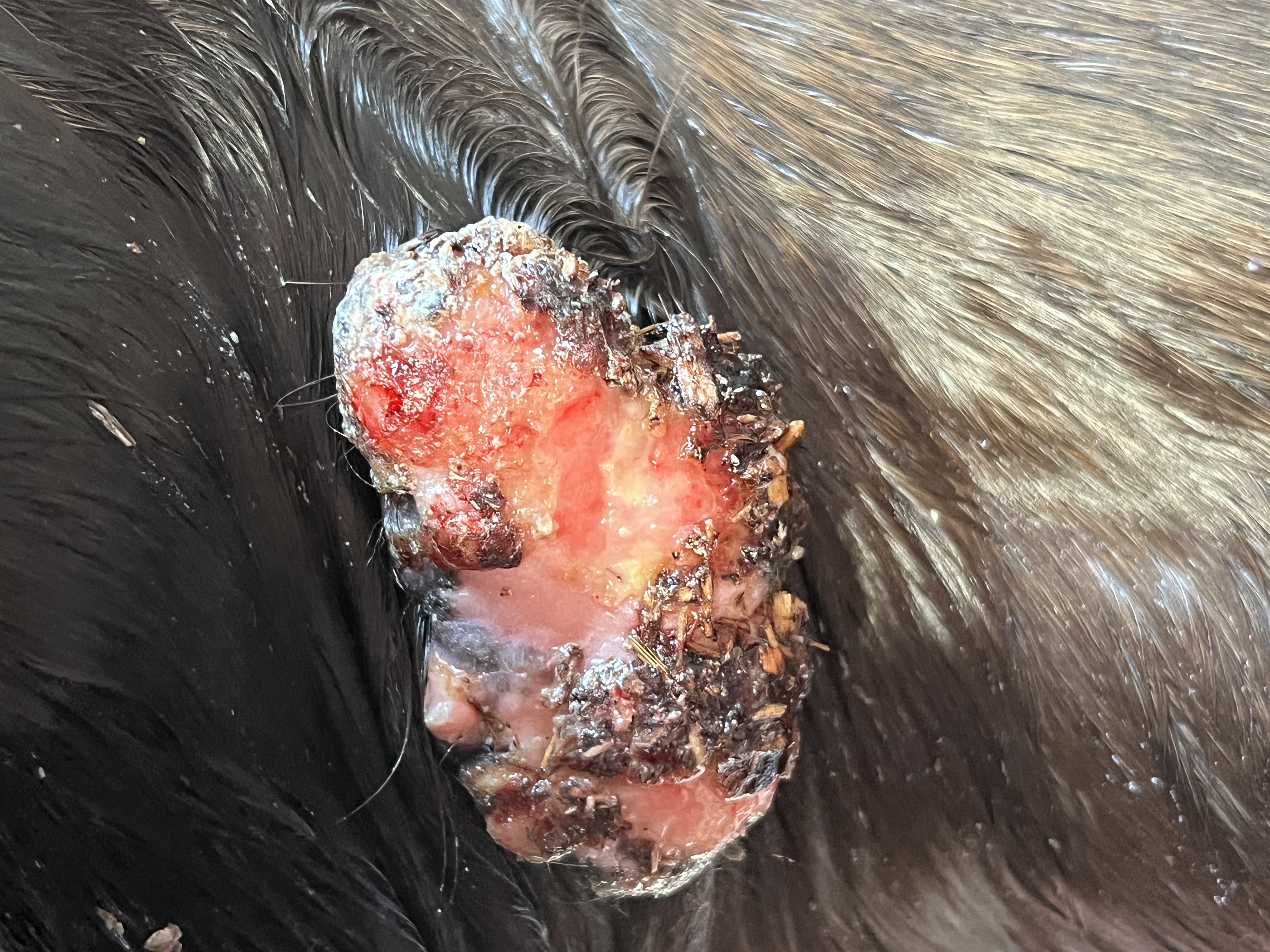 Beim grossen Sarkoid vorne rechts bilden sich immer wieder Krusten, welche abfallen (siehe Foto)