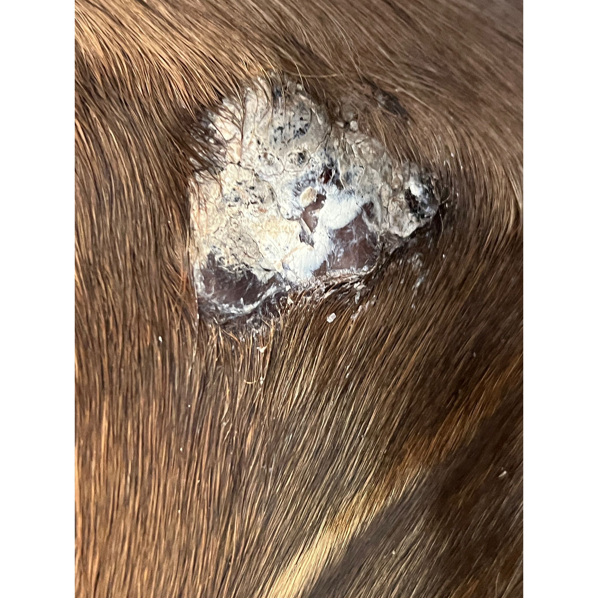 Nr 3 Rezidiv: von rechts. Kann manchmal bluten, weil beim liegen/wälzen die Krusten aufreissen.