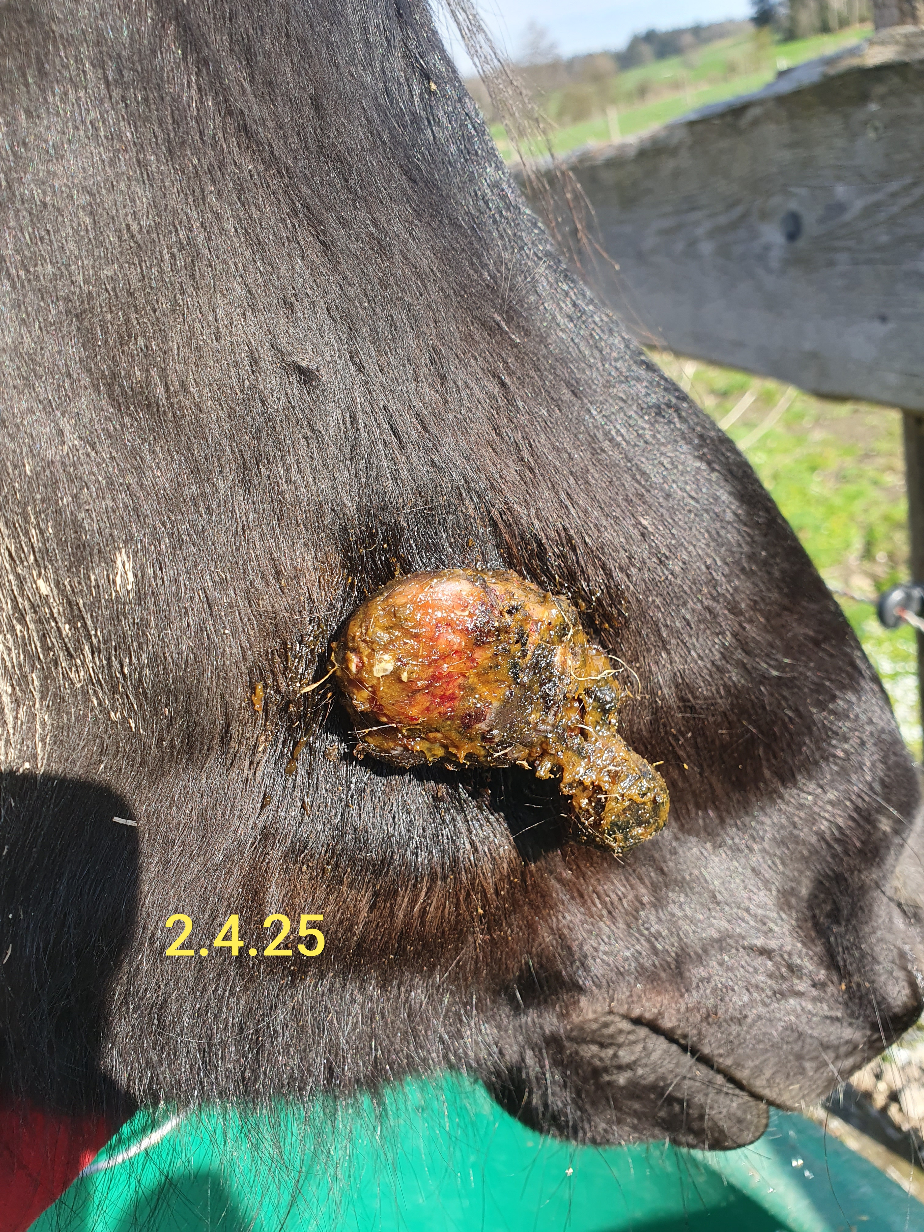 Heute morgen hing das Sarkoid nur noch am seidenen Faden (siehe Foto) und vor einer Stunde ist es abgefallen 🥳
