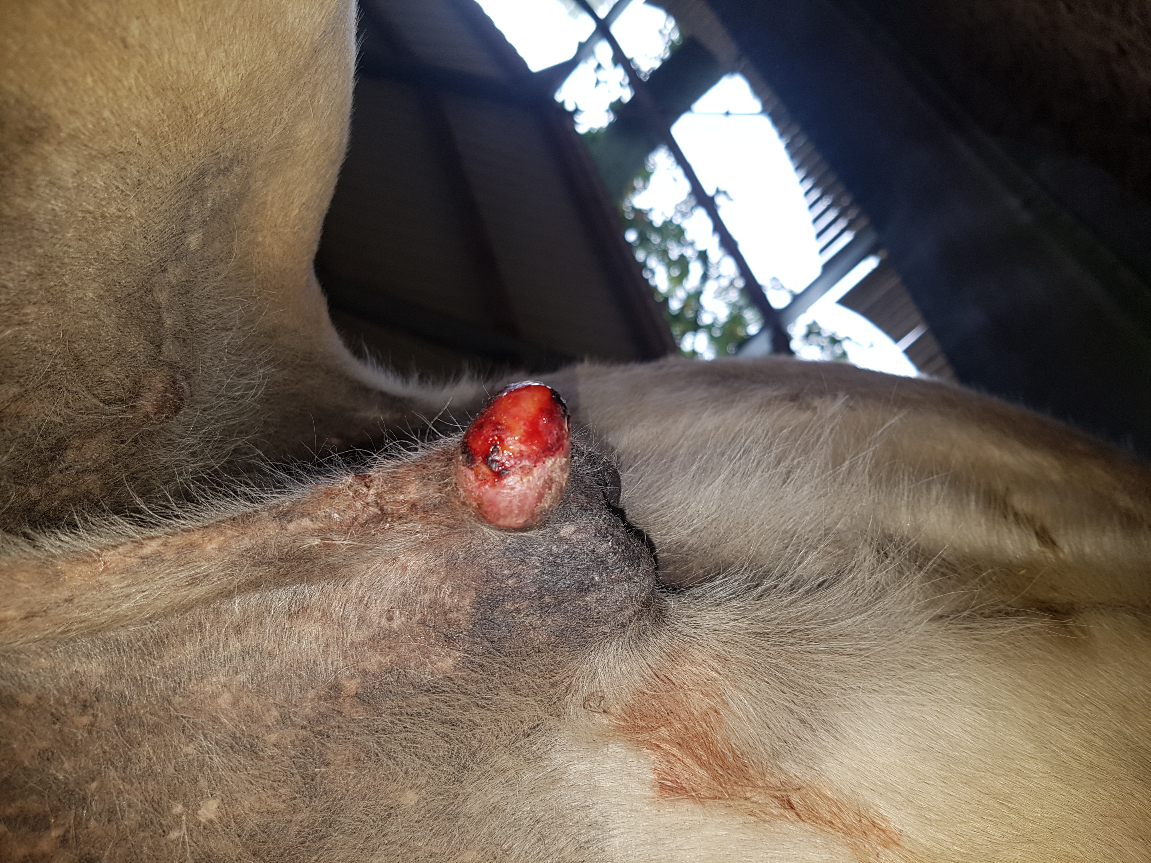 Die letzten Tage hat es so reagiert dass die Kruste sich gelöst hat und der knubbel nun vor sich hin sifft... zum Glück scheint es ihn überhaupt nicht zu stören.