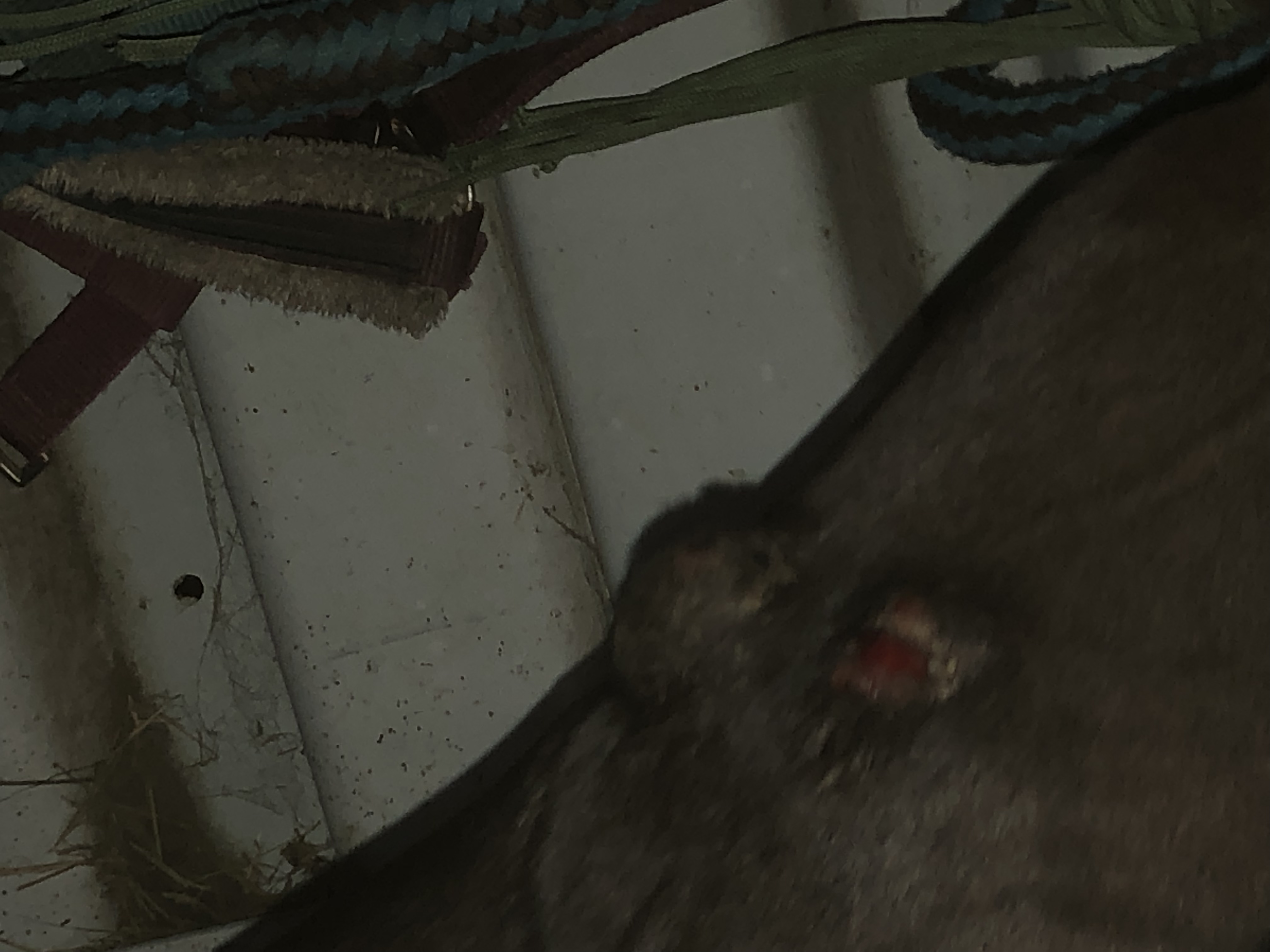Tag 5: Das offene Sarkoid hat eine dunkle Kruste, aber noch nicht 100%ig durchgehend deshalb wird geschmiert. Das Mini-Sarkoid, was abgefallen ist, ist jetzt durchgehend gekrustet und hat Pause - das ging ja wirklich fix.