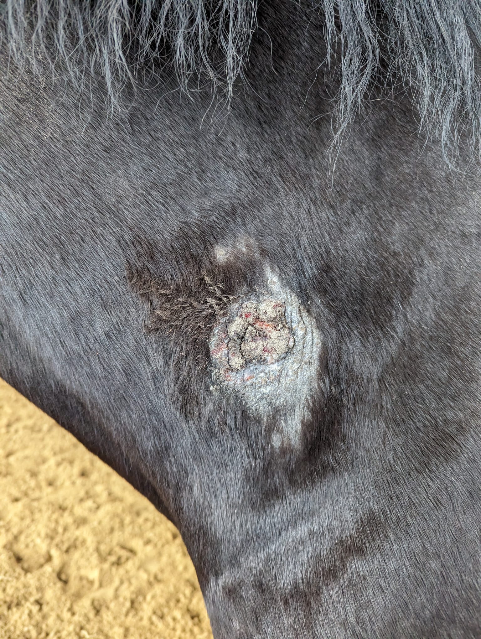 Leider ist meine Stute wieder angefangen sich die Kruste abzukratzen