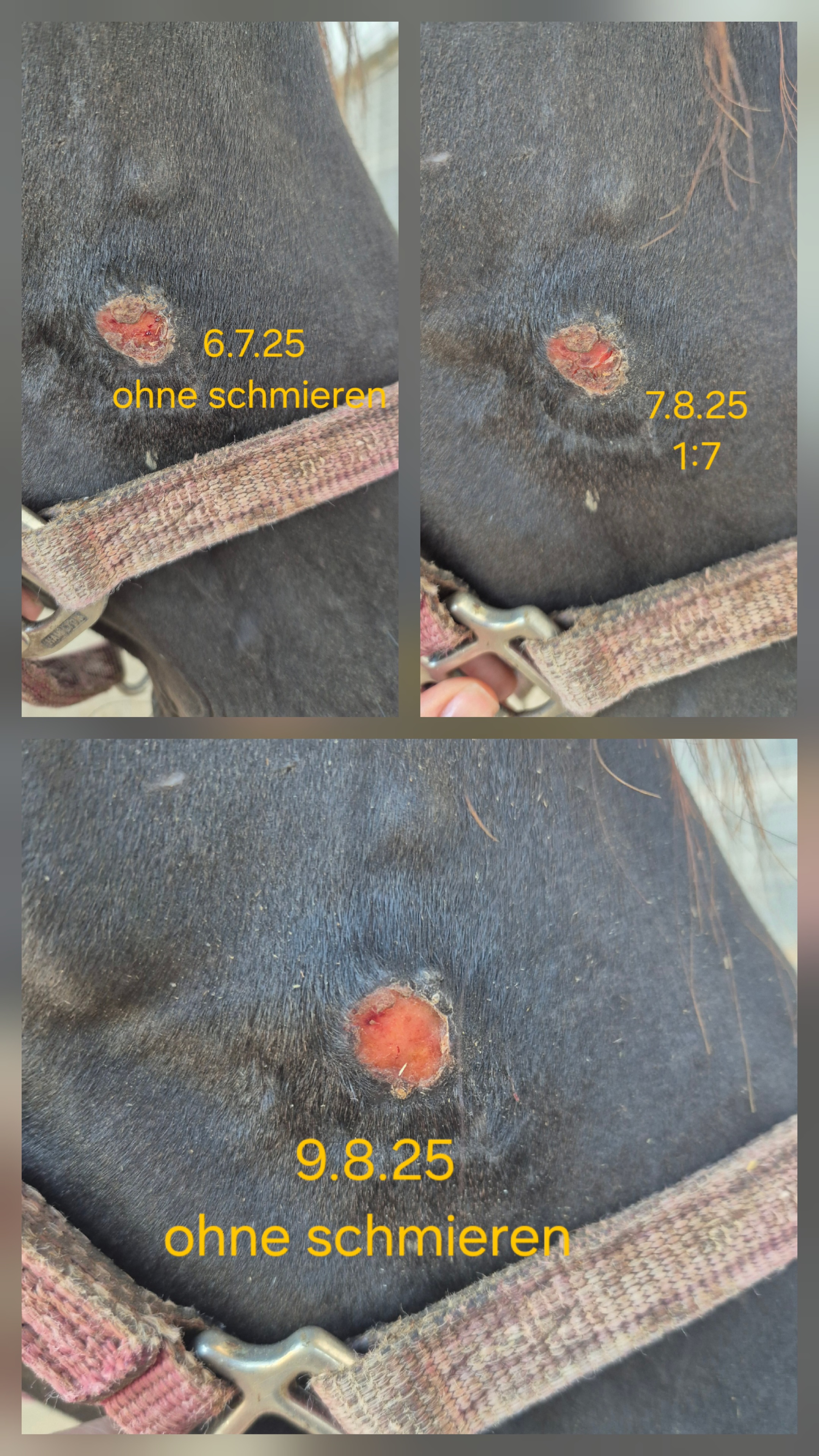 Das Sarkoid am Kopf schaut sehr gut aus. Hab jetzt mal angefangen an den schmier freien Tagen Betaisodona zu schmieren, damit es vielleicht besser heilt.