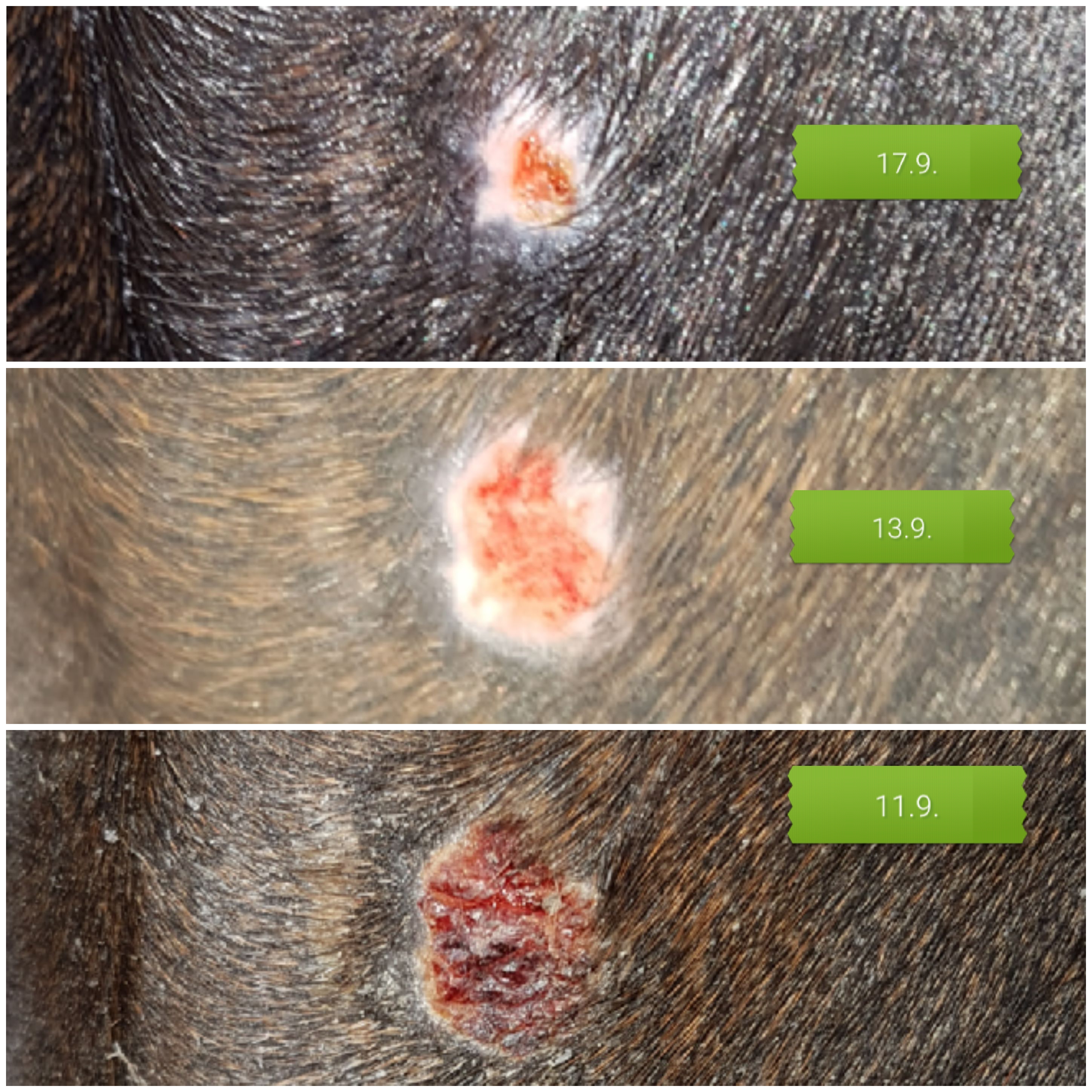 Wenn es in dem Tempo weitergeht, verabschiedet sich die rote Stelle in den nächsten Tagen, die Haut wird dunkel und Haare sprießen. Es wird sehr spannend in nächster Zeit.